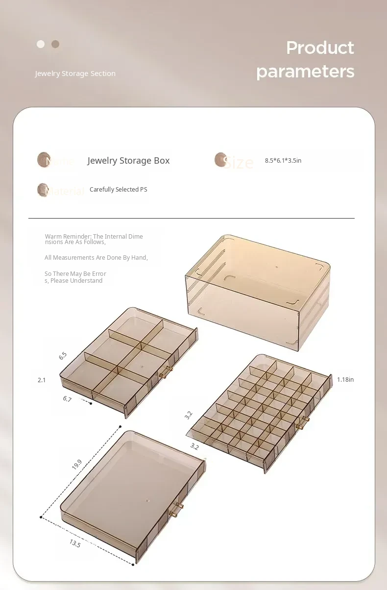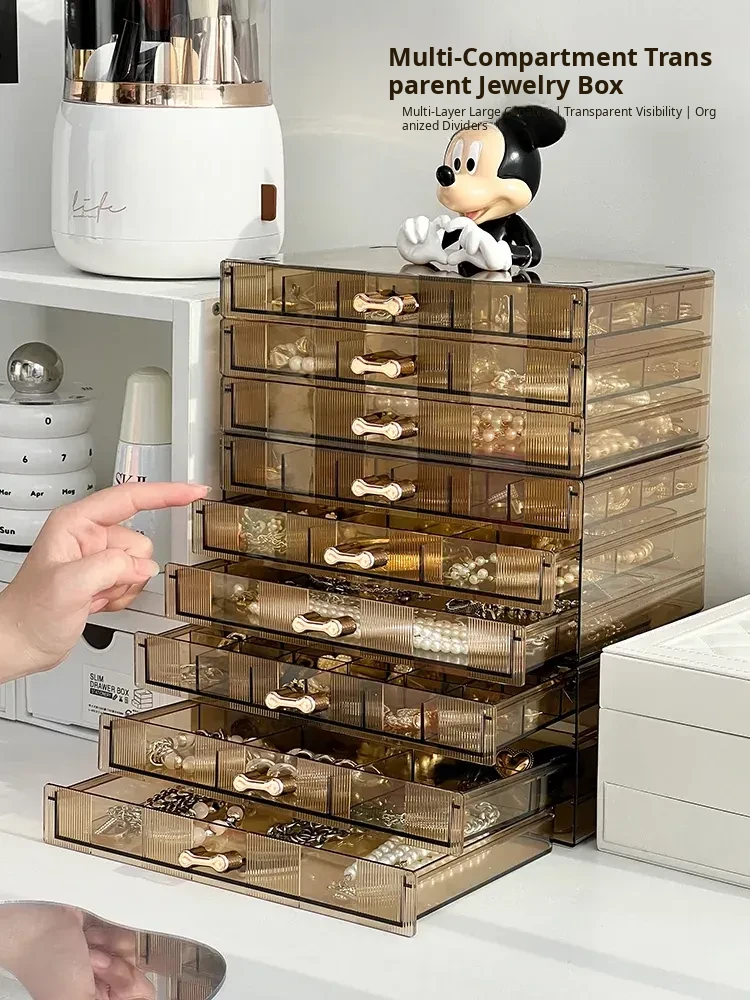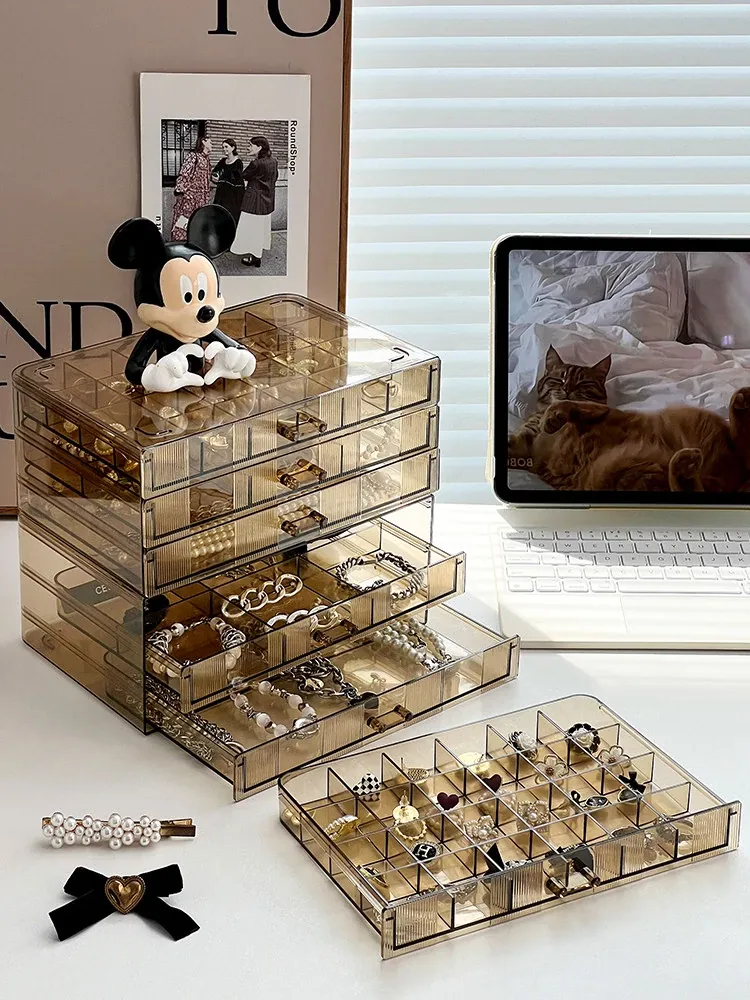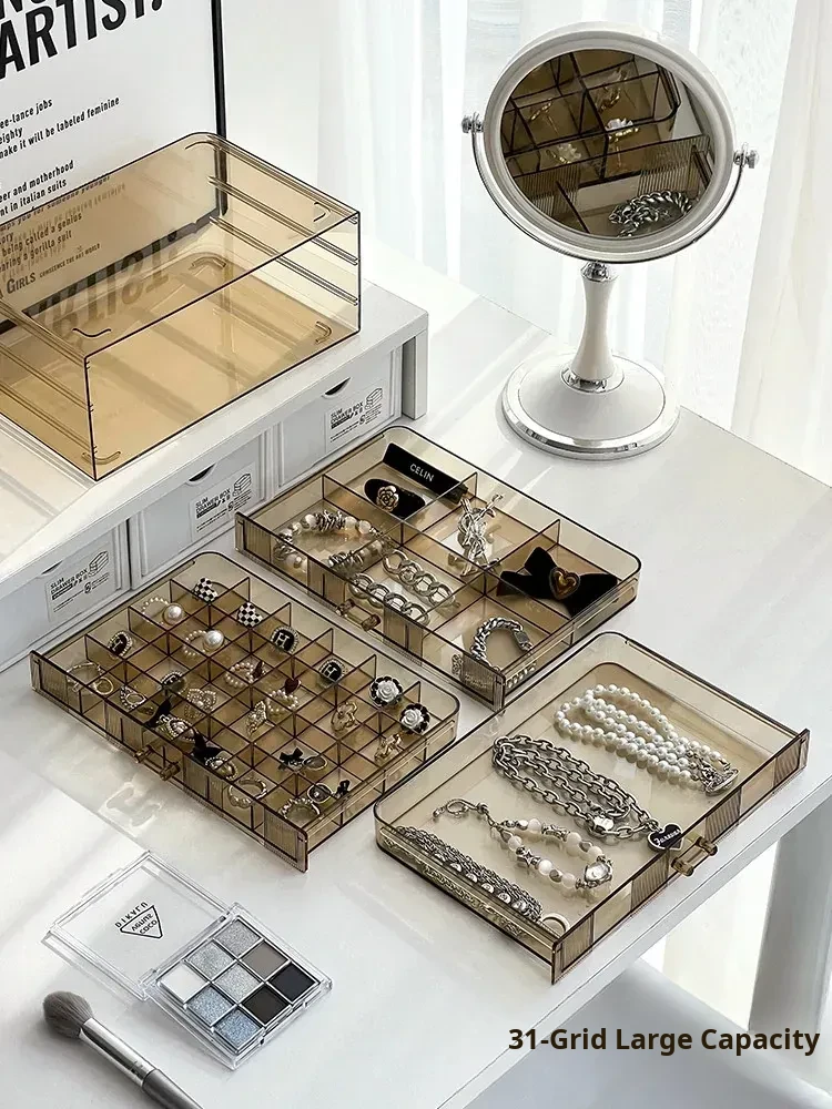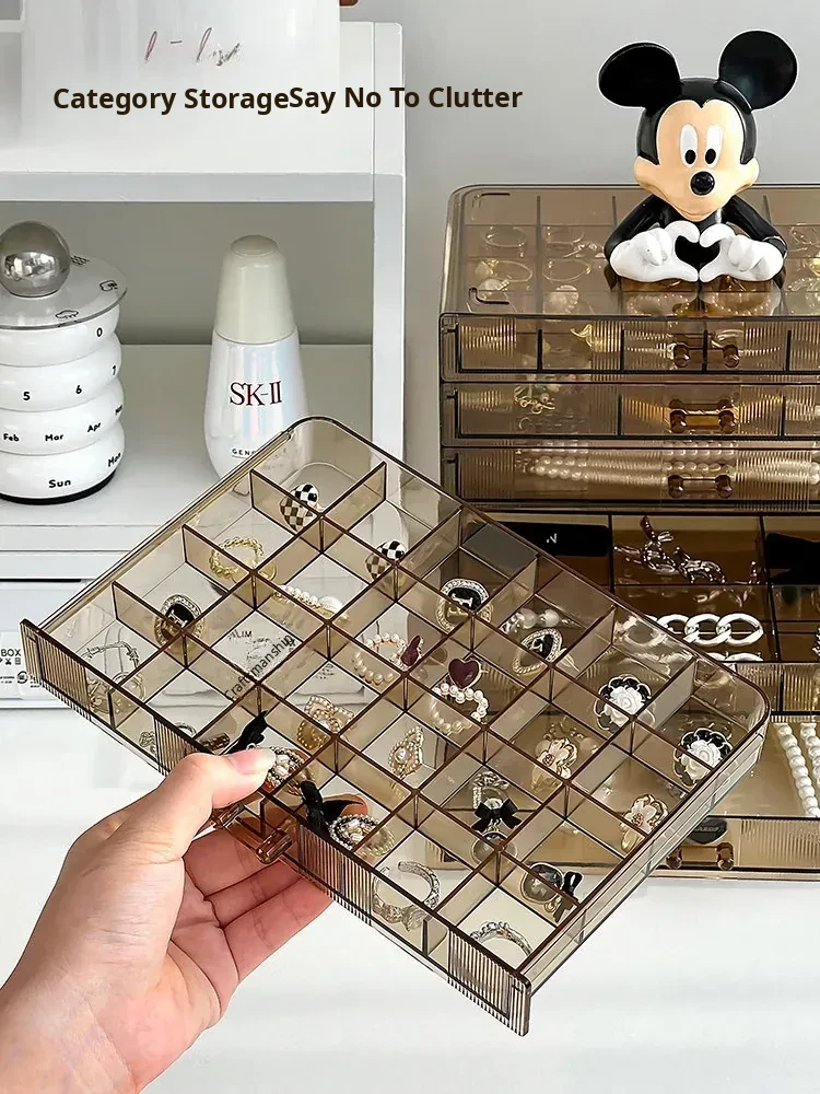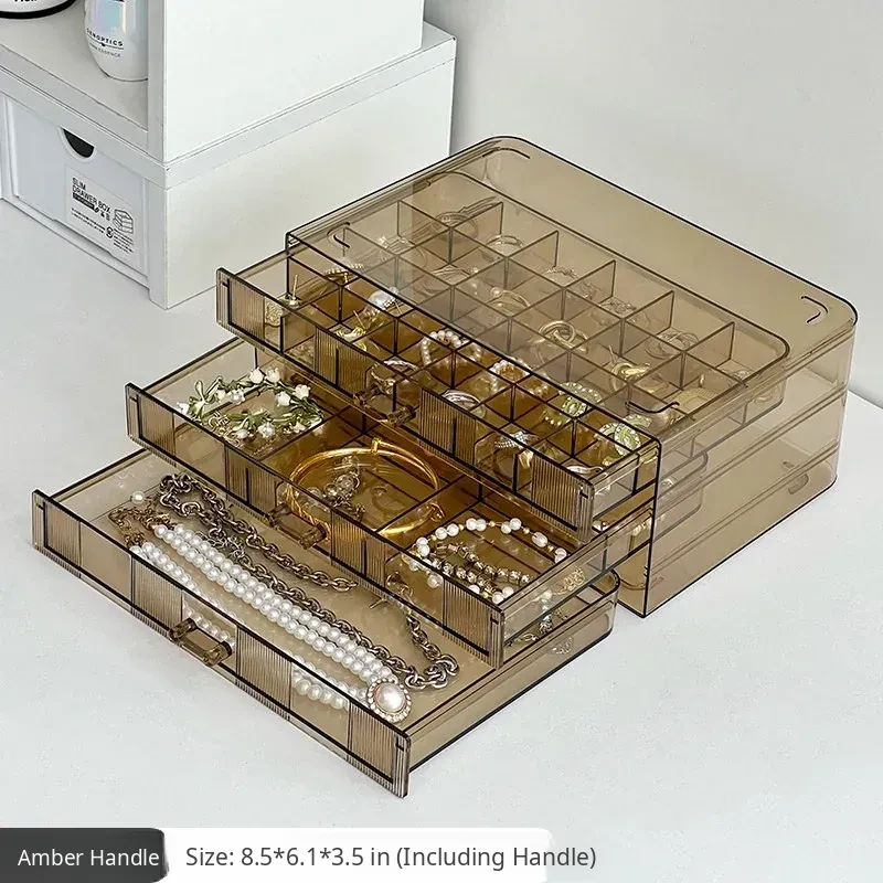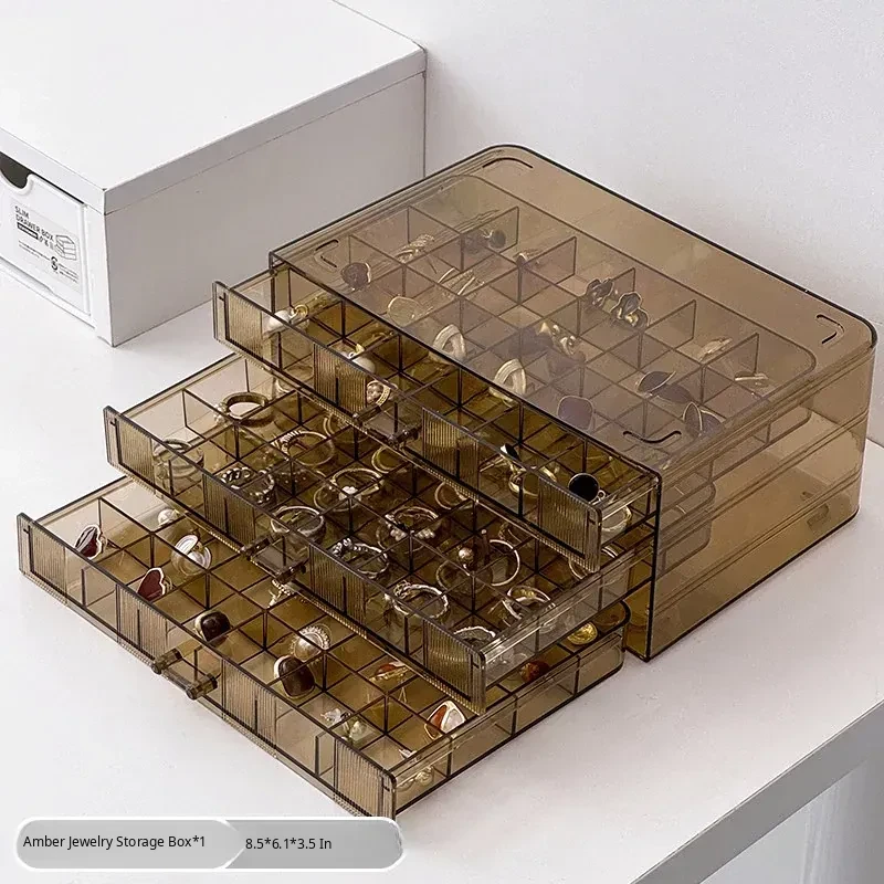 [Amber-72 Grids] Three-Layer Drawer-Type Jewelry Box