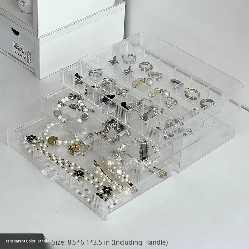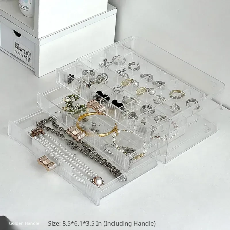 [Transparent Color-Gold Handle] Three-Layer Drawer Jewelry Box