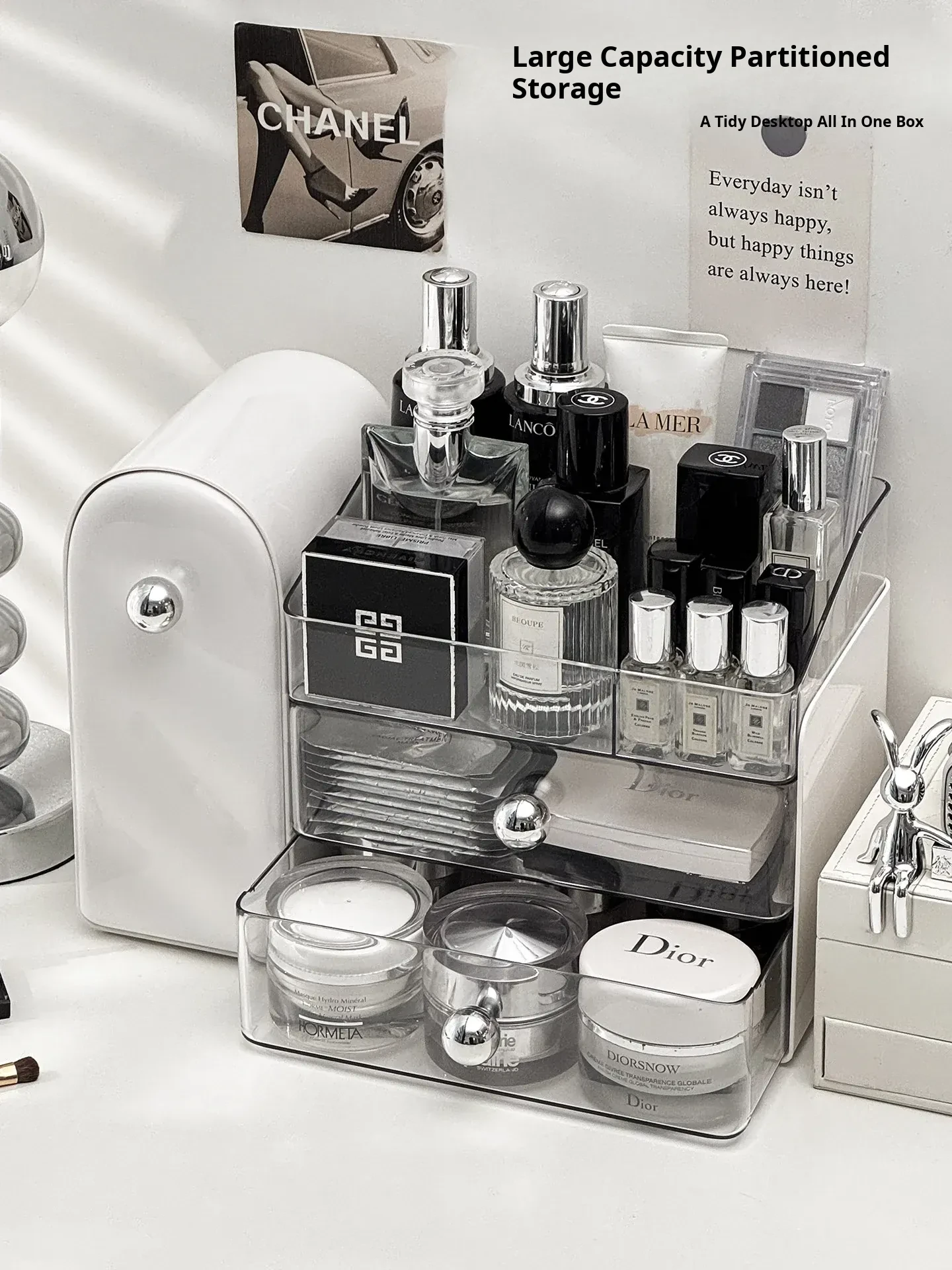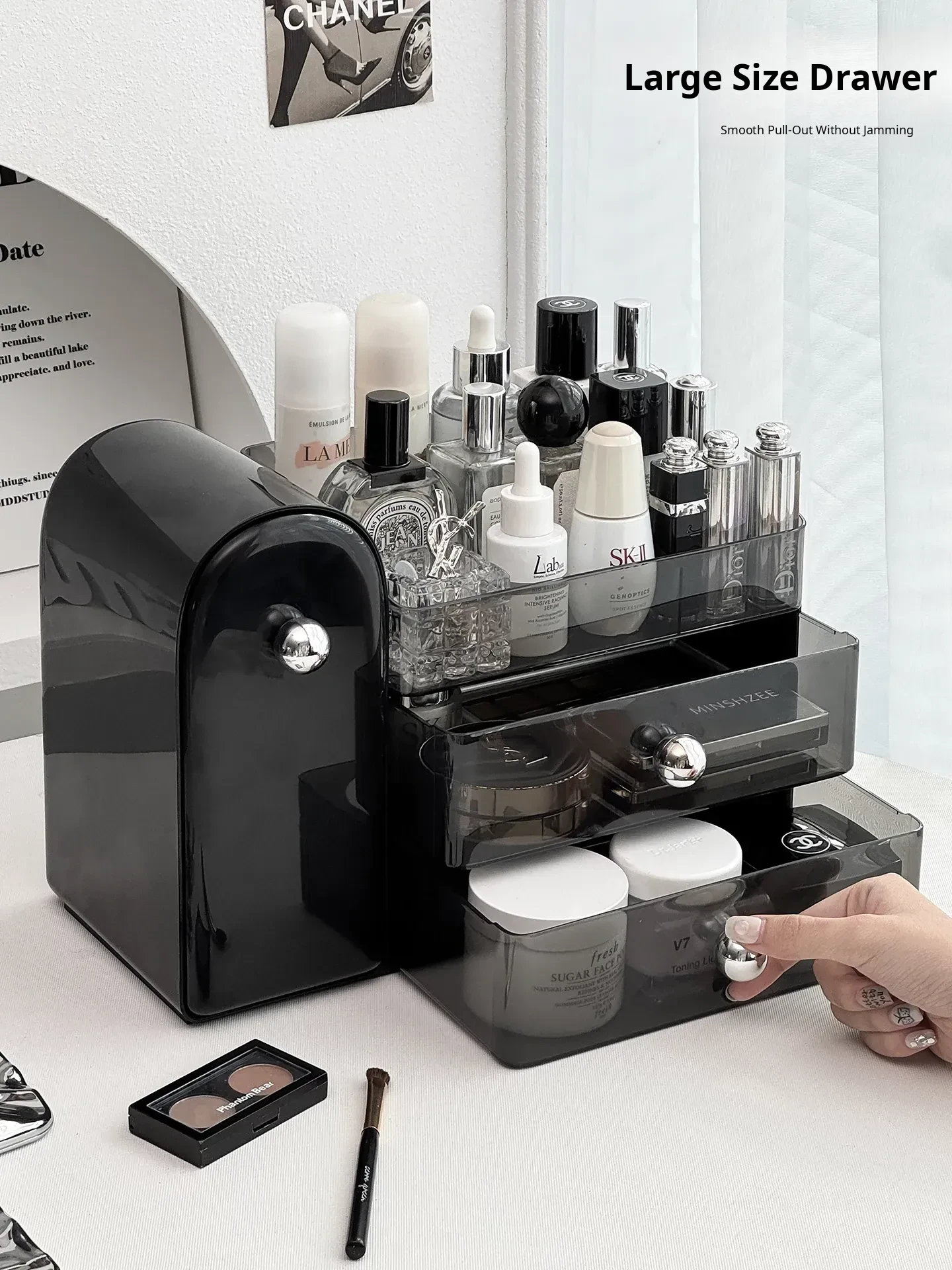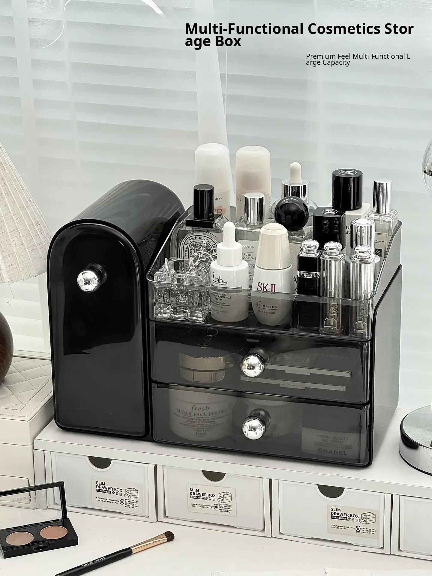 Premium Makeup Organizer Box - Dustproof Makeup Brush Holder, Vanity Drawer for Lipsticks and Skincare Products, Stylish Storage Solution for a Chic Makeup Station