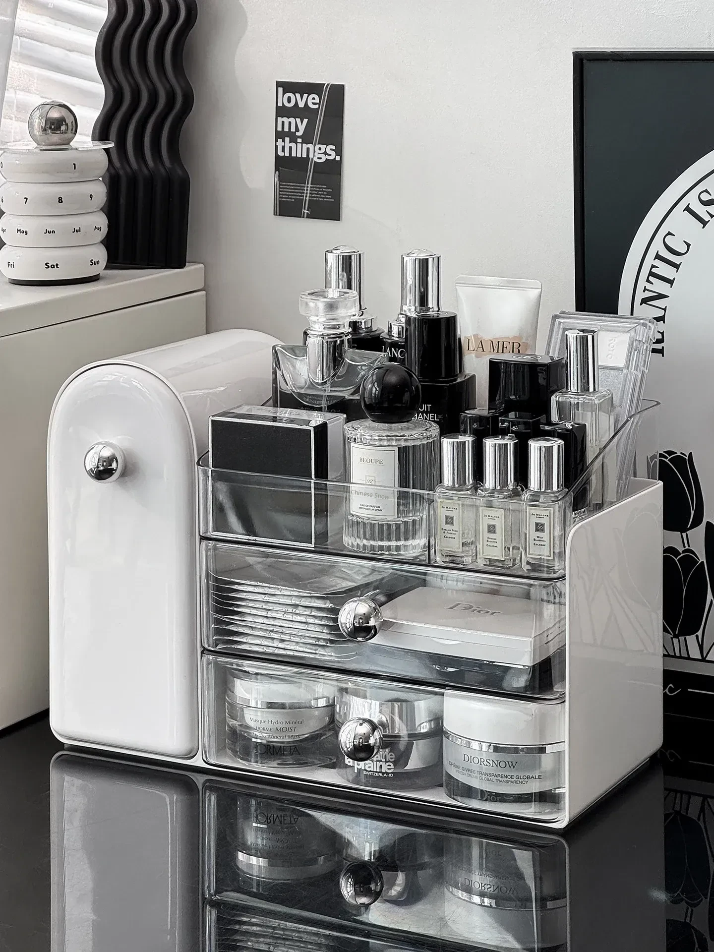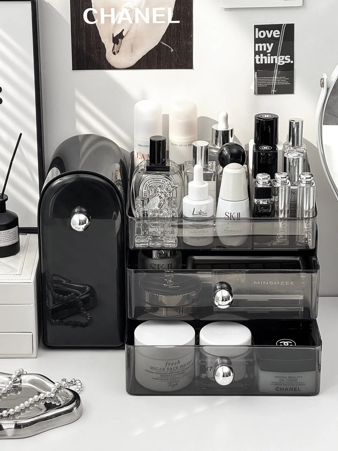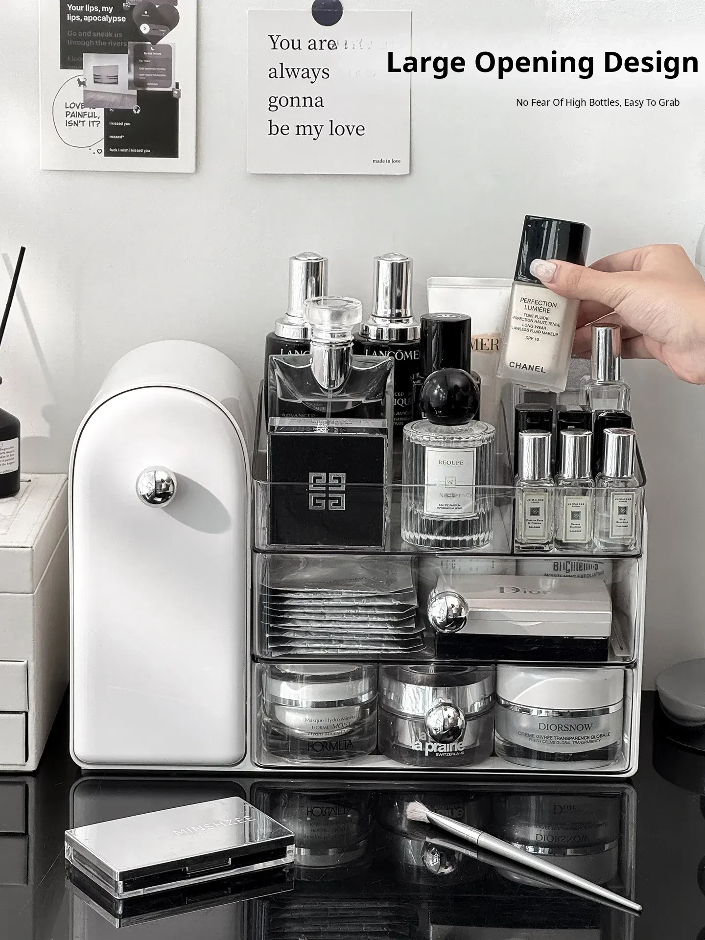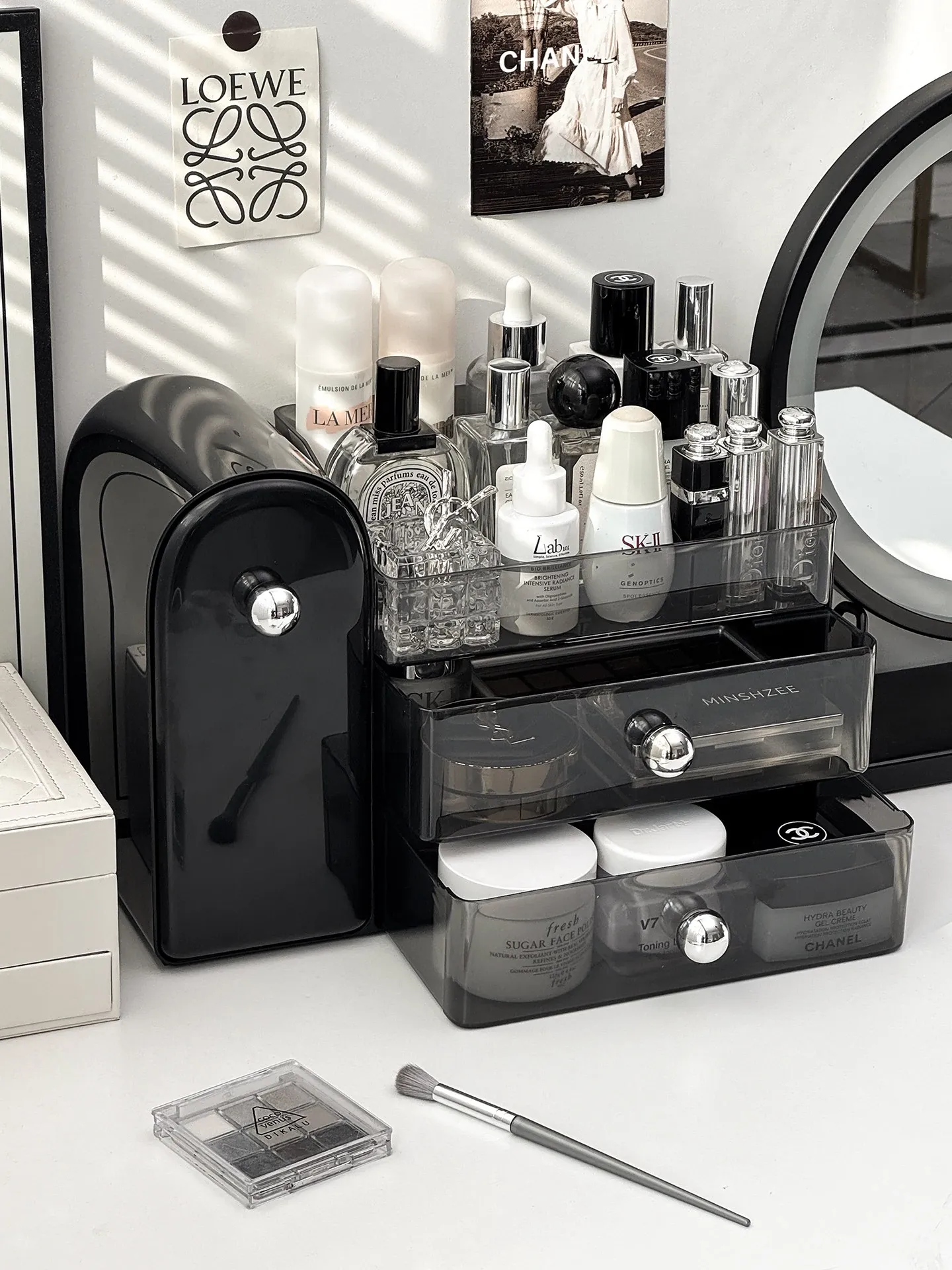 Premium Makeup Organizer Box - Dustproof Makeup Brush Holder, Vanity Drawer for Lipsticks and Skincare Products, Stylish Storage Solution for a Chic Makeup Station