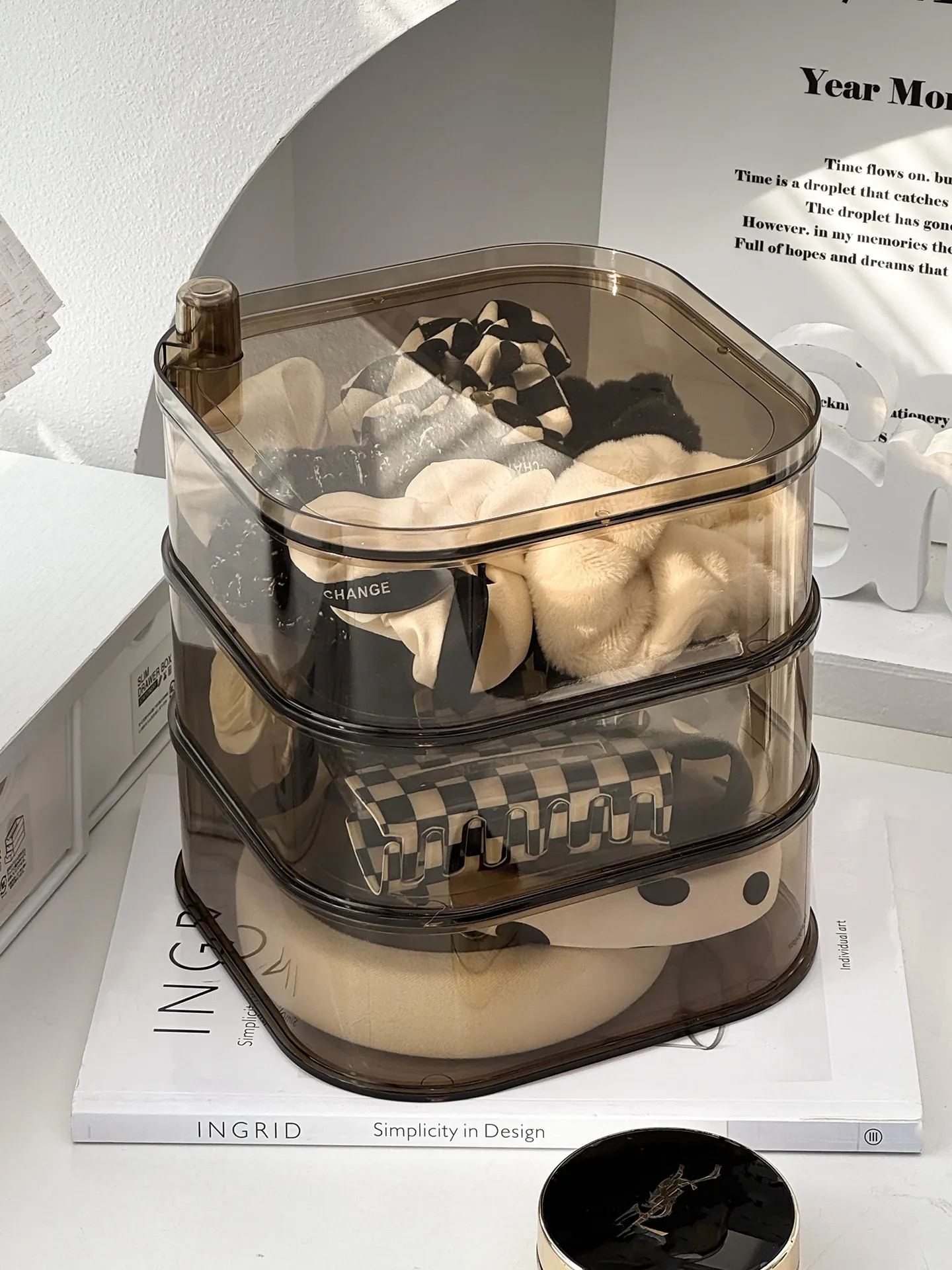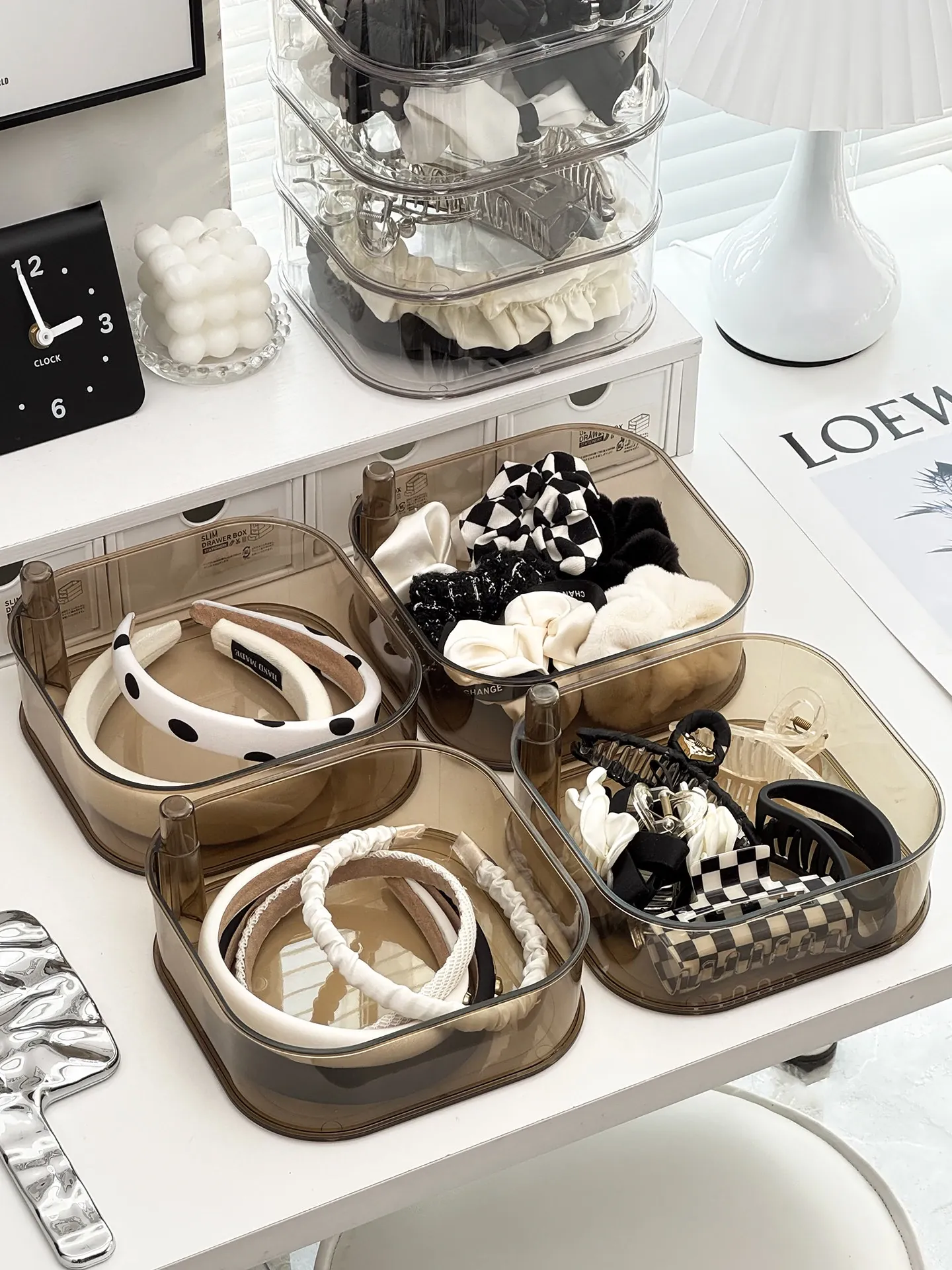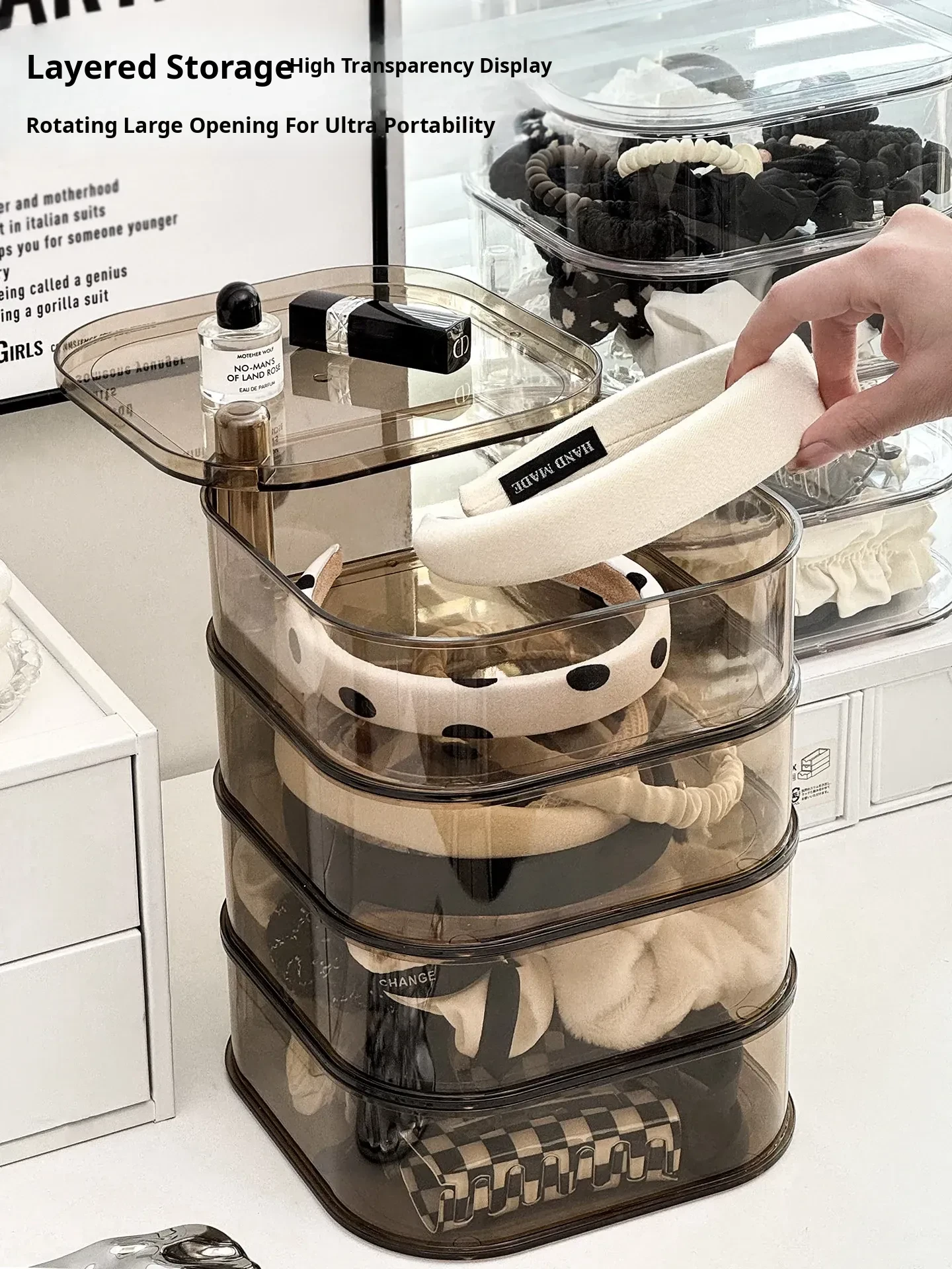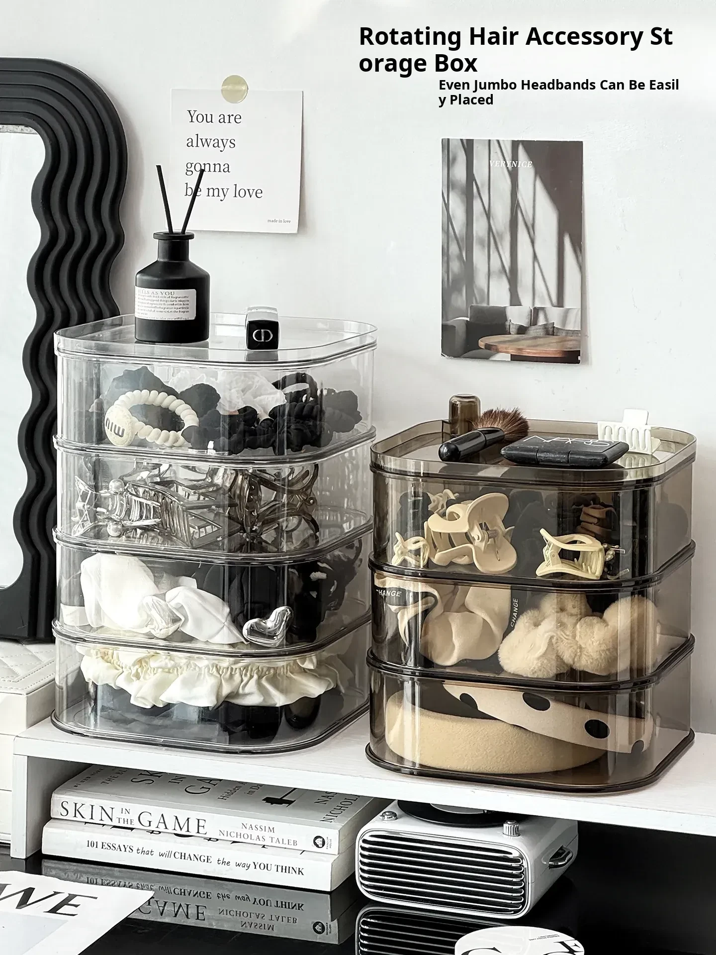 Revolving Hair Accessory Organizer - Large Capacity Storage Box for Kids' Hair Ties and Scrunchies, Stylish Desktop Display Stand for Clips and Barrettes