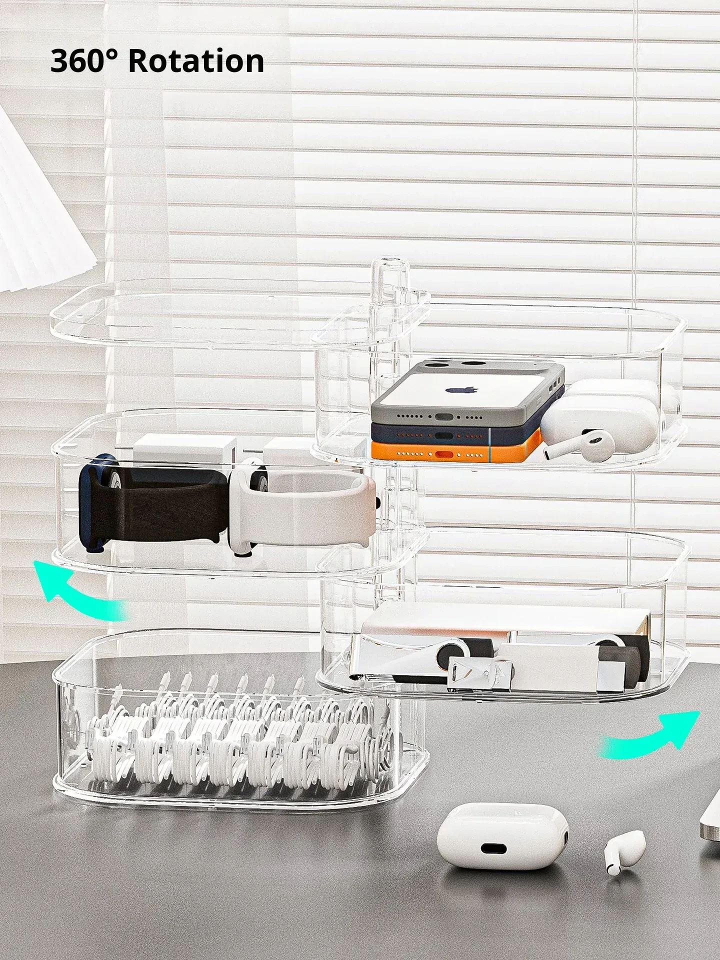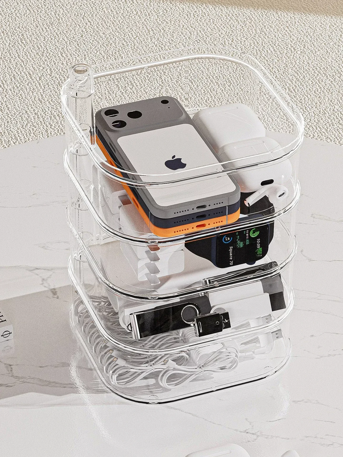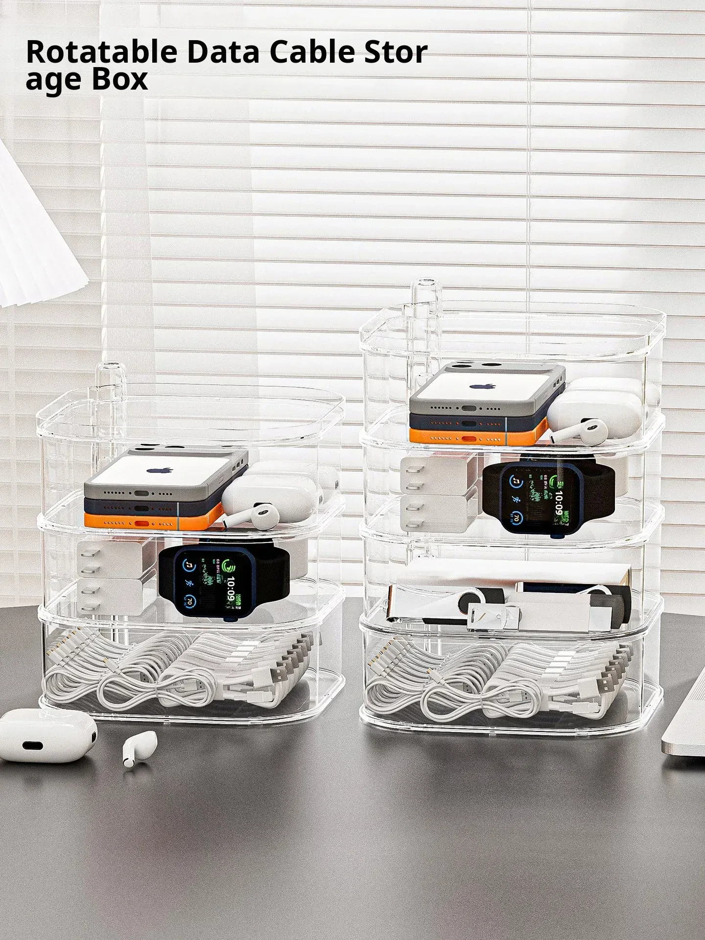 Rotatable Data Cable Organizer Box - Transparent Multi-Layer Charging Station for Desktop, Perfect for Tidy Cables and Phones, Your Ultimate Cable Management Solution!