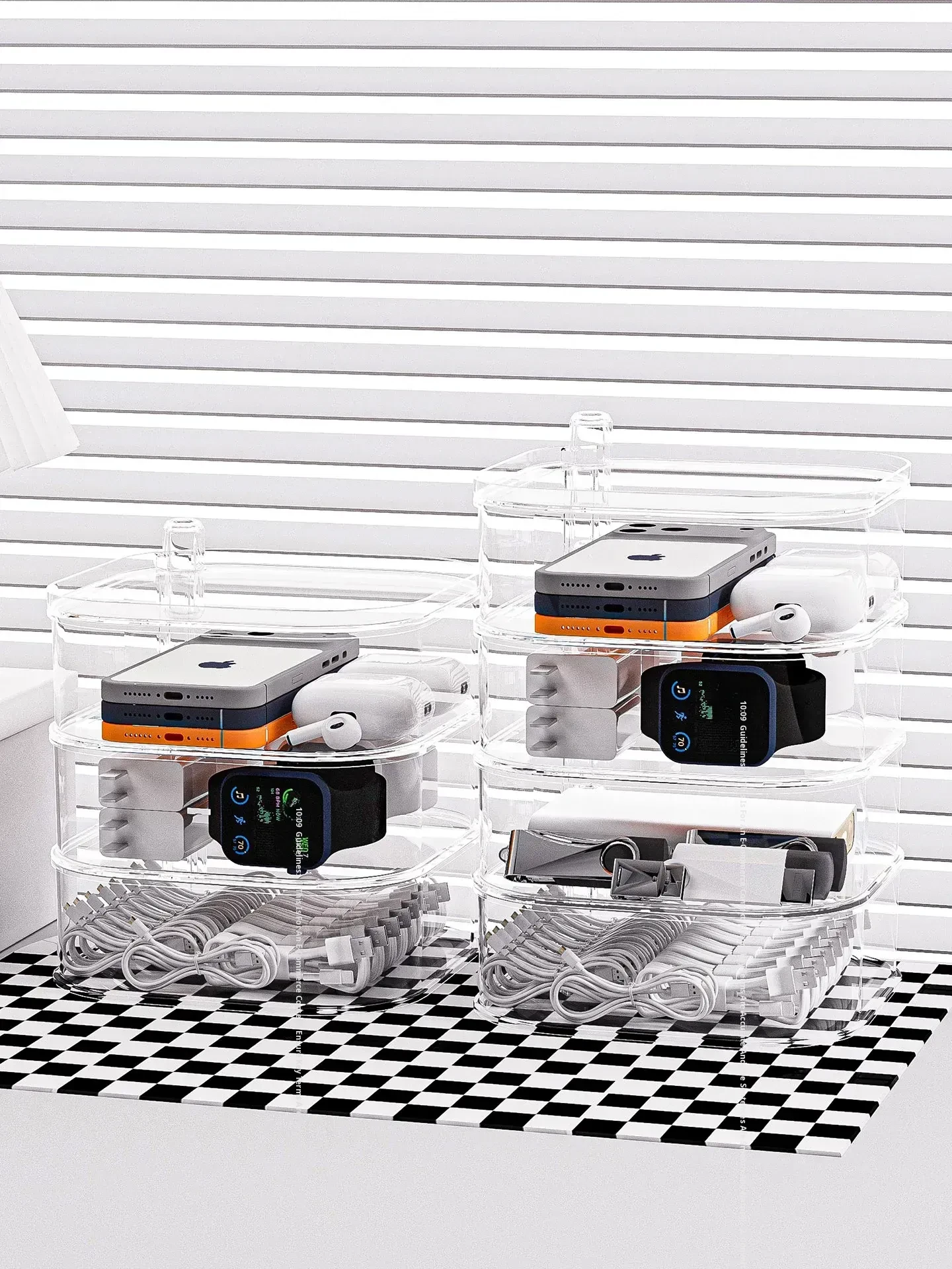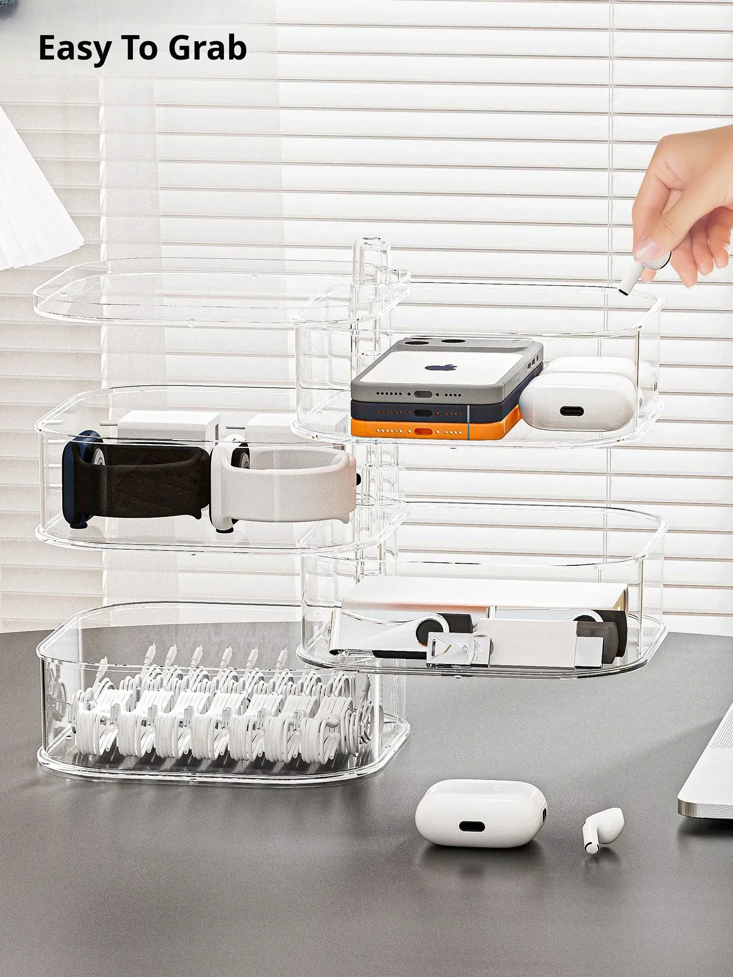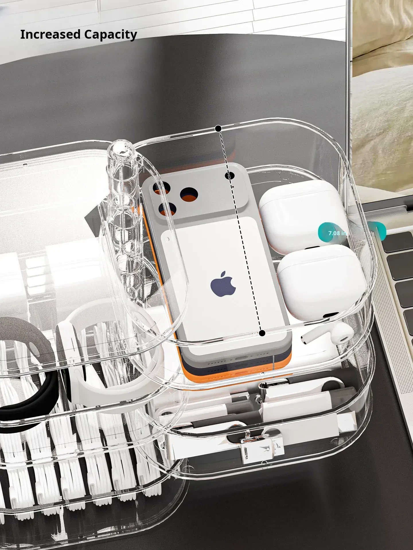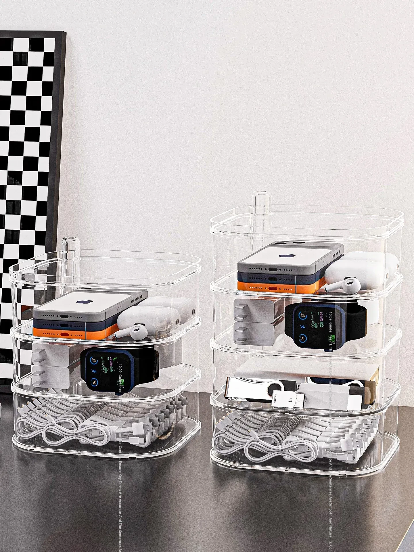 Rotatable Data Cable Organizer Box - Transparent Multi-Layer Charging Station for Desktop, Perfect for Tidy Cables and Phones, Your Ultimate Cable Management Solution!