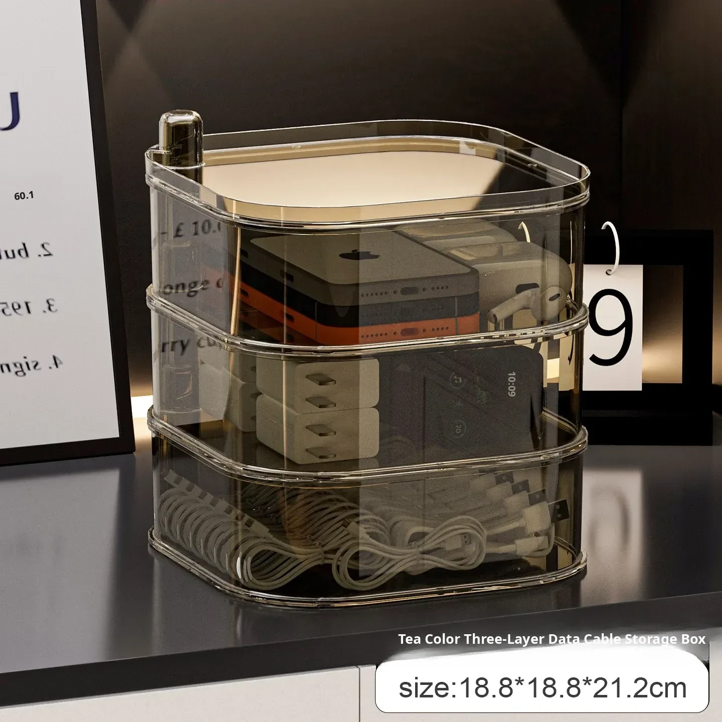 [Transparent Three-Layer/Rotatable/Stackable] Data Cable Storage Box-Sf7701-3