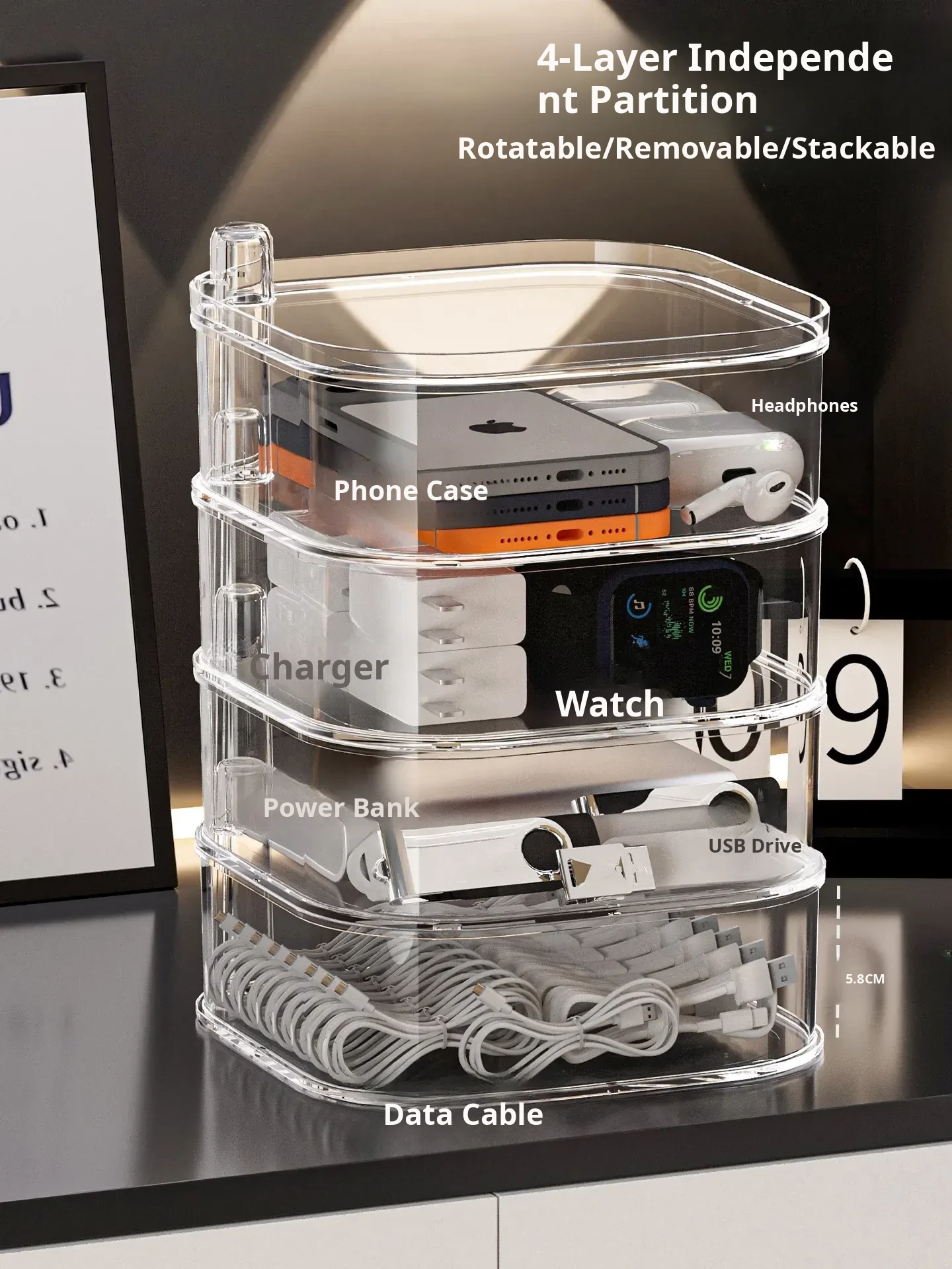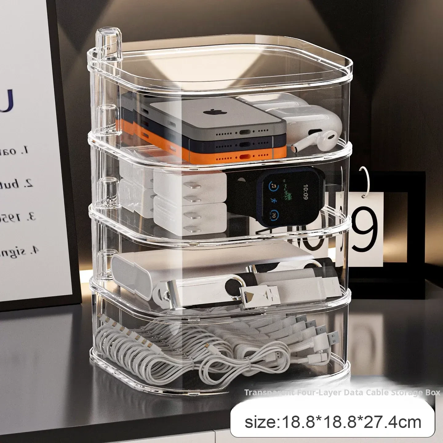 [Transparent Four Layers/Rotatable/Stackable] Data Cable Storage Box-Sf7701-4