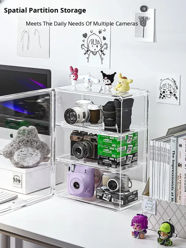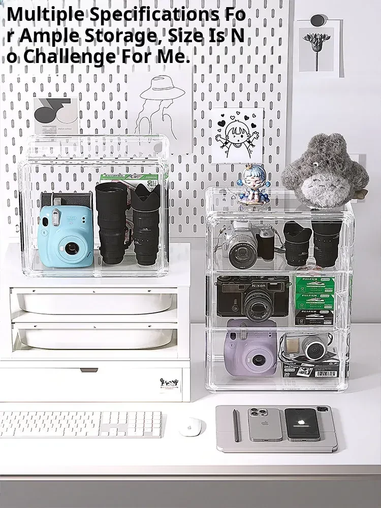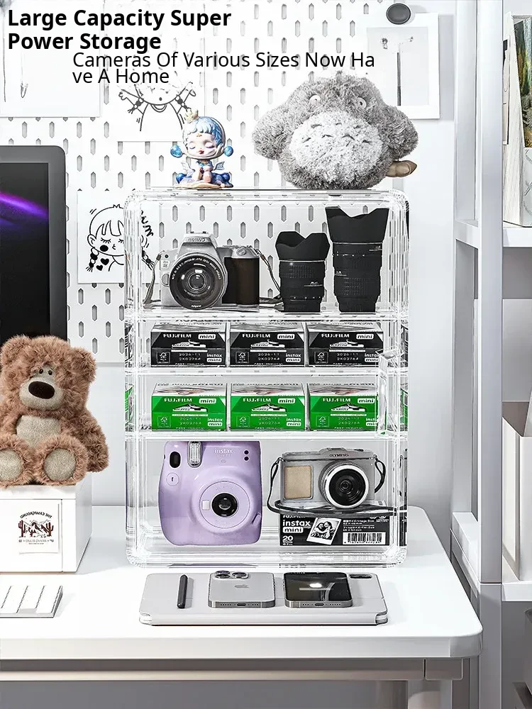 Stylish Instant Camera Storage Box - Dustproof Organizer for CCD Digital Cameras, Mirrorless Lenses, Accessories & Photo Paper - Perfect Desktop Solution for Photography Enthusiasts!