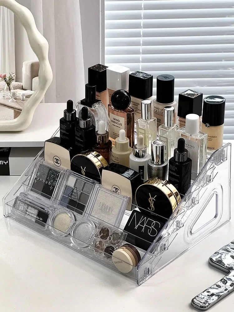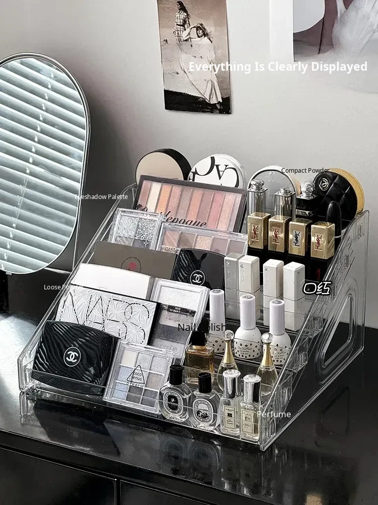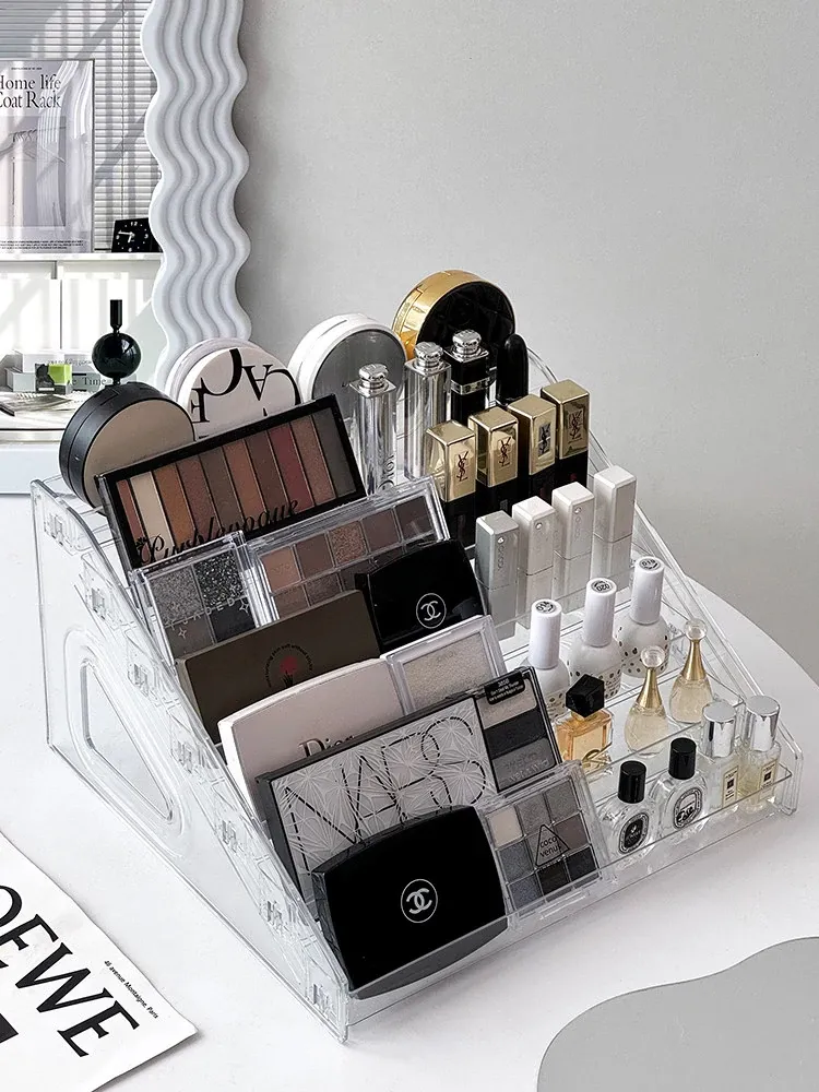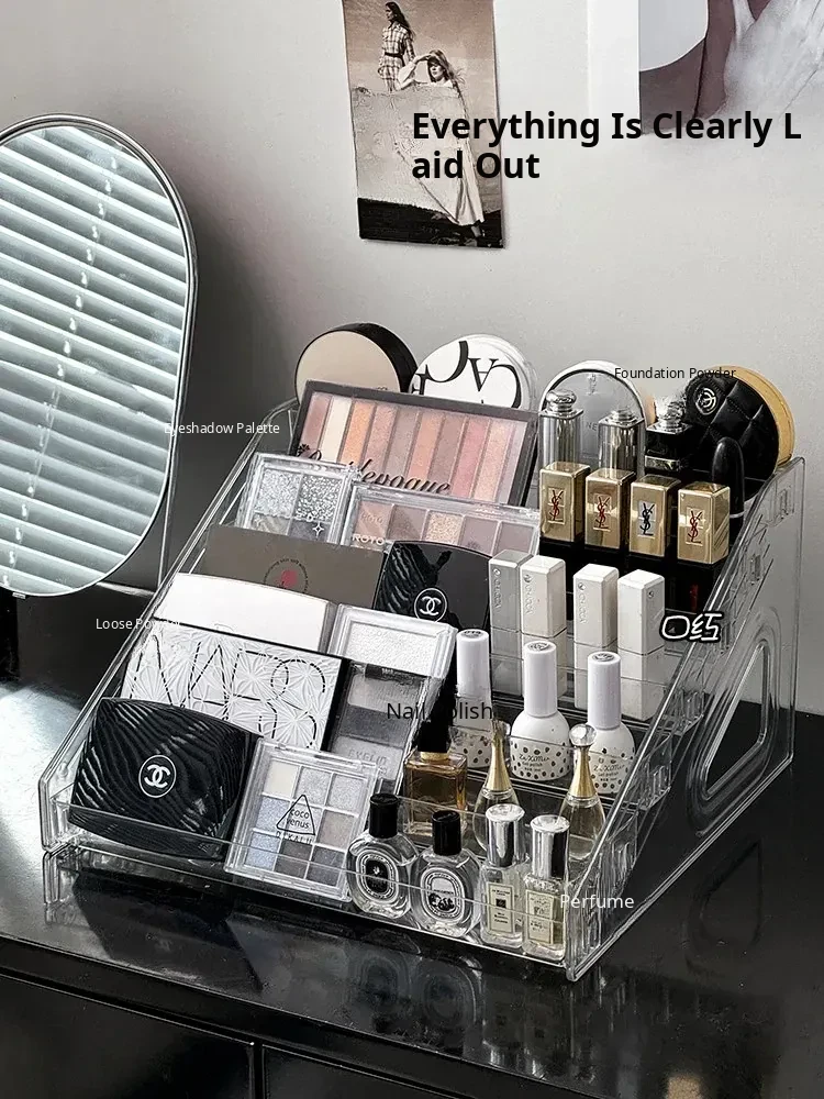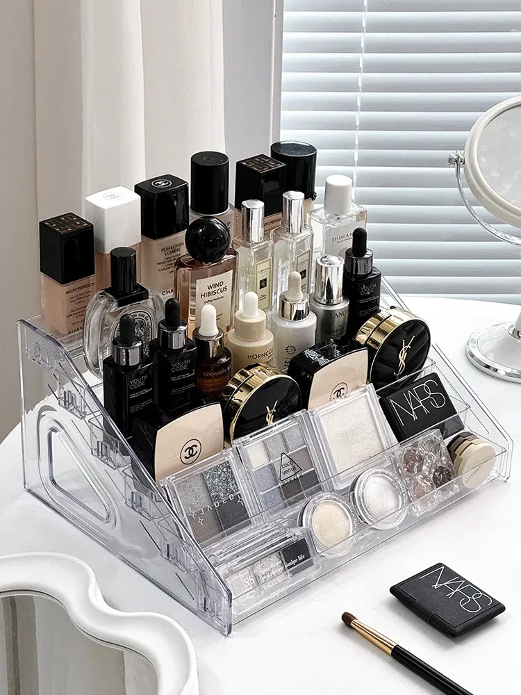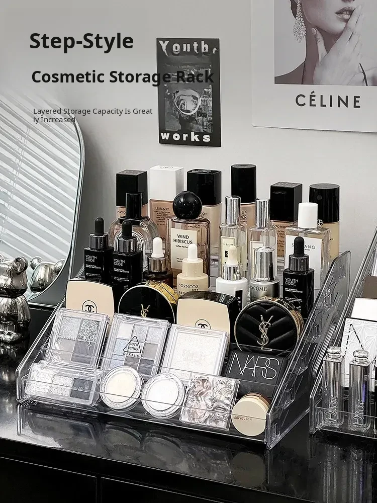 Tiered Makeup Organizer - Desktop Cosmetics Storage Box for Powder, Eyeshadow Palettes, Perfume Display, and Vanity Essentials