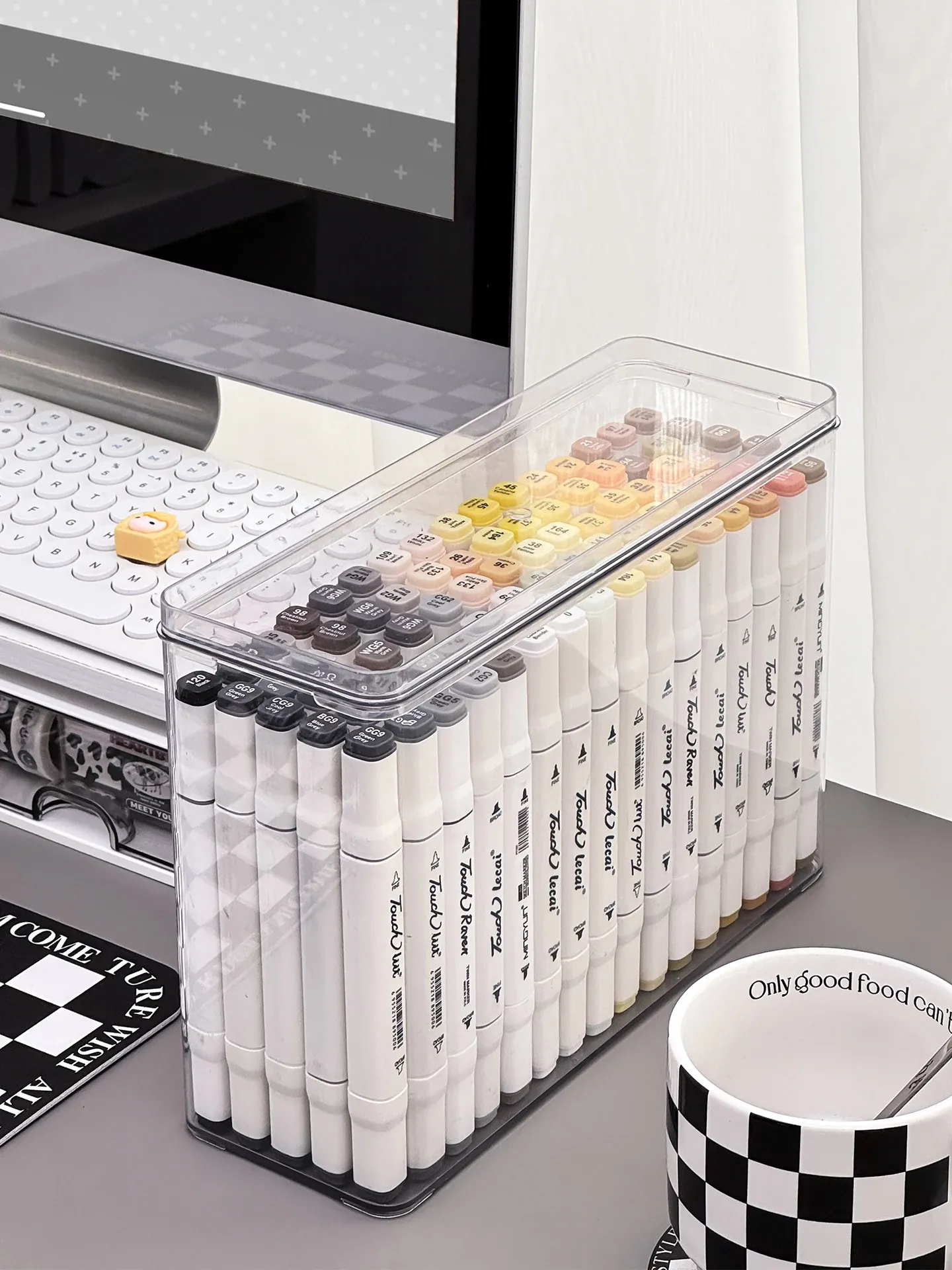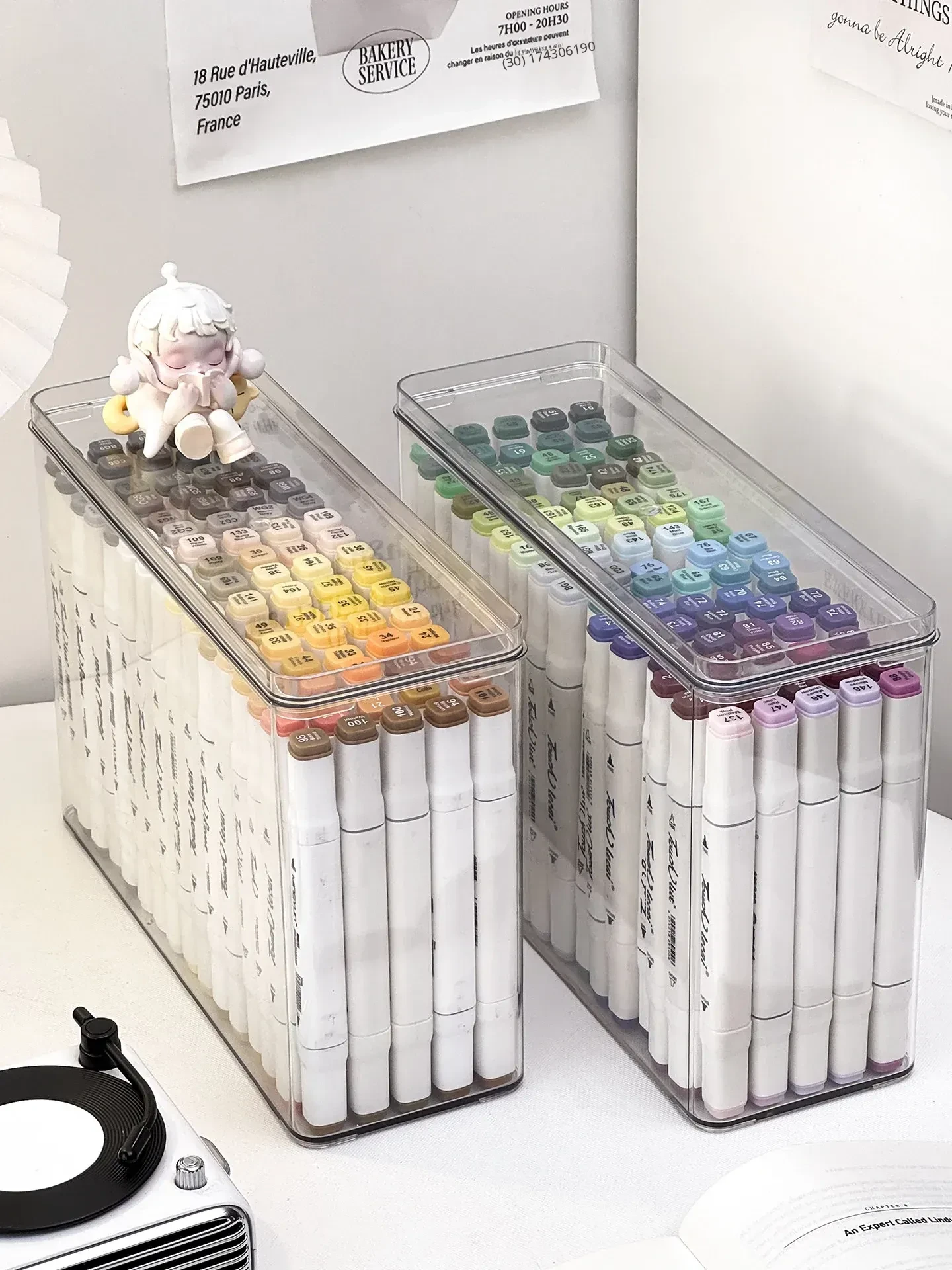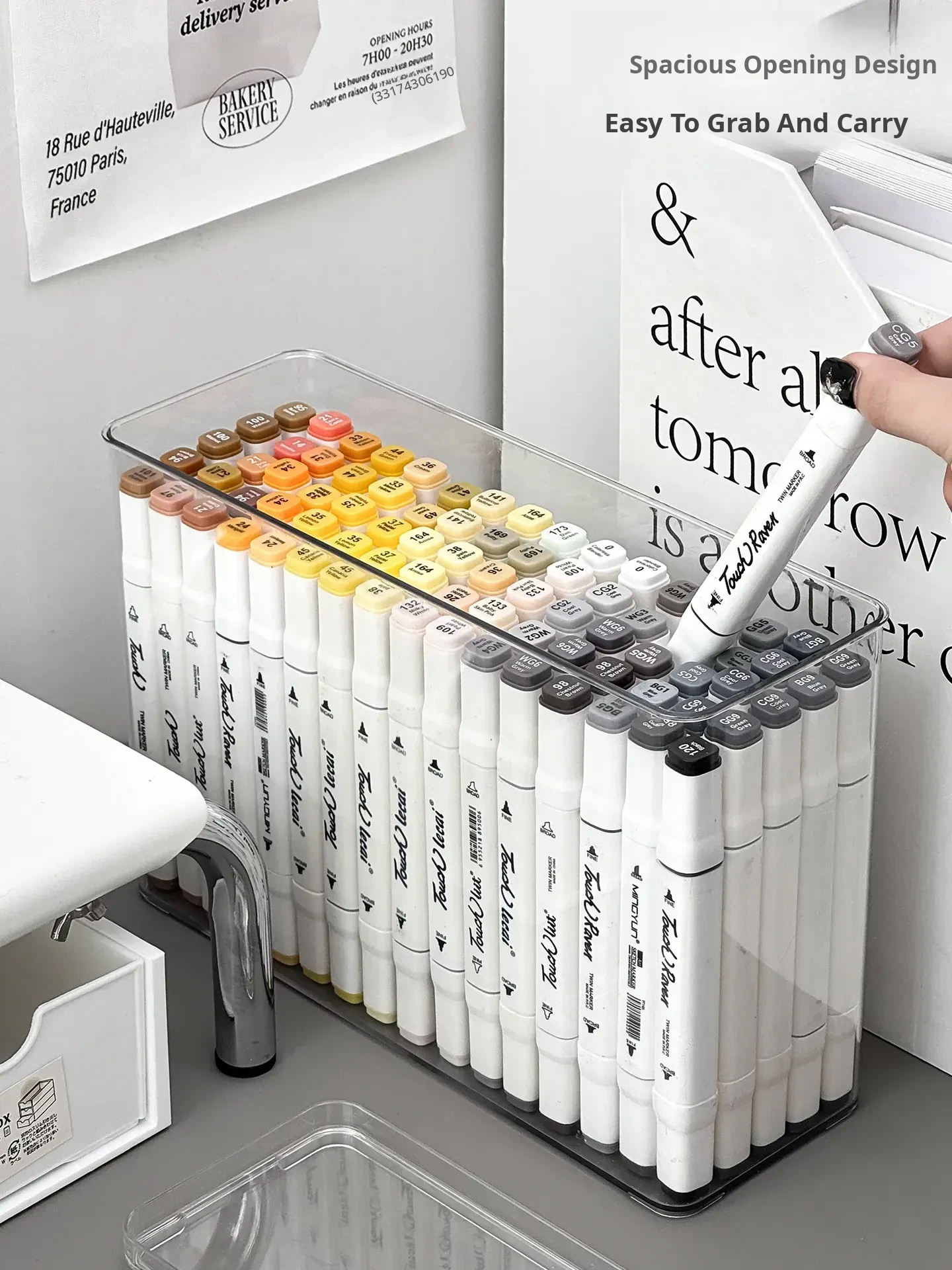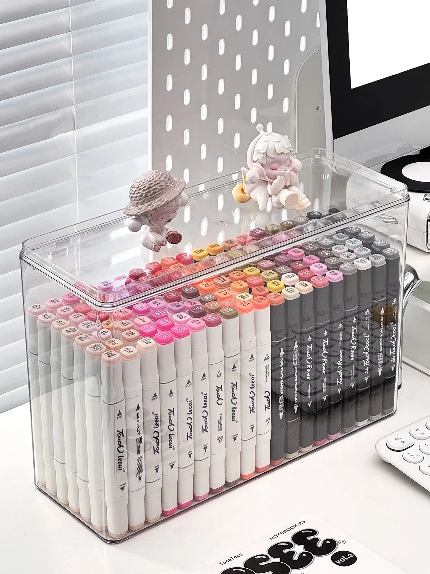 Transparent Acrylic Marker Storage Box - Large Capacity Pen Holder for Kids, Perfect Desktop Organizer for Boys and Girls, Essential Stationery Solution!