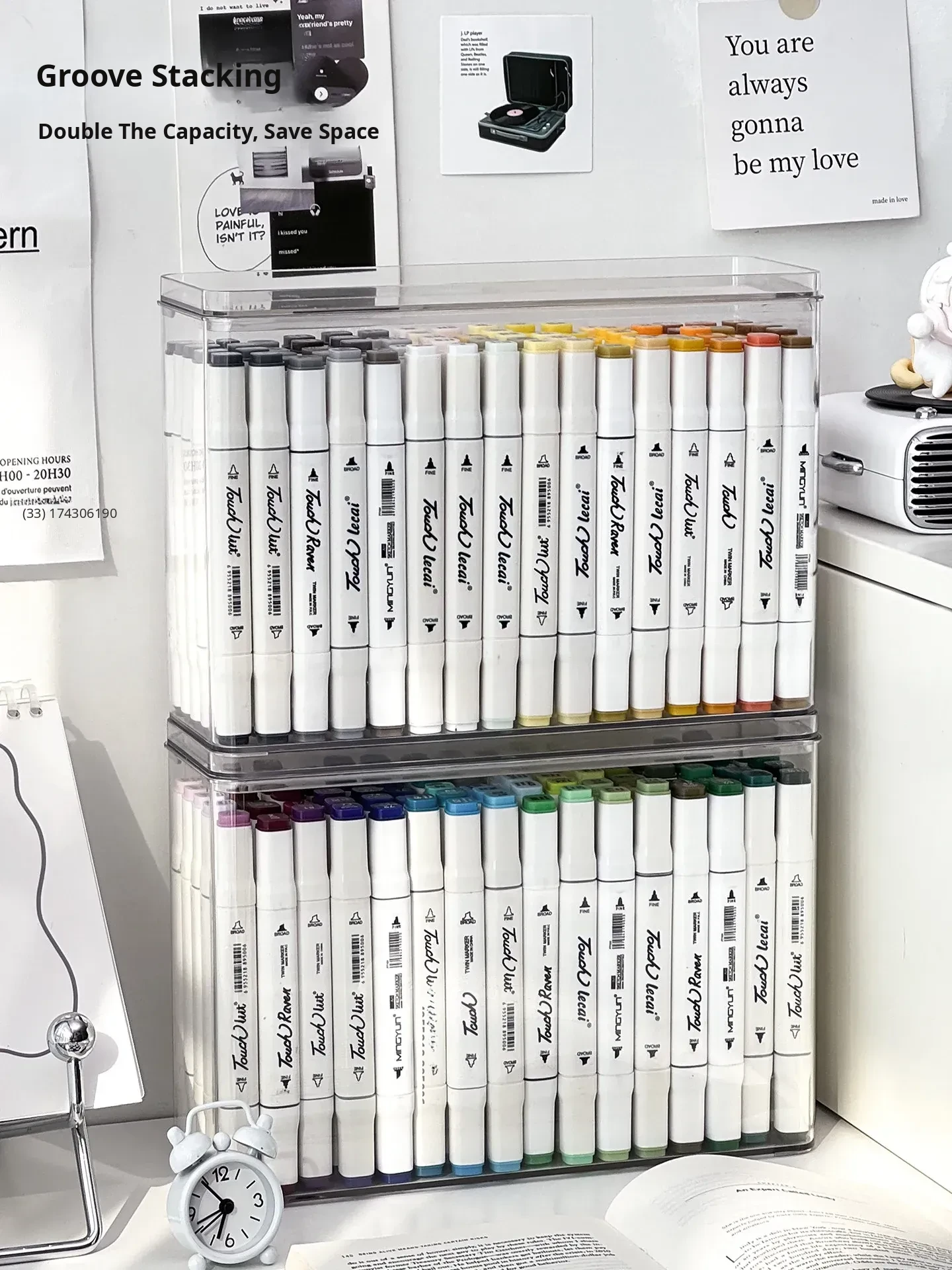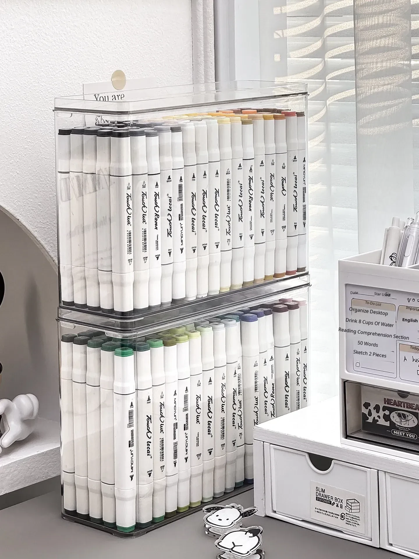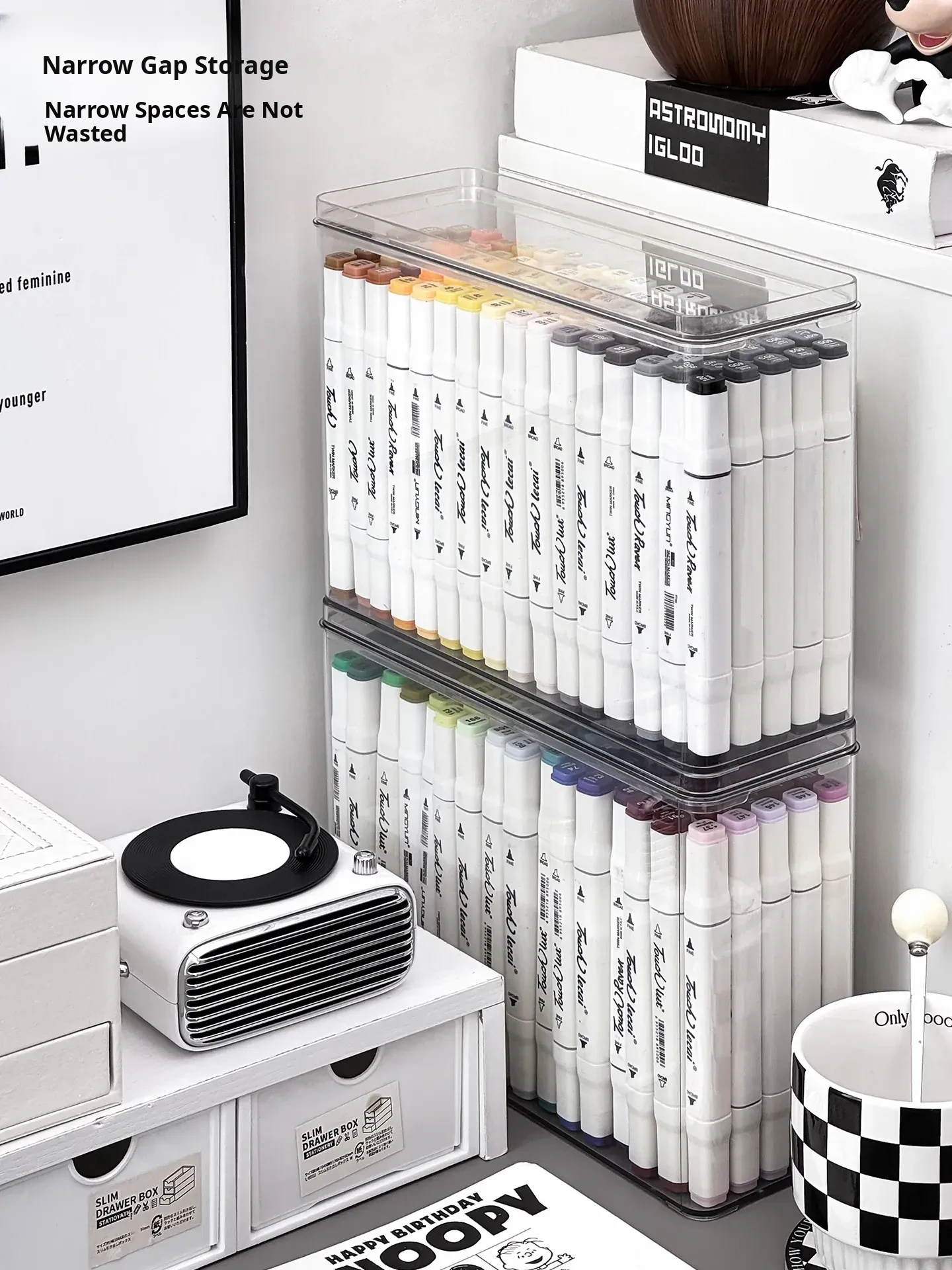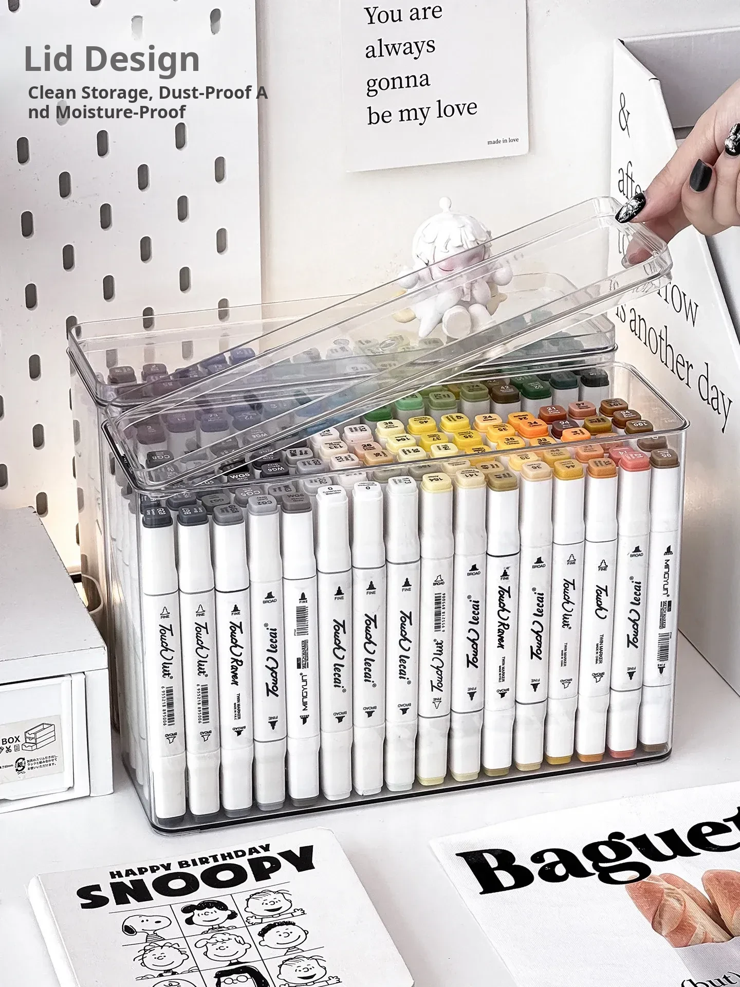 Transparent Acrylic Marker Storage Box - Large Capacity Pen Holder for Kids, Perfect Desktop Organizer for Boys and Girls, Essential Stationery Solution!