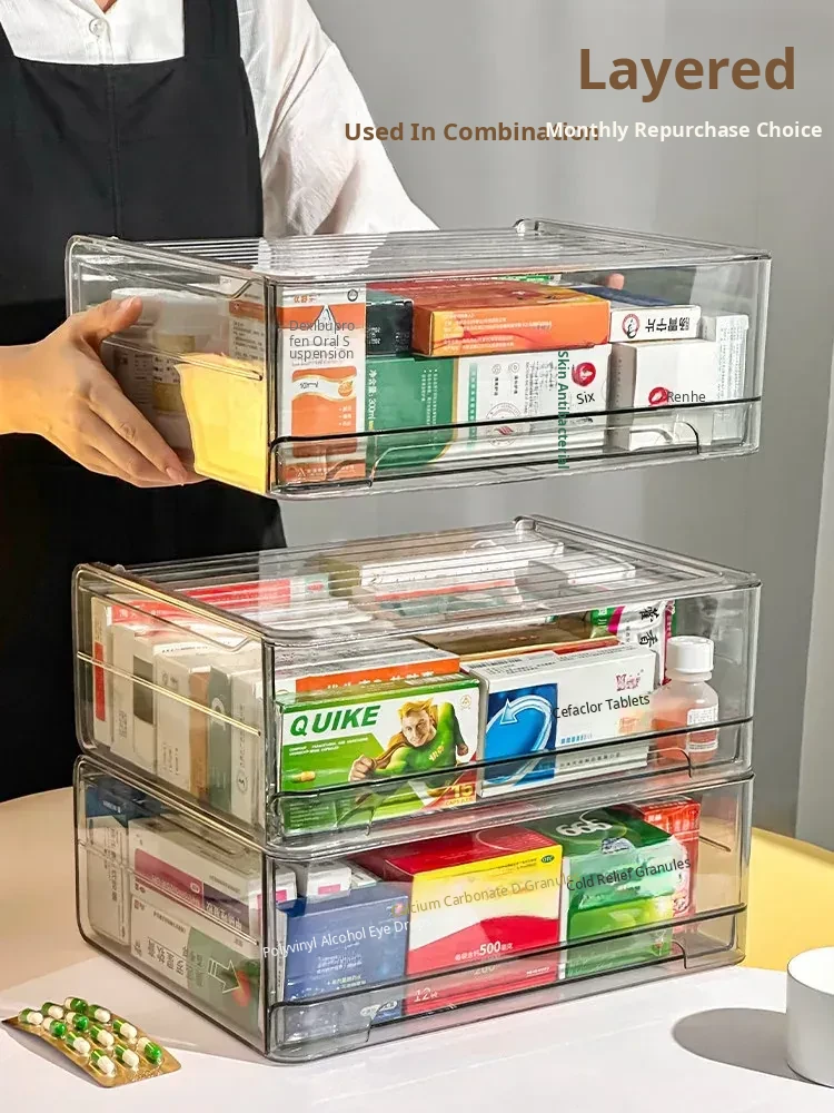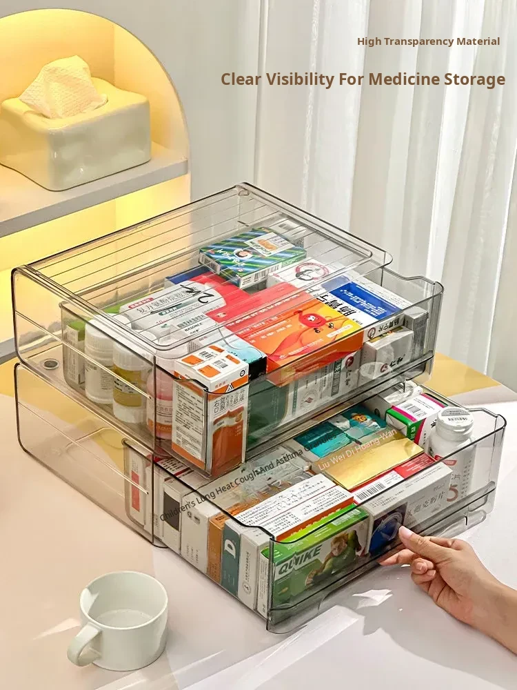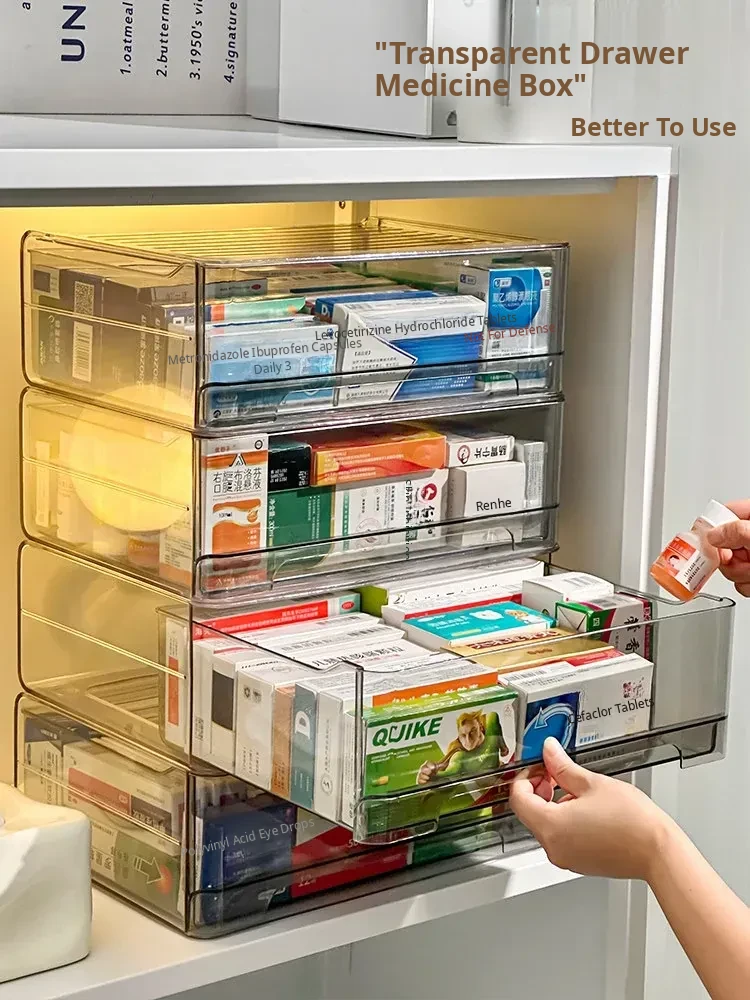 Transparent Drawer Medicine Organizer - Family Medicine Storage Box for Home Use, Perfect for Categorizing and Organizing Medications with Convenience