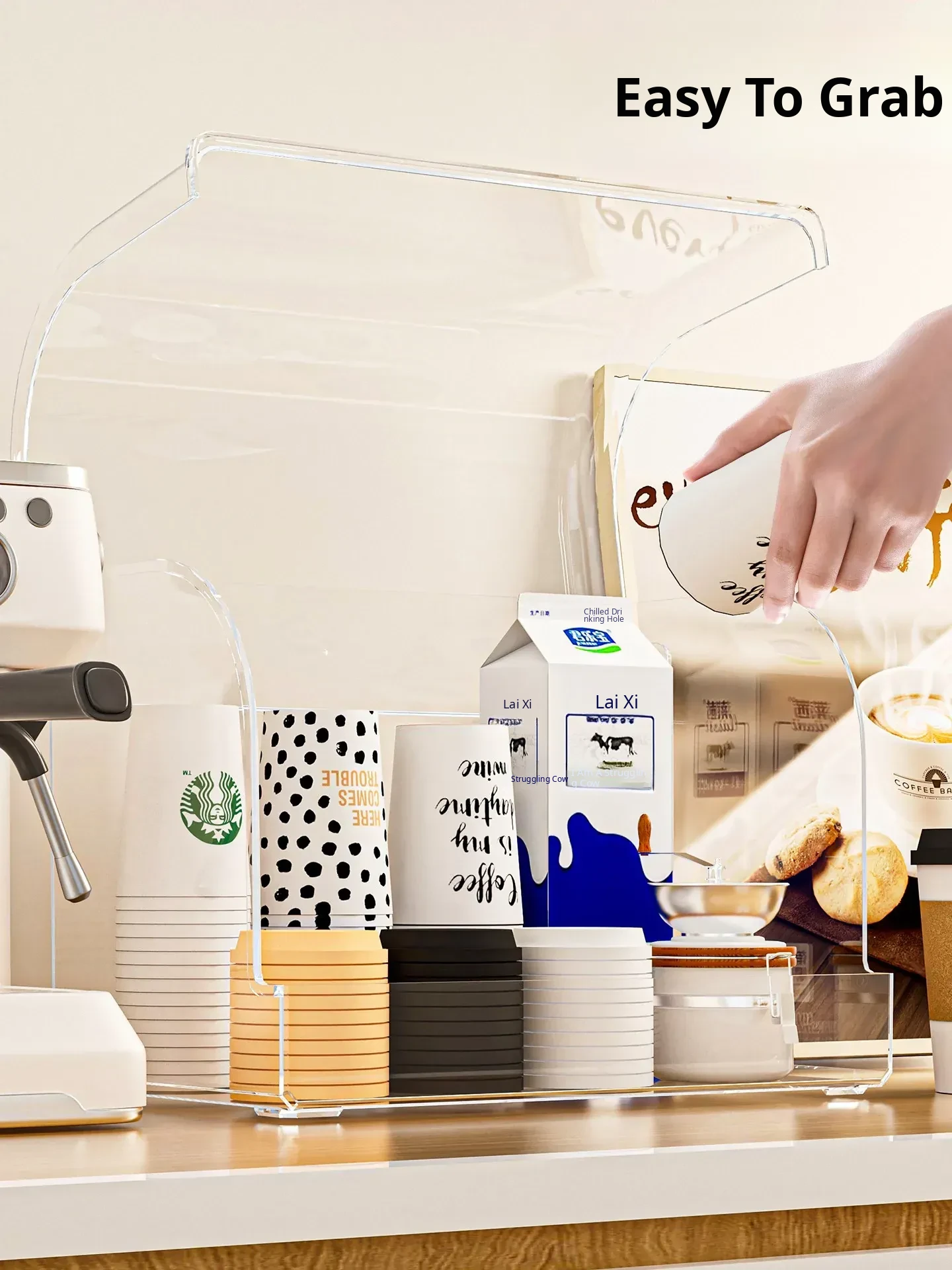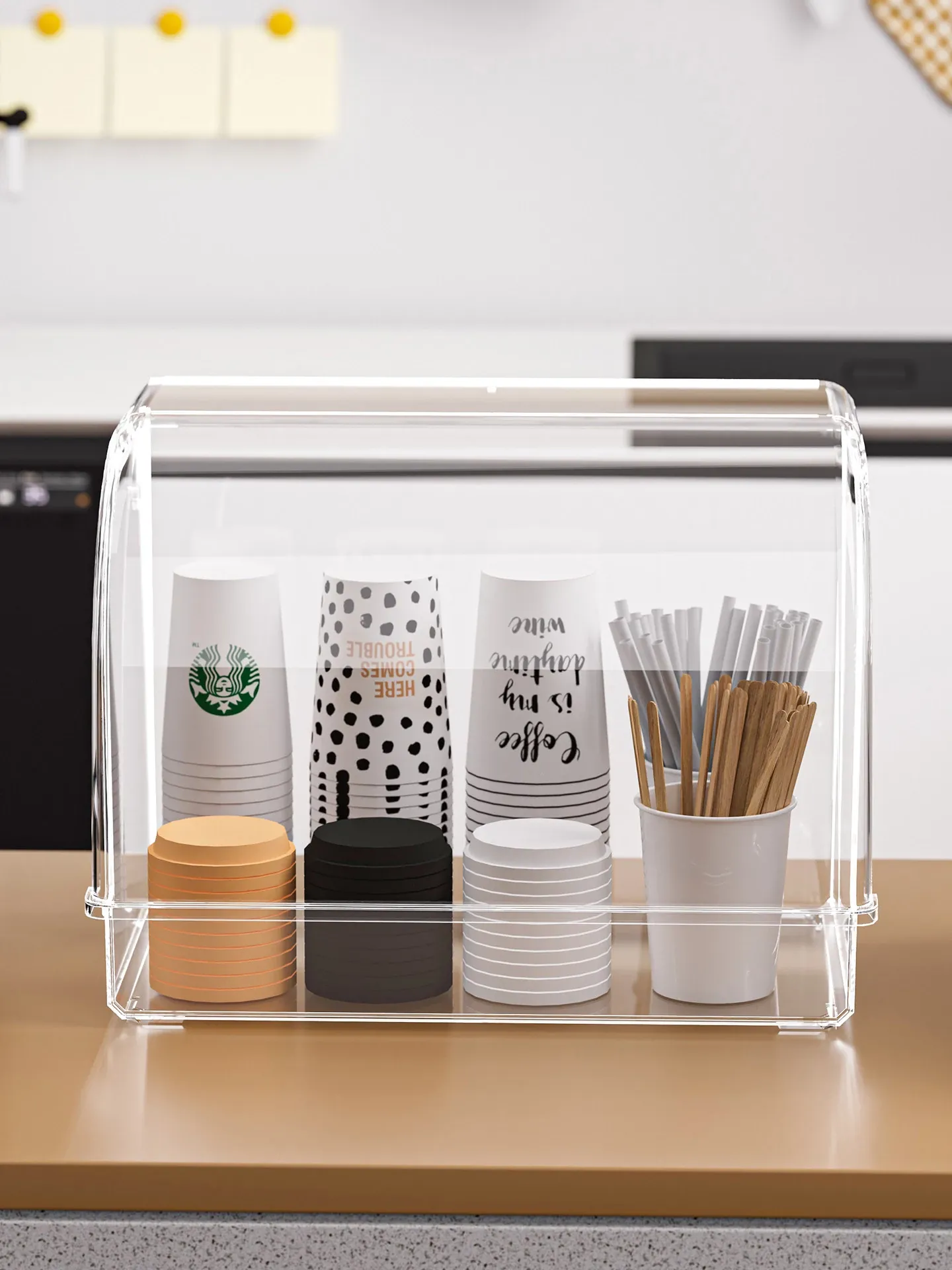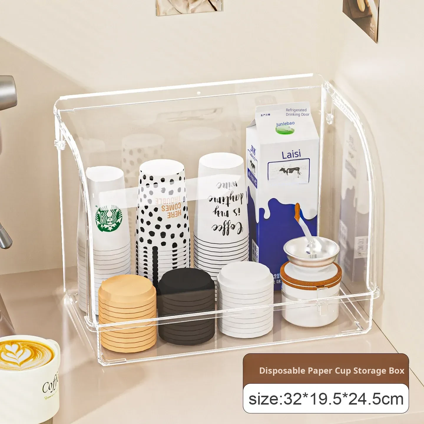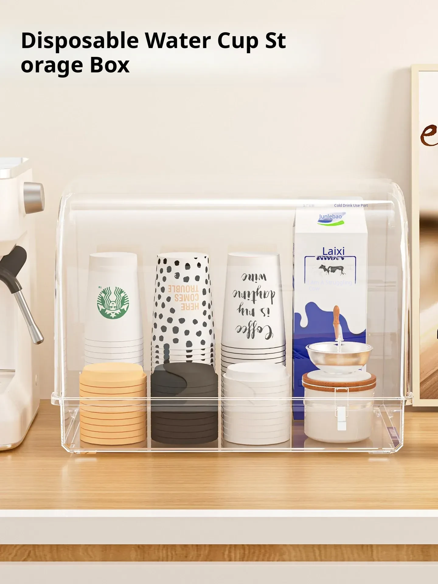 Transparent Dustproof Disposable Cup Dispenser - Stylish Bar Cup Organizer and Storage Rack for Desktop Tea Cups, Ideal for Keeping Your Space Tidy and Elegant