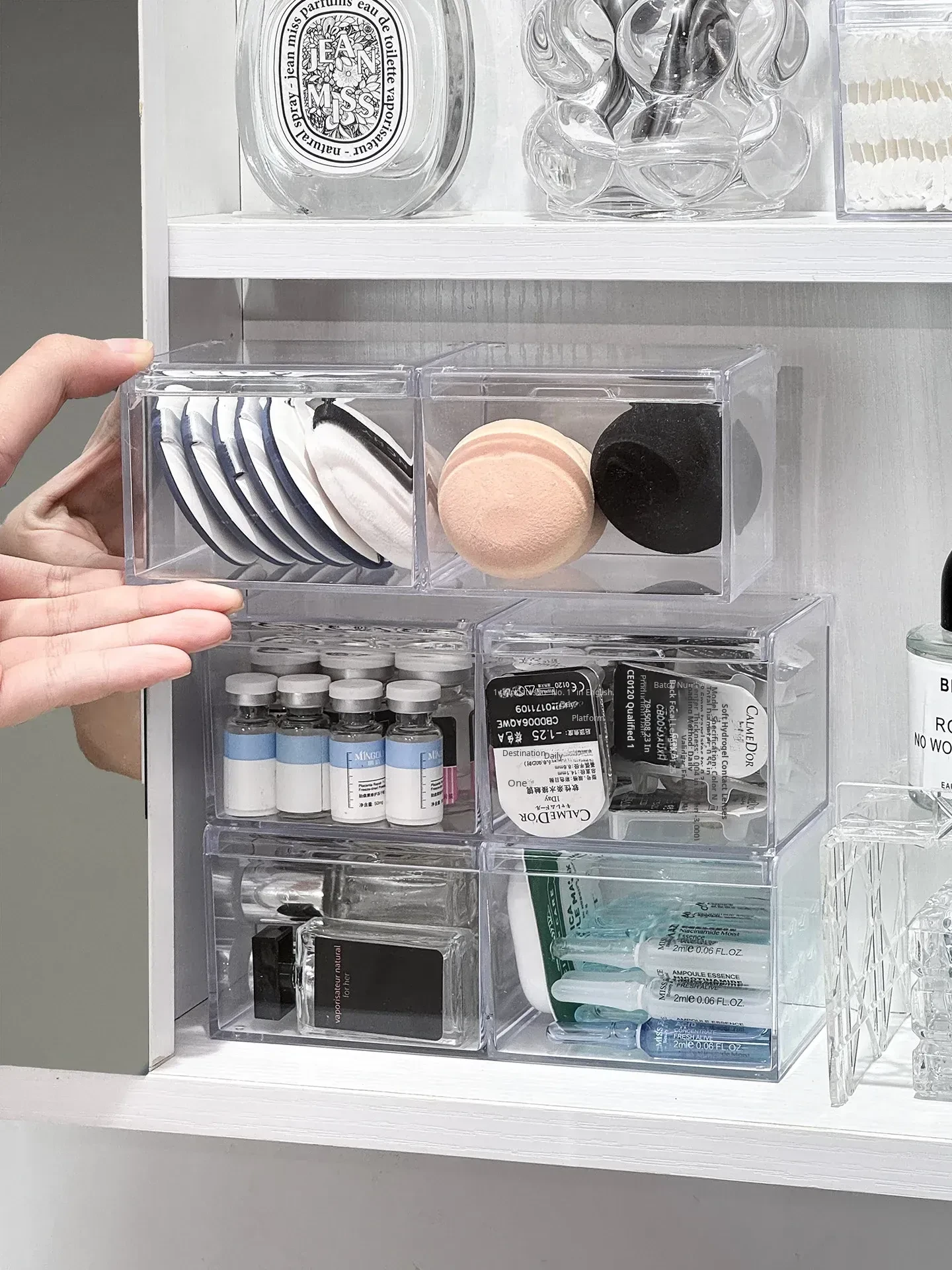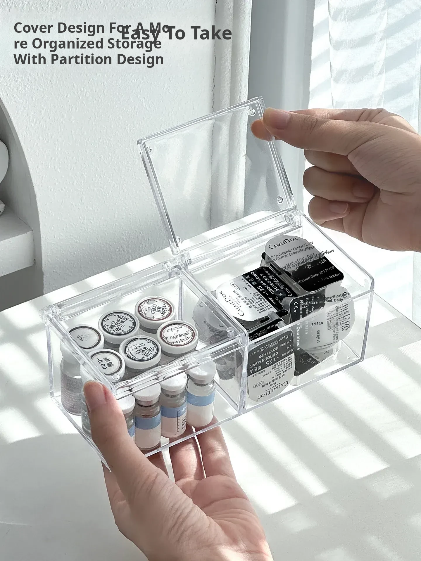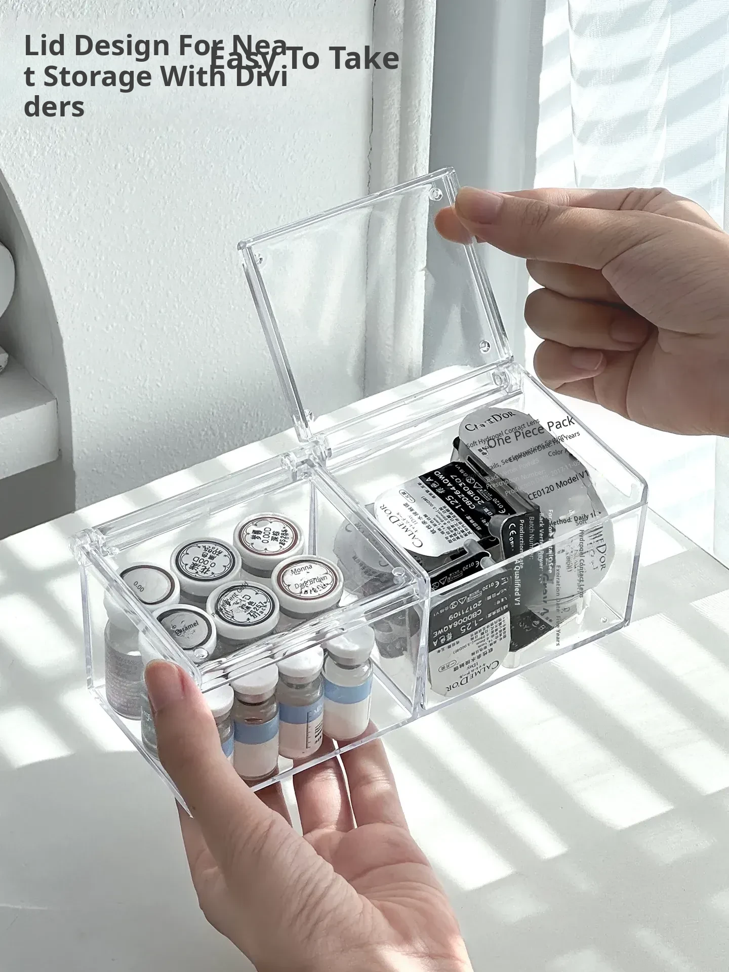 Transparent Dustproof Mirror Cabinet Organizer - Essential Travel Size Storage for Samples, Cosmetics, and Daily Contacts - The Ultimate Makeup & Contact Lens Case for On-the-Go Beauty Lovers!