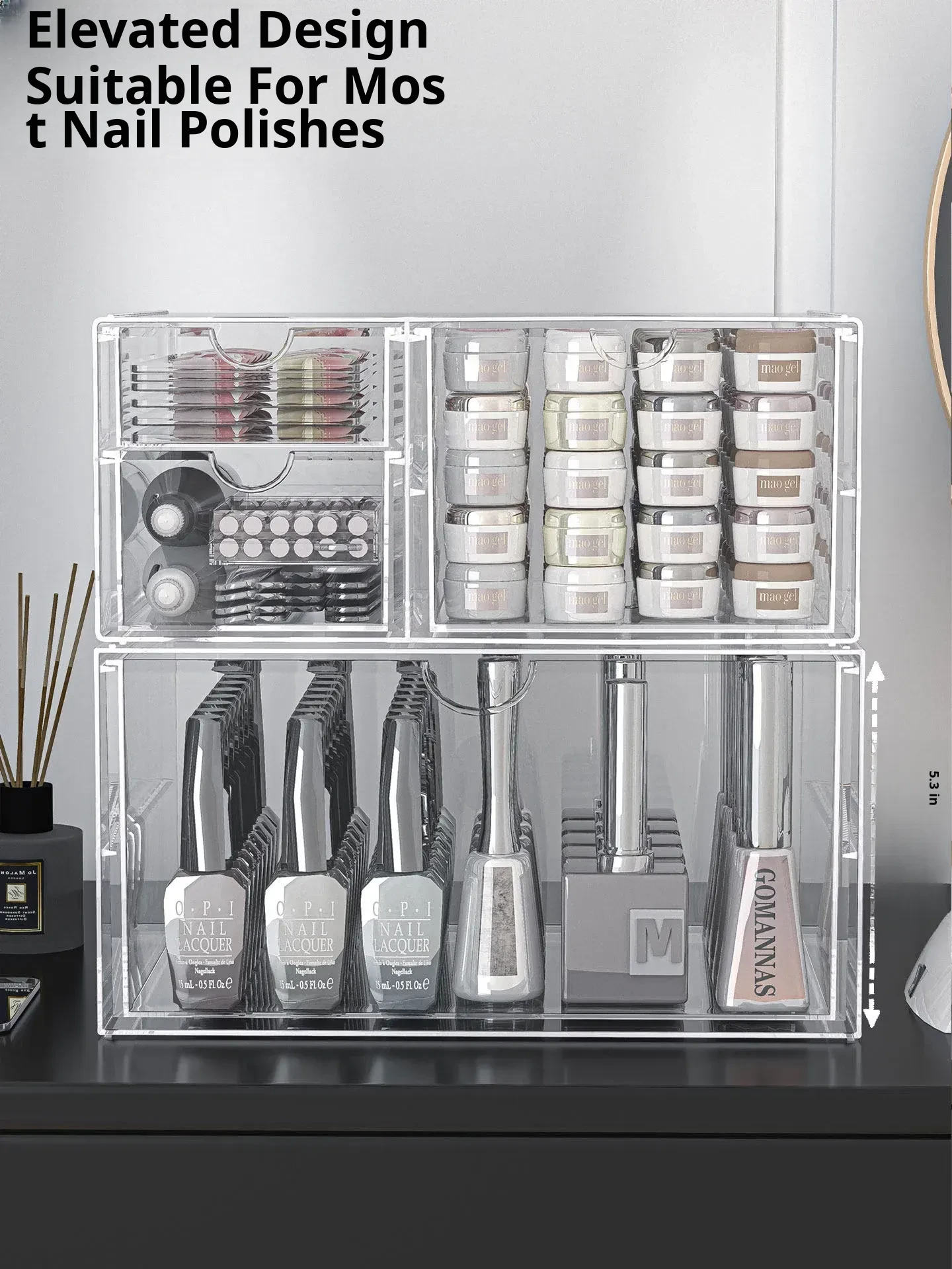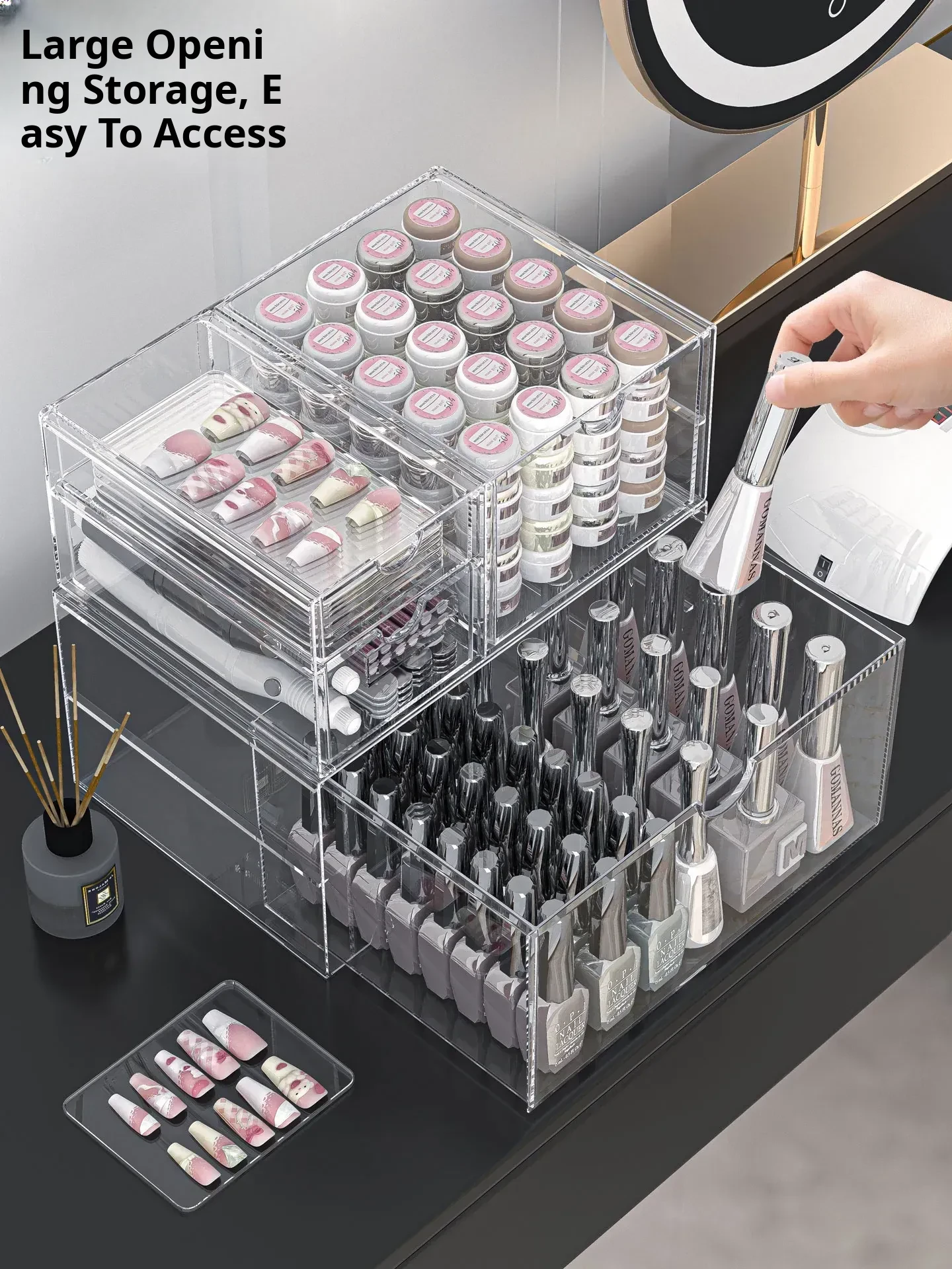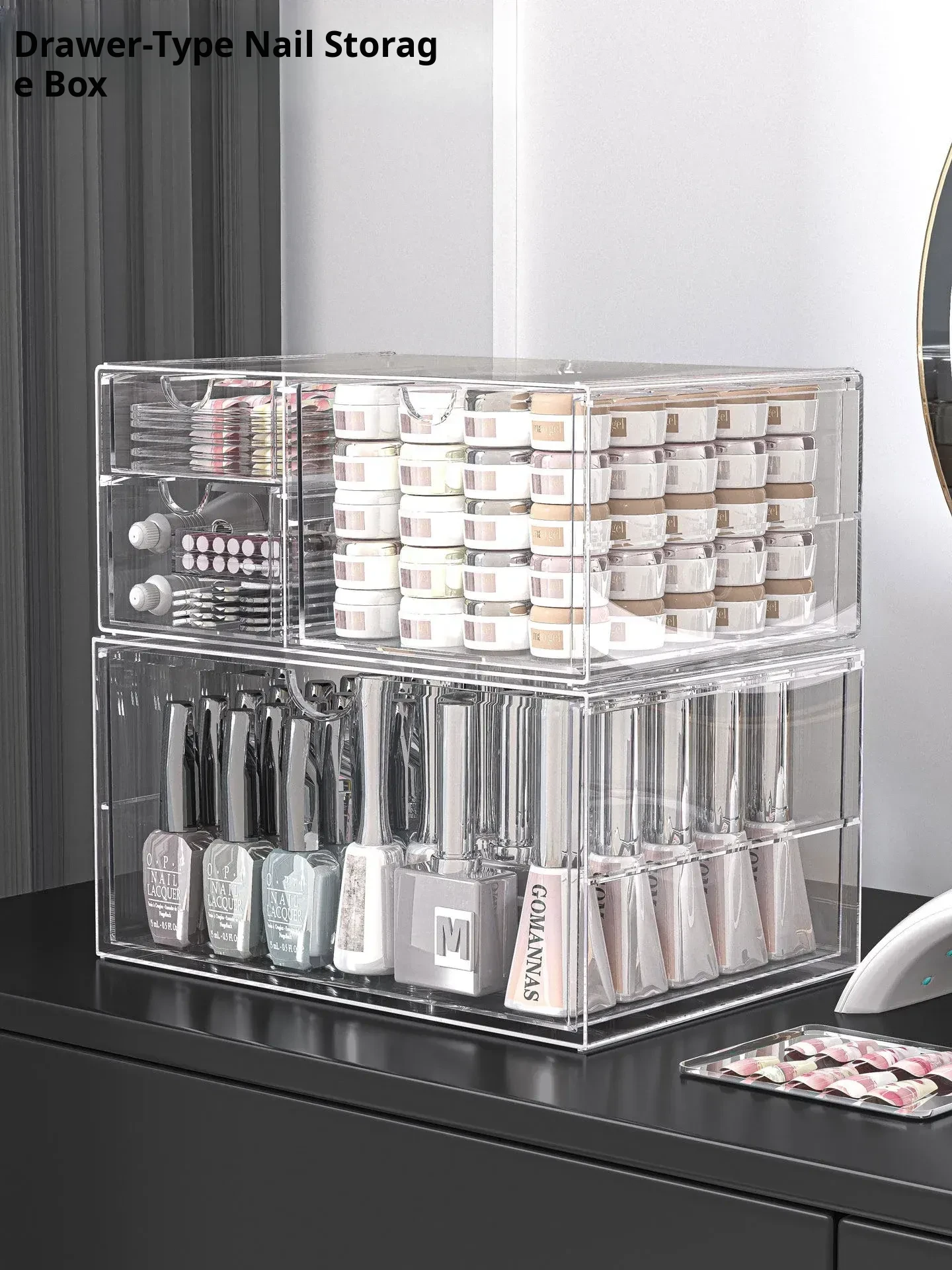 Transparent Nail Polish Organizer Box - Desktop Nail Art Toolbox with Drawers for Home Use, Perfect for Gel Polish and Nail Accessories Storage