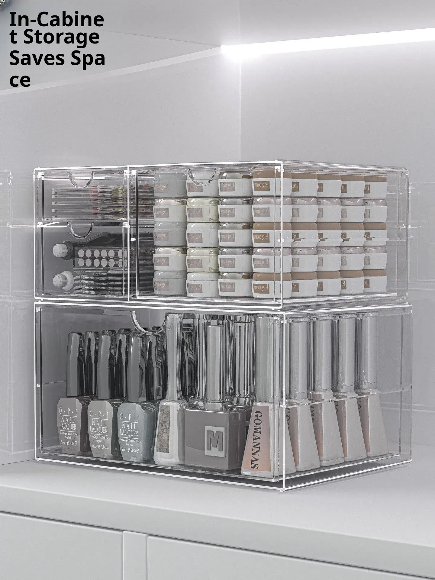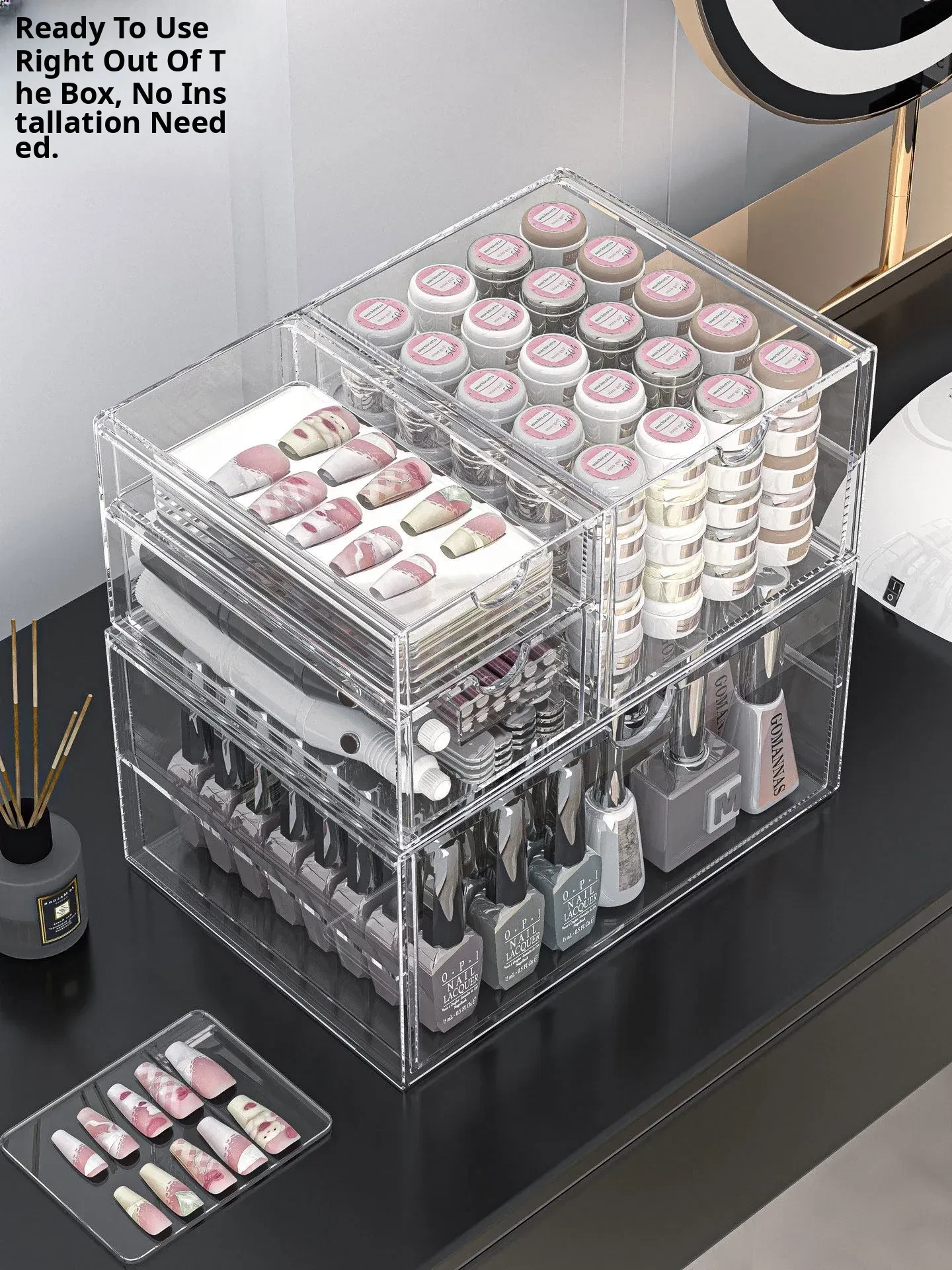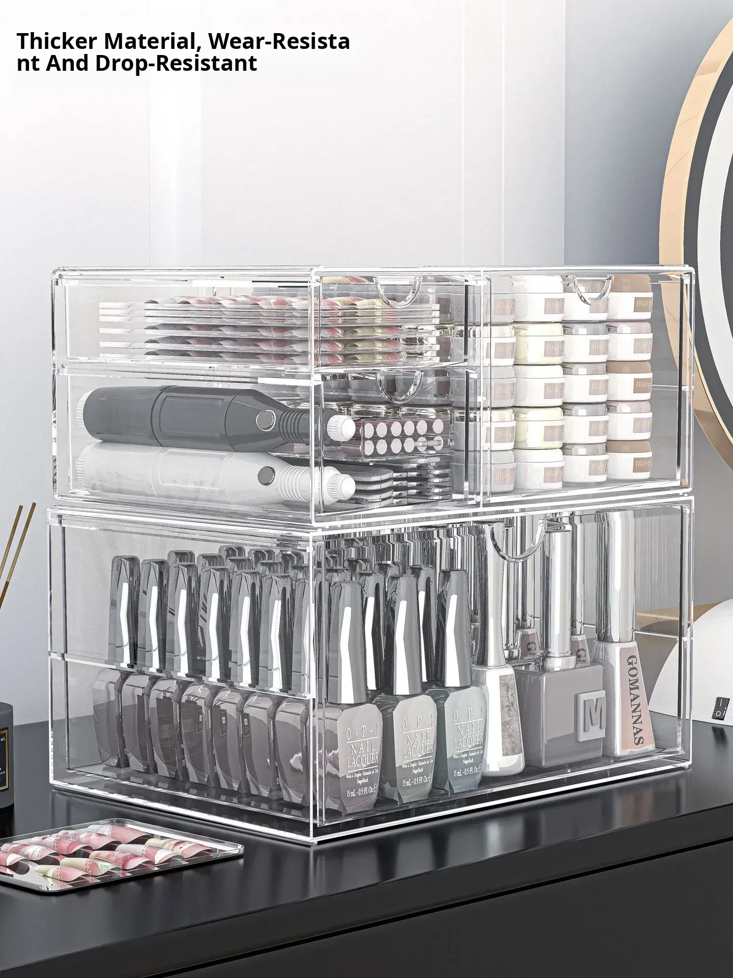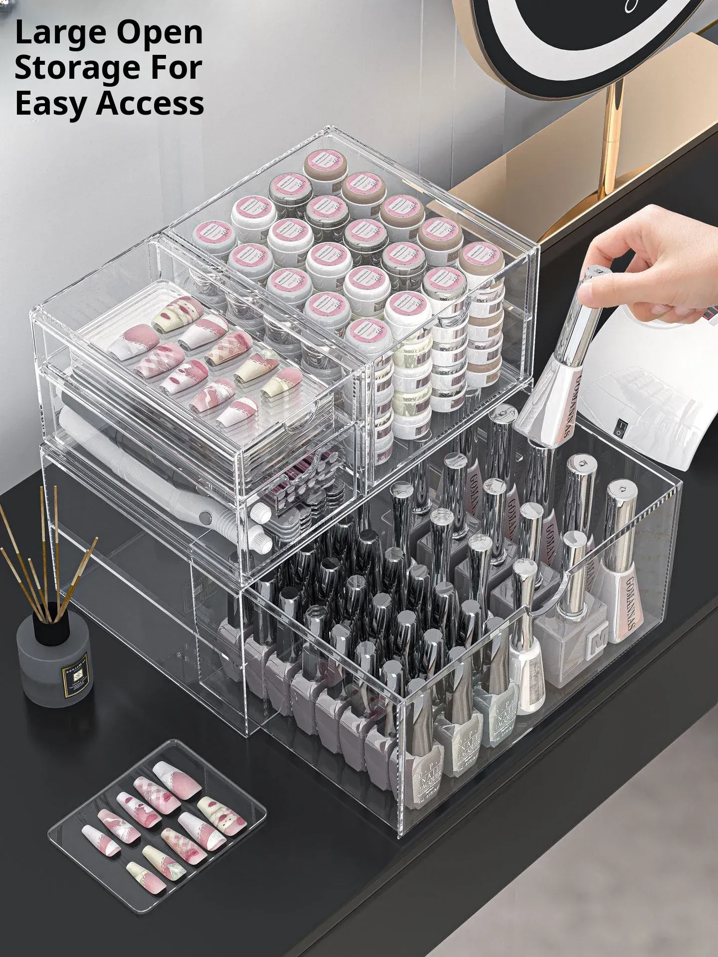 Transparent Nail Polish Organizer Box - Desktop Nail Art Toolbox with Drawers for Home Use, Perfect for Gel Polish and Nail Accessories Storage