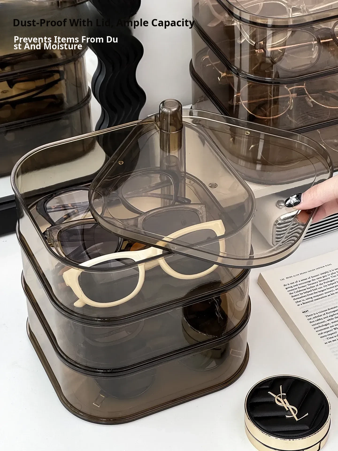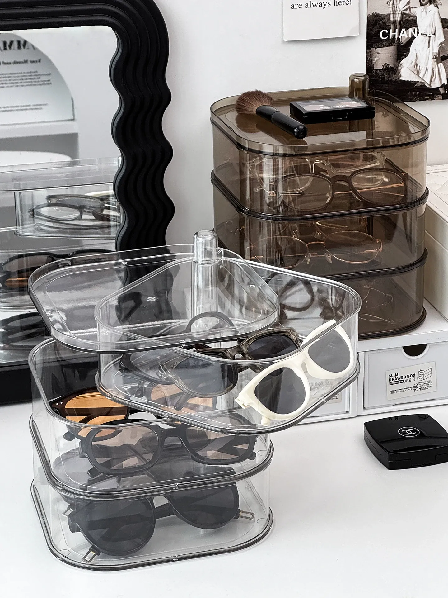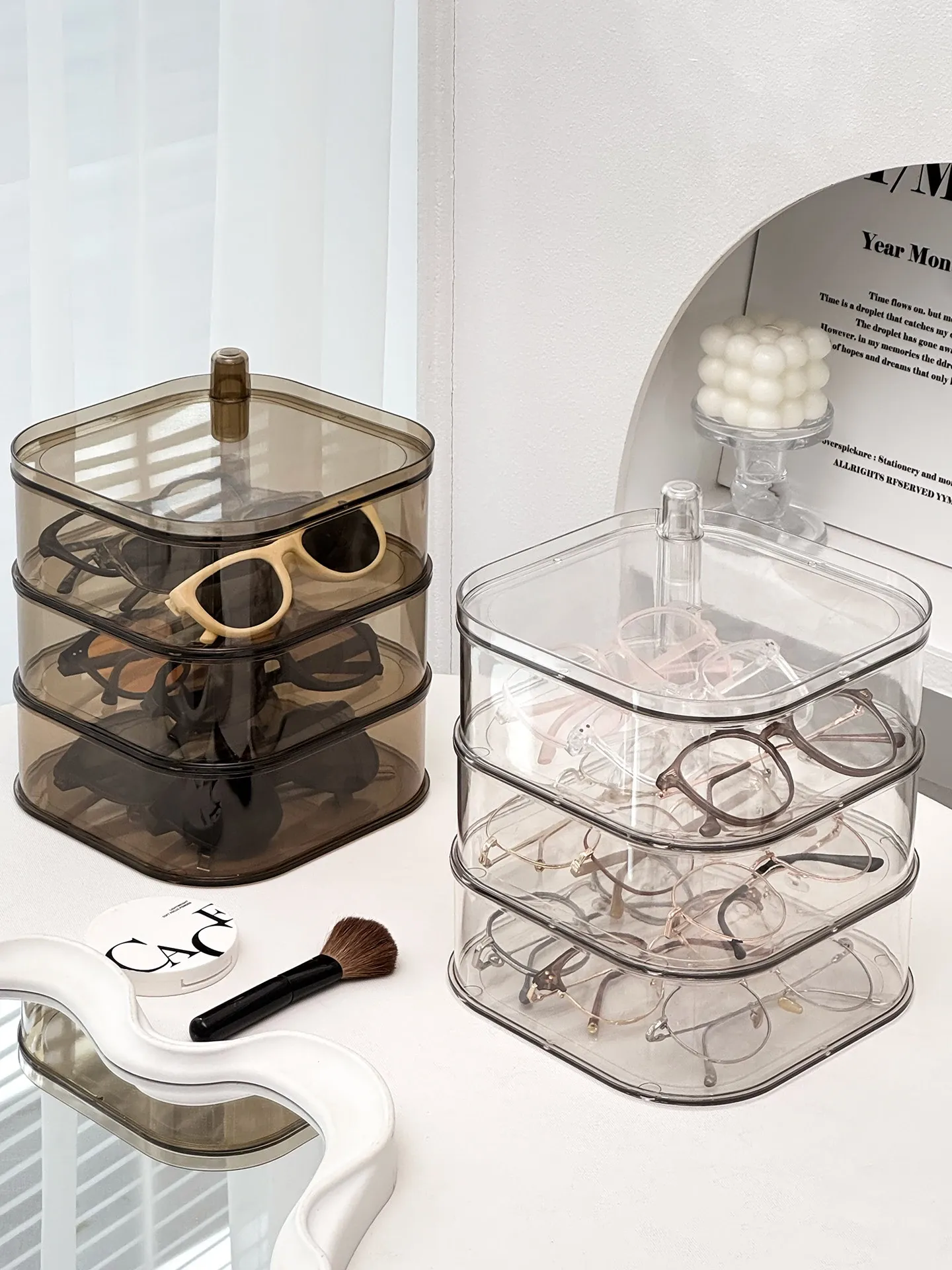 Transparent Sunglasses Storage Box - Multi-Compartment Display Rack for Home, Rotatable Organizer for Daily Disposable Contact Lenses and Sunglasses - The Ultimate Solution for Neat and Stylish Eyewear Storage!