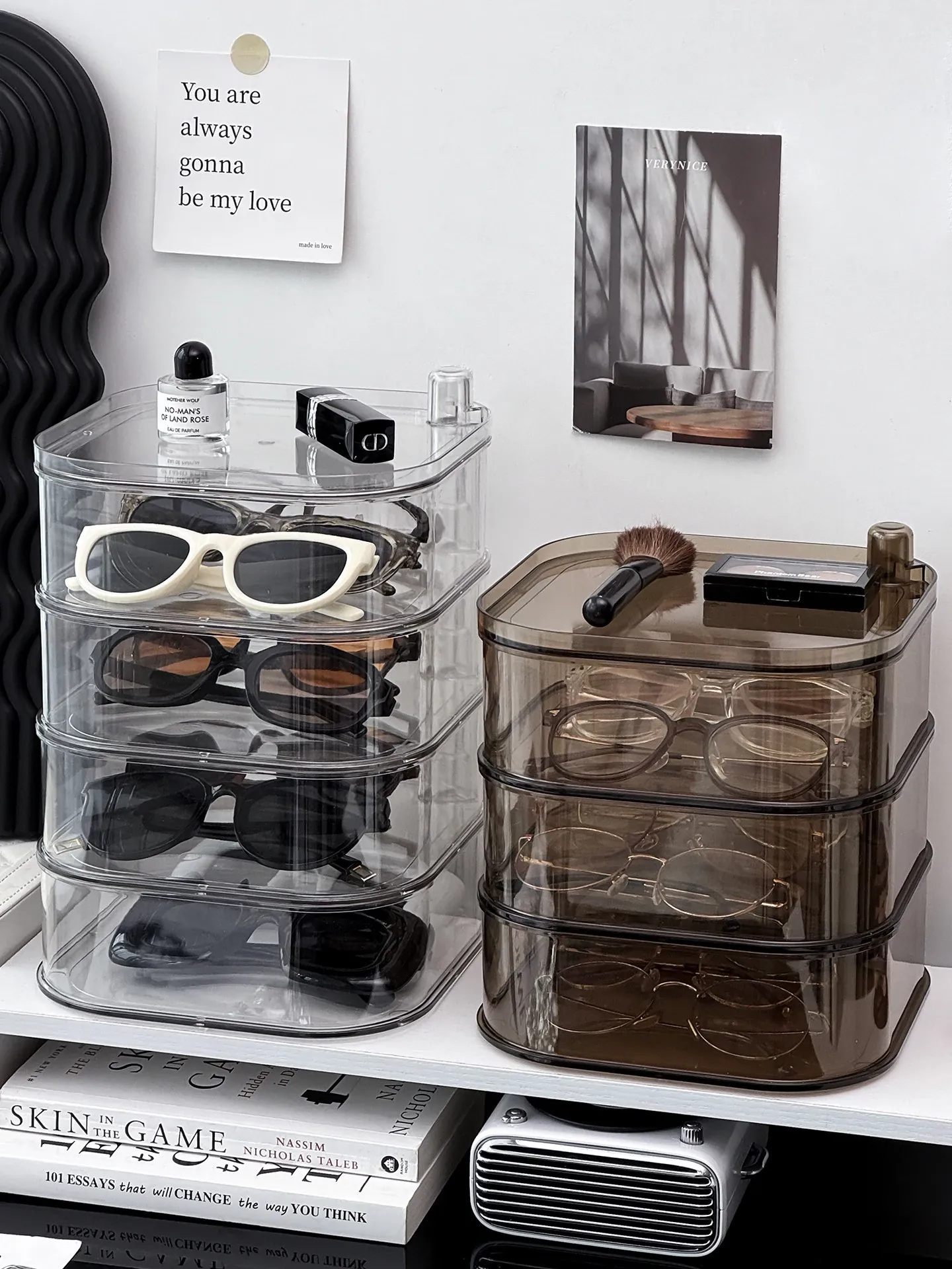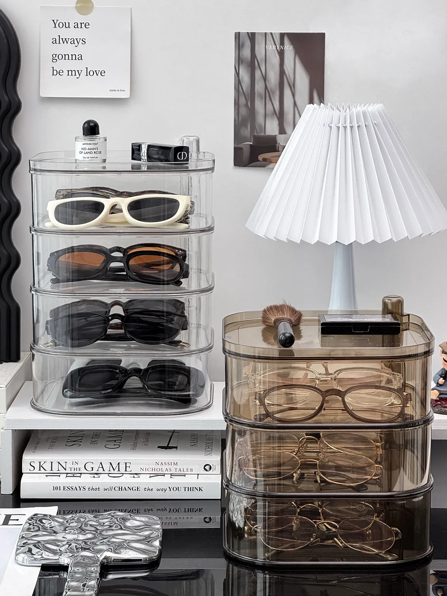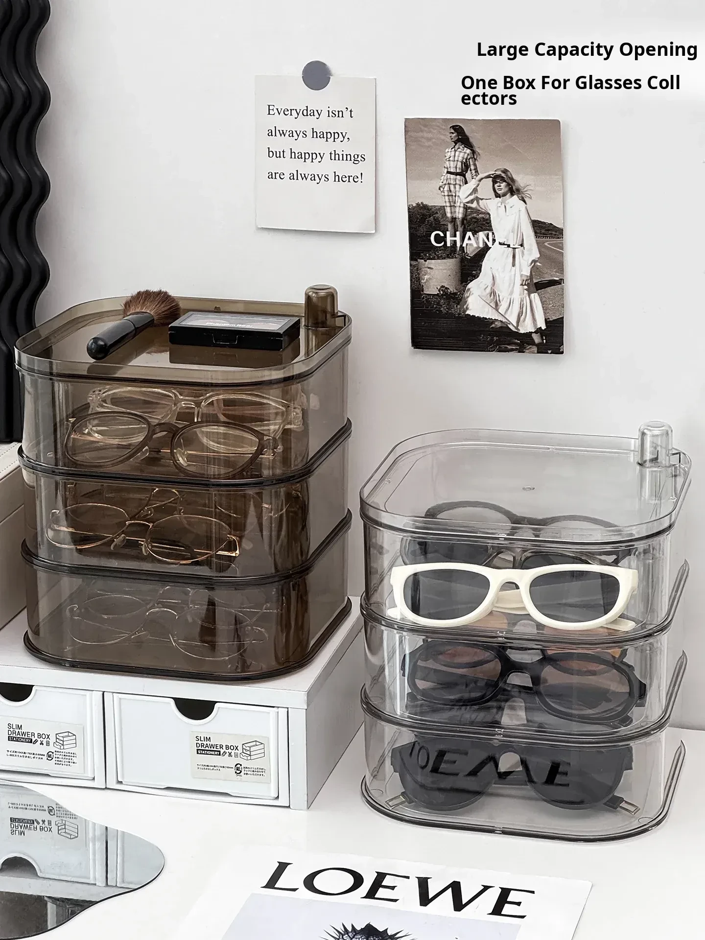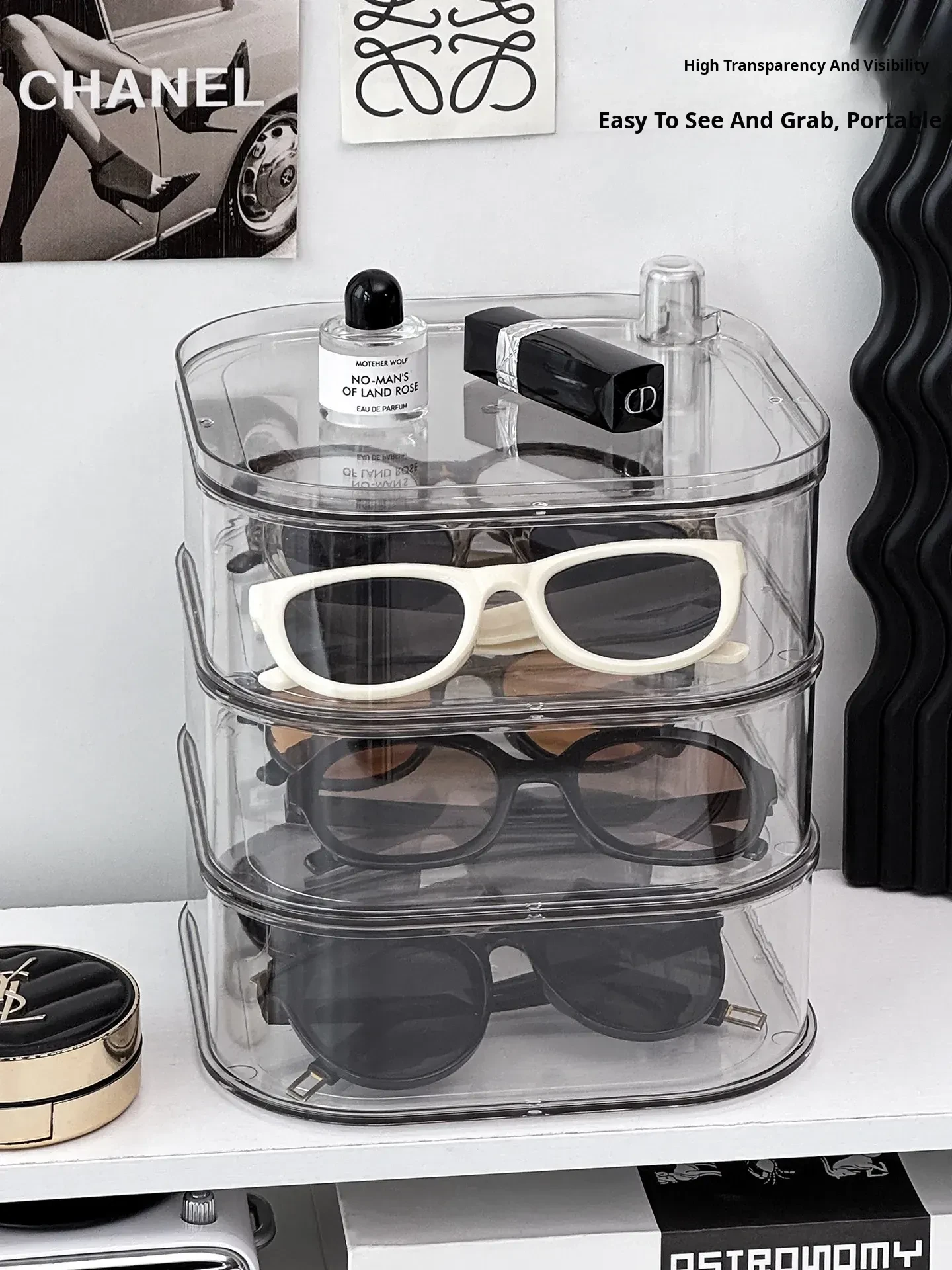 Transparent Sunglasses Storage Box - Multi-Compartment Display Rack for Home, Rotatable Organizer for Daily Disposable Contact Lenses and Sunglasses - The Ultimate Solution for Neat and Stylish Eyewear Storage!