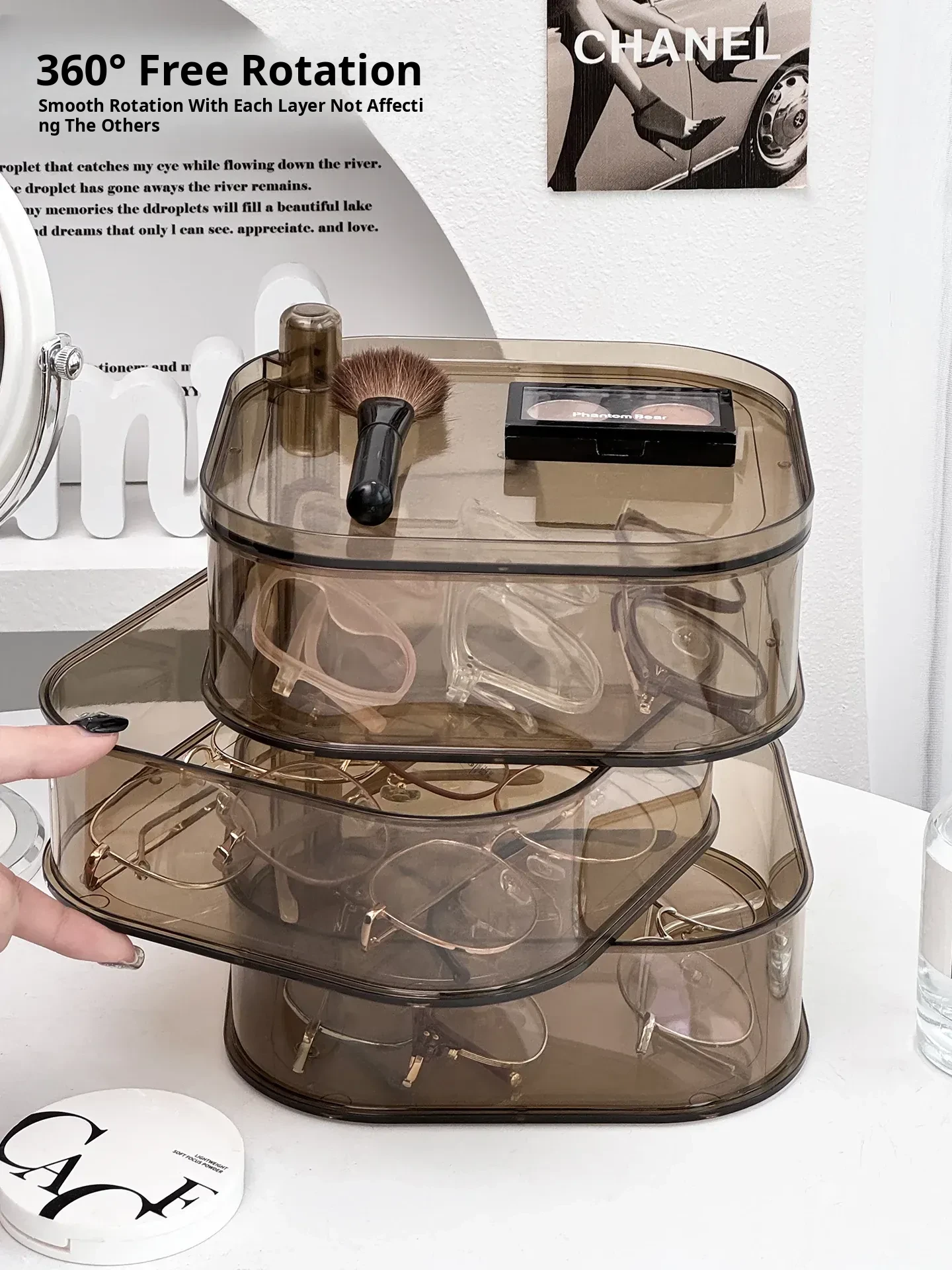 [Brown Three-Layer/Rotatable/Stackable] Glasses Storage Box-Sf7703-3