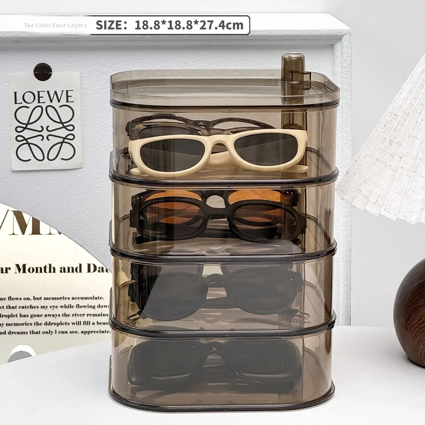 [Brown Four-Layer/Rotatable/Stackable] Glasses Storage Box-Sf7703-4