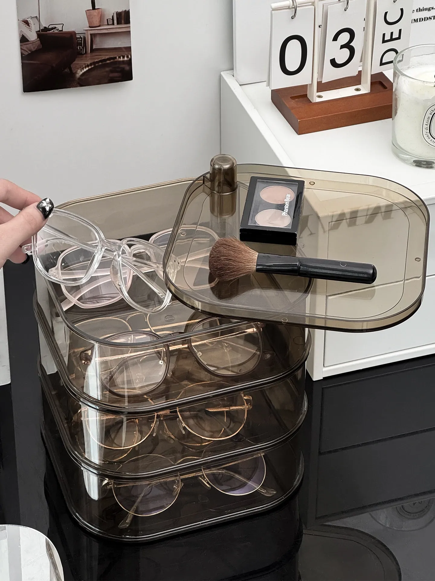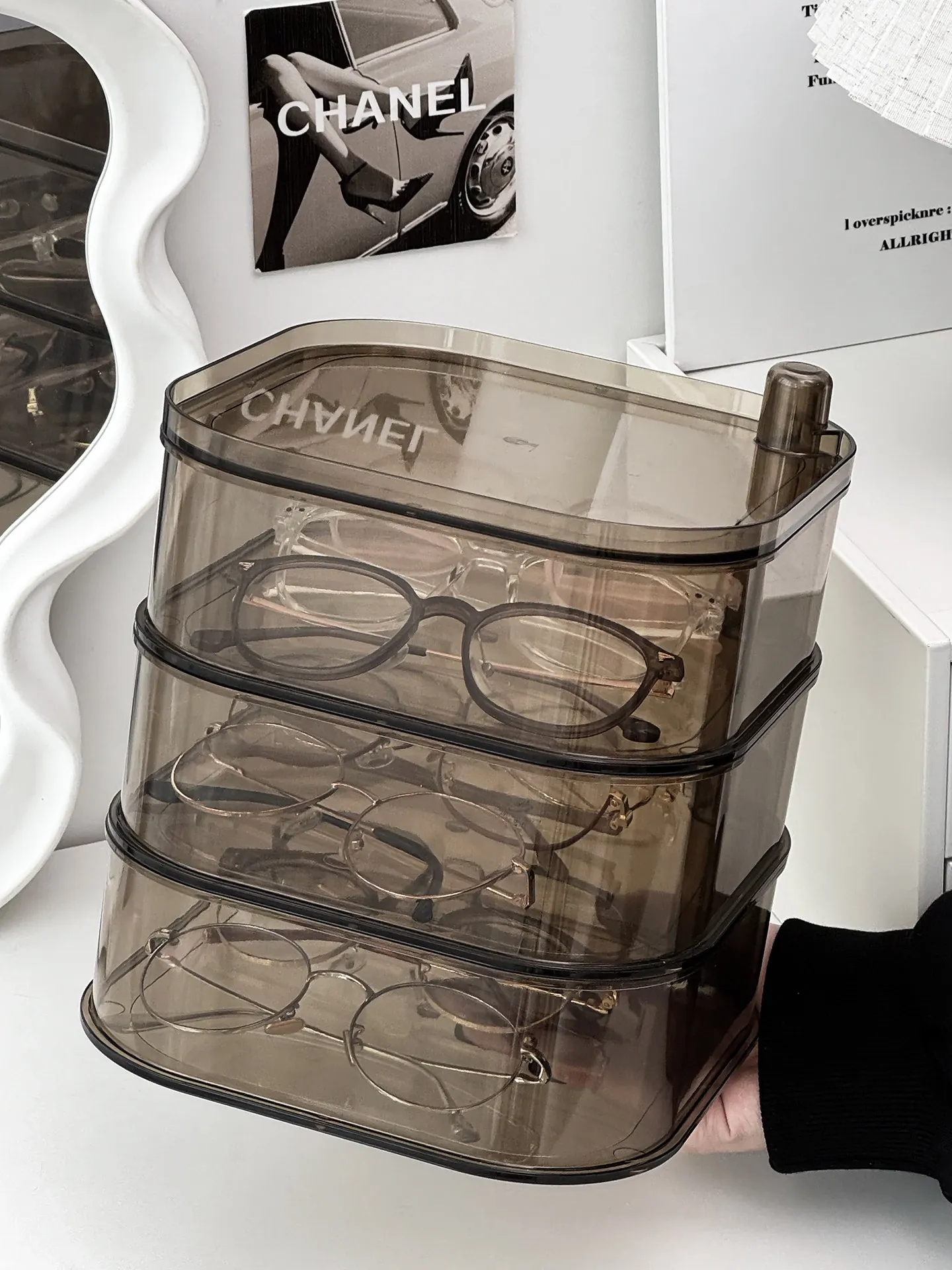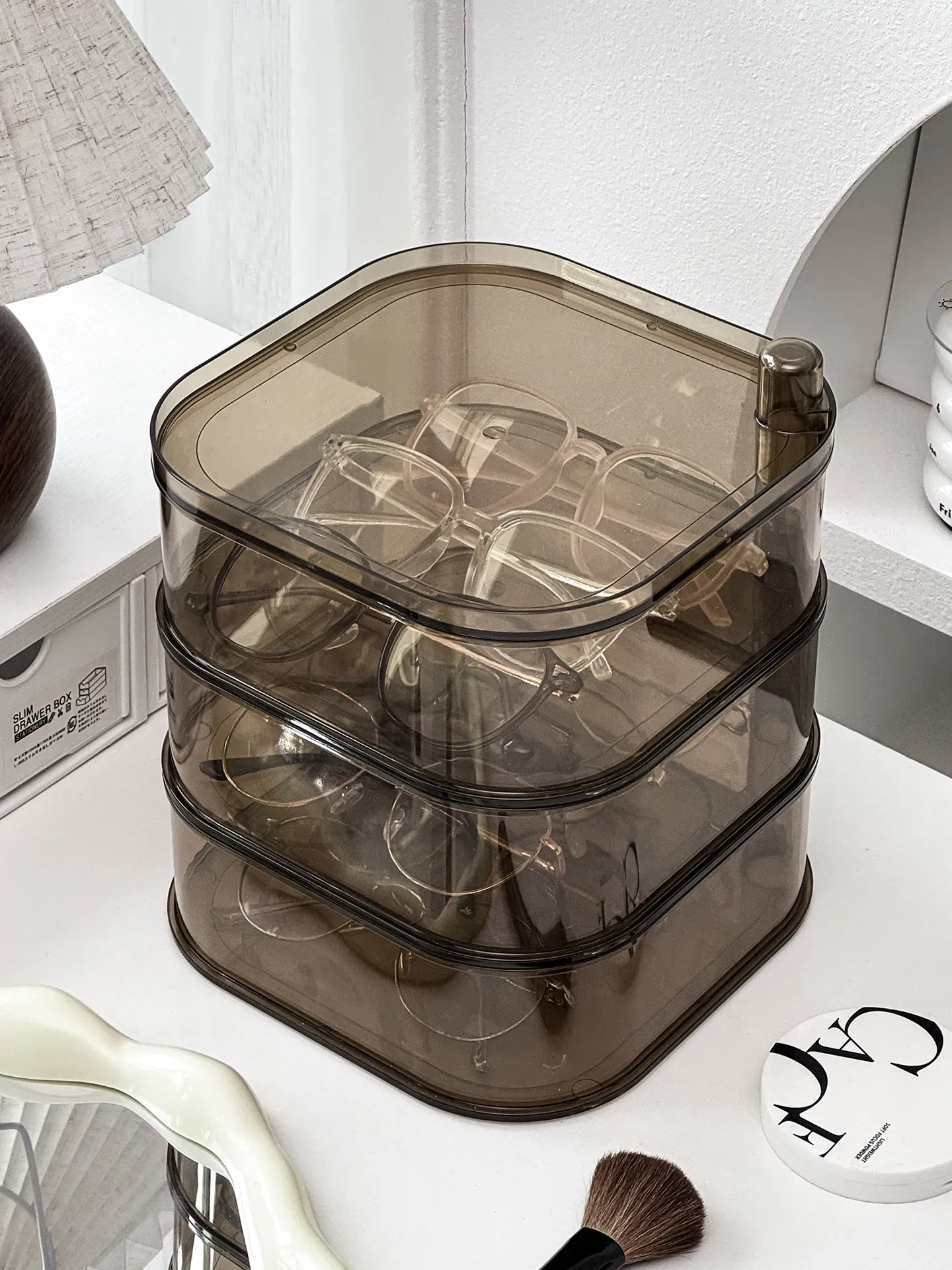 [Transparent Three-Layer/Rotatable/Stackable] Glasses Storage Box-Sf7701-3