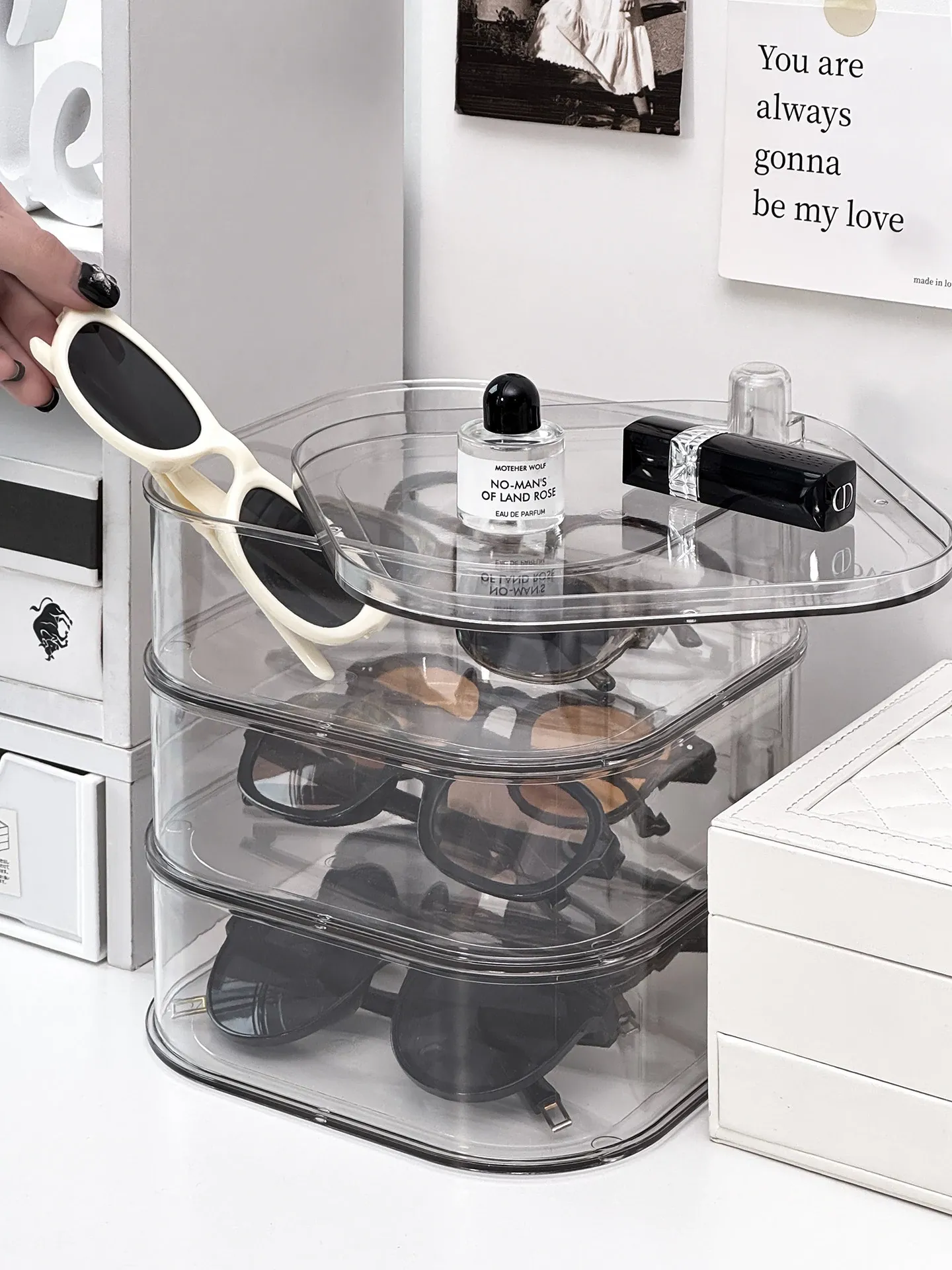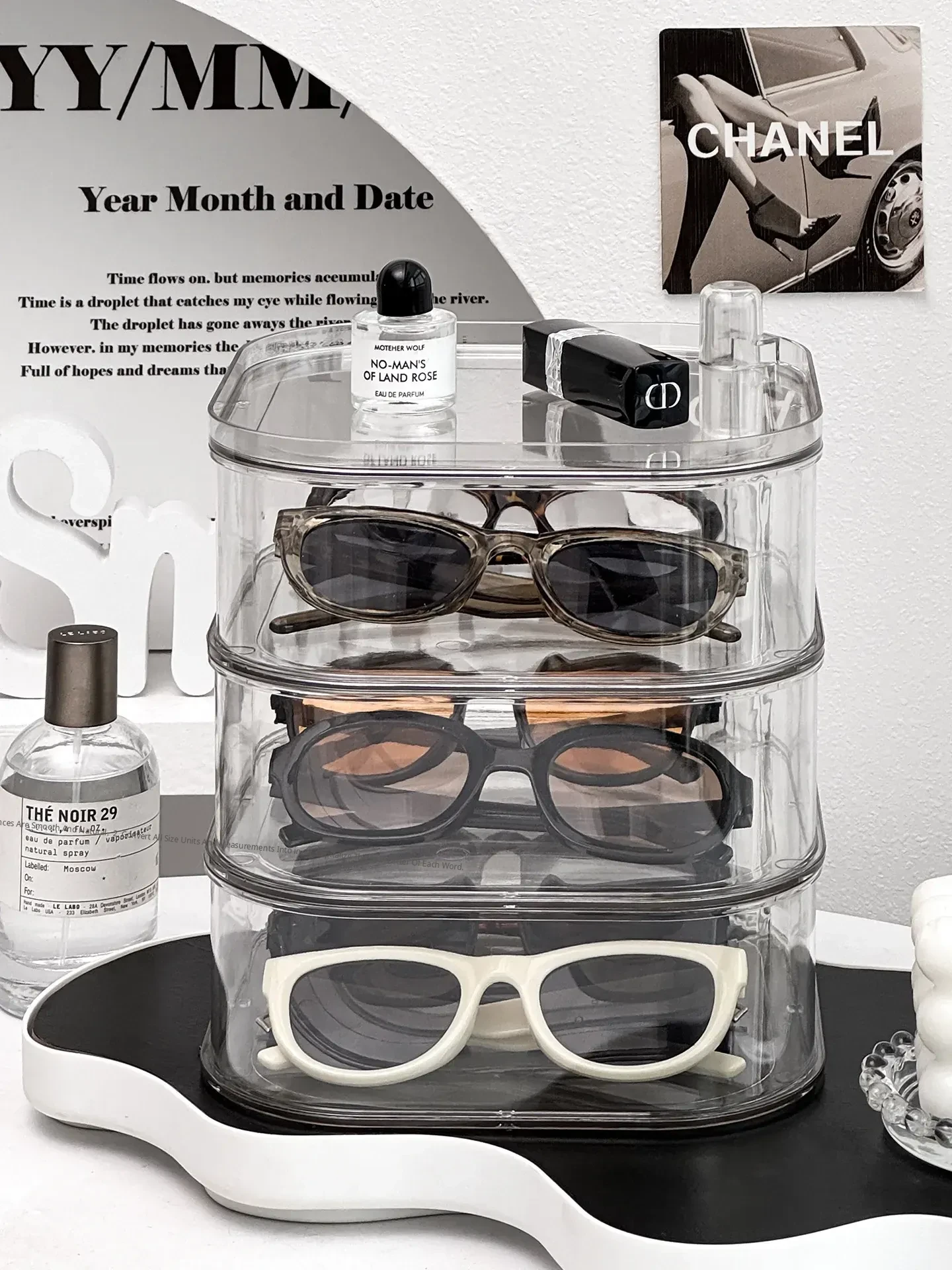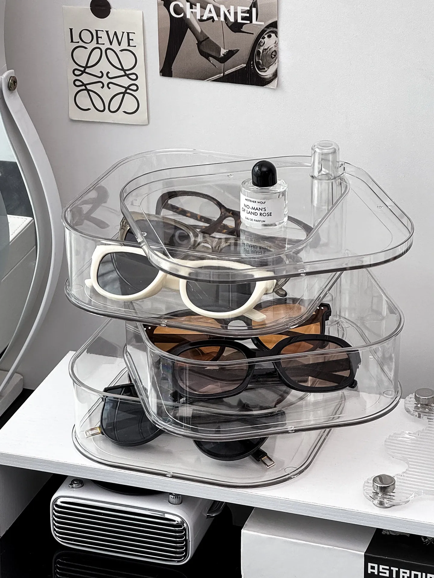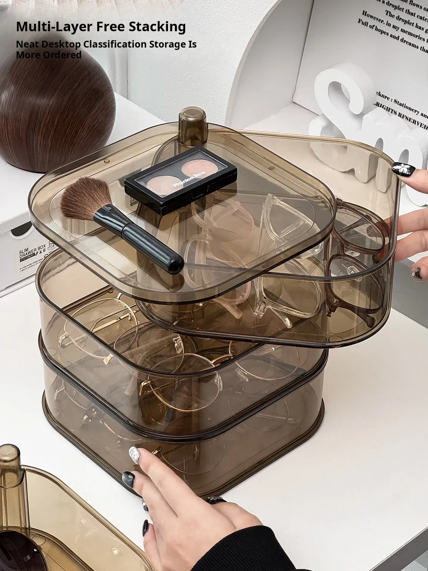 [Transparent Three-Layer/Rotatable/Stackable] Glasses Storage Box-Sf7701-3