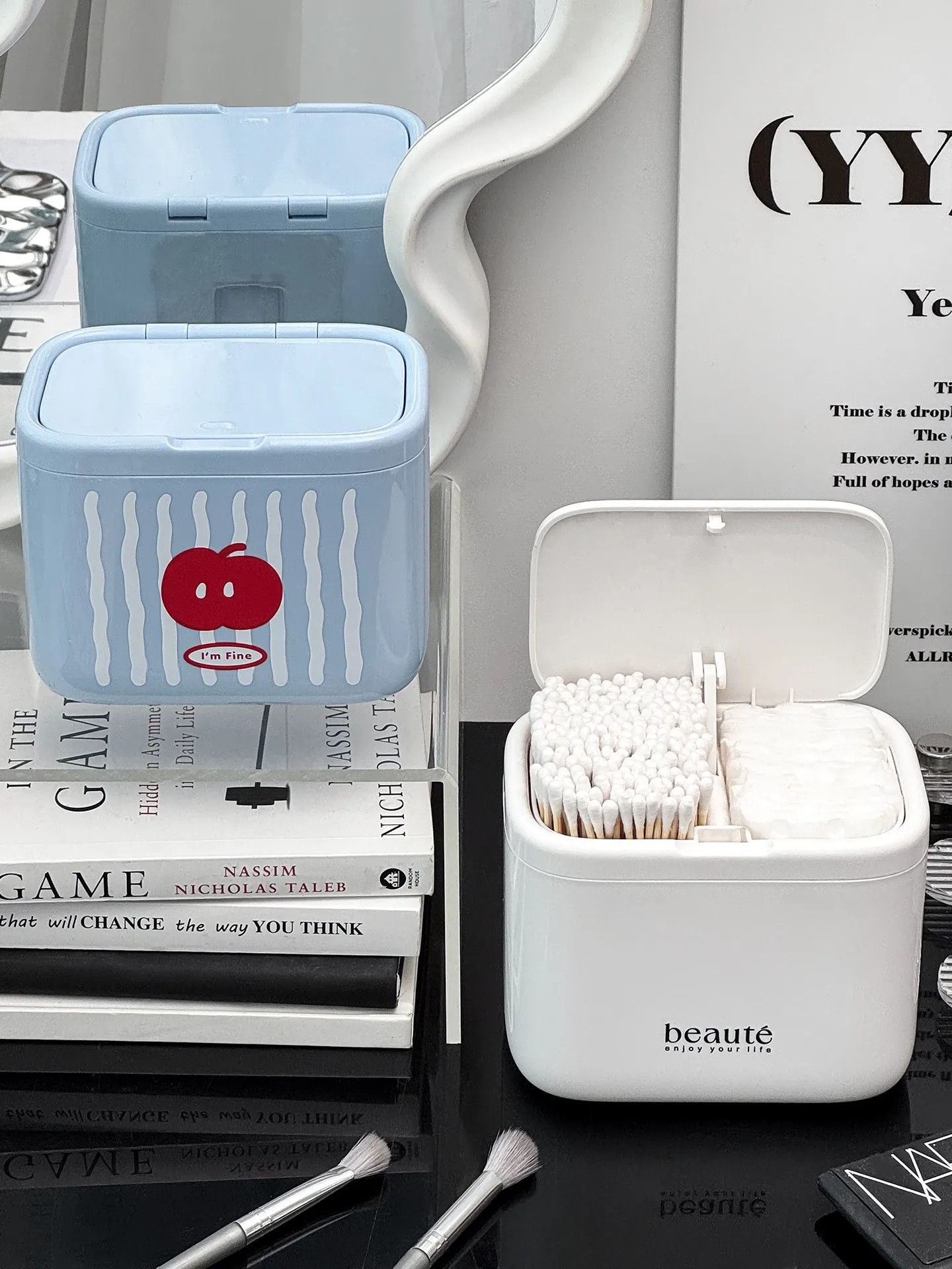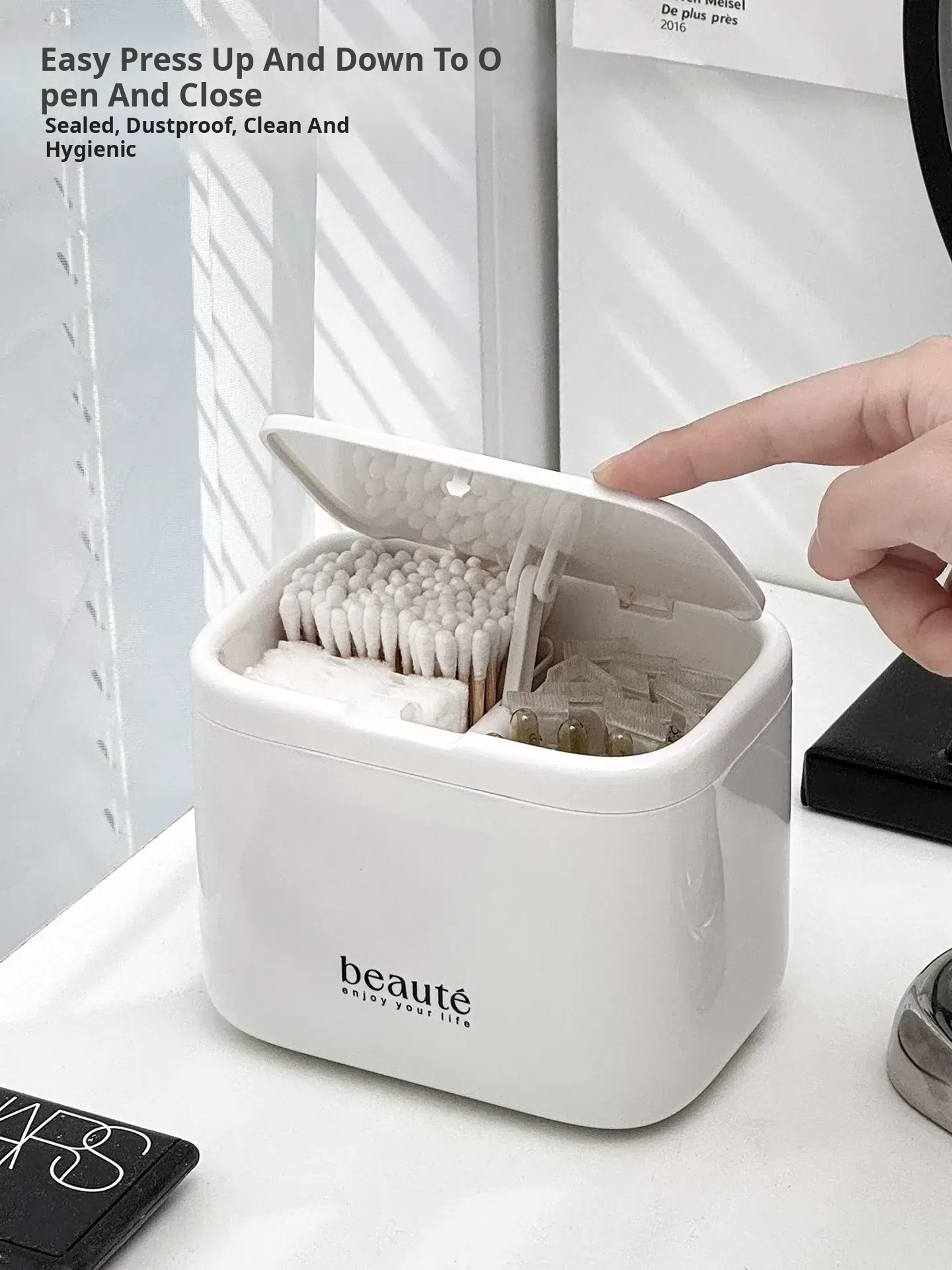 [White-Press Pop-Up Cover] Cotton Swab Storage Box-Wg-2768