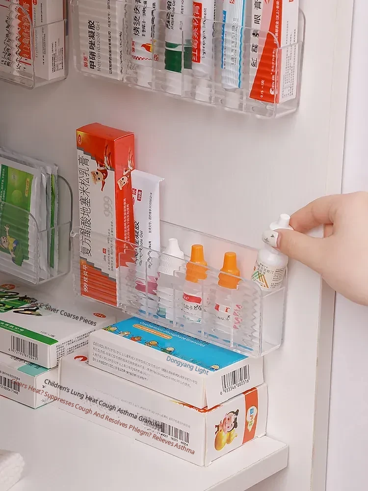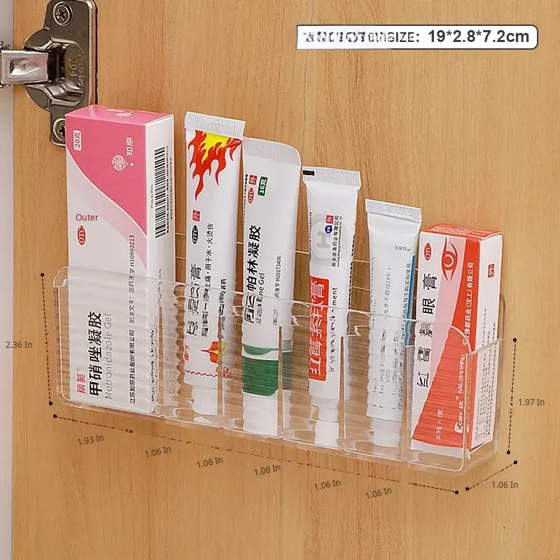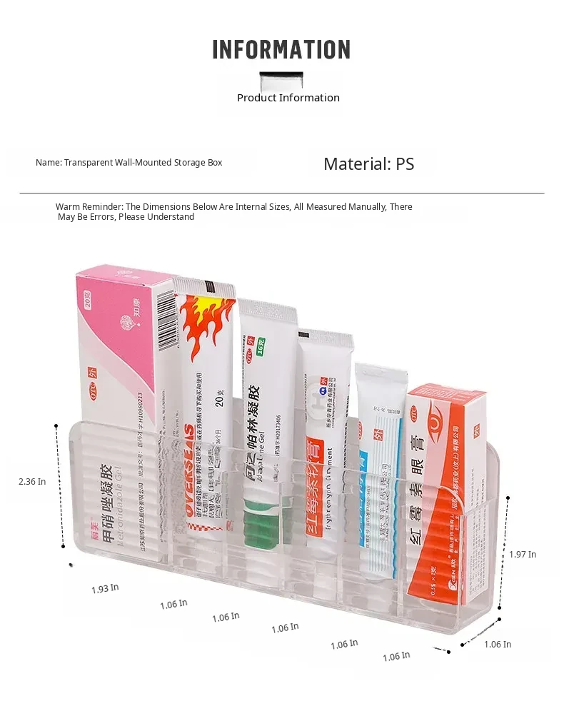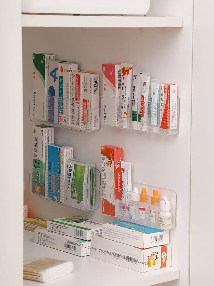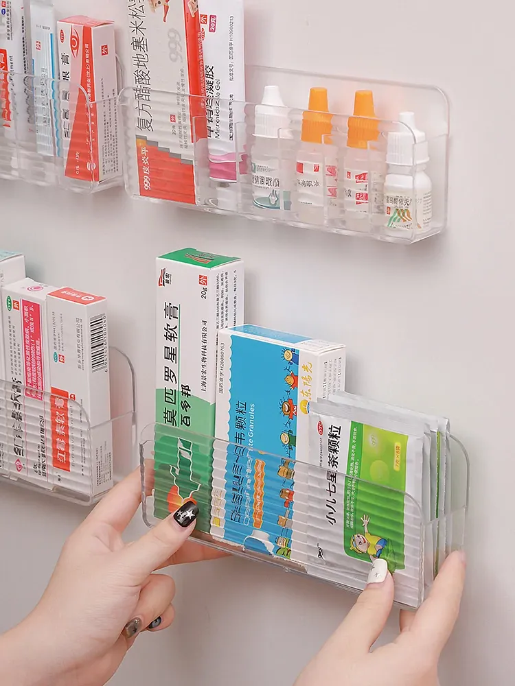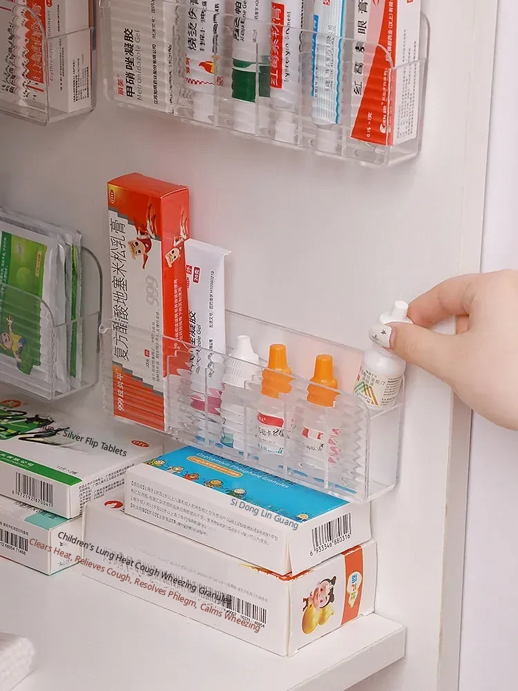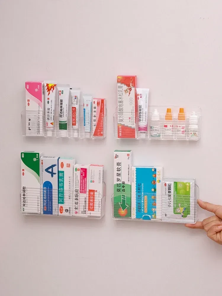 Wall-Mounted Medicine Organizer - No-Drill Shelving Unit for Creams and Eye Drops - Transparent Storage Rack for Home Use