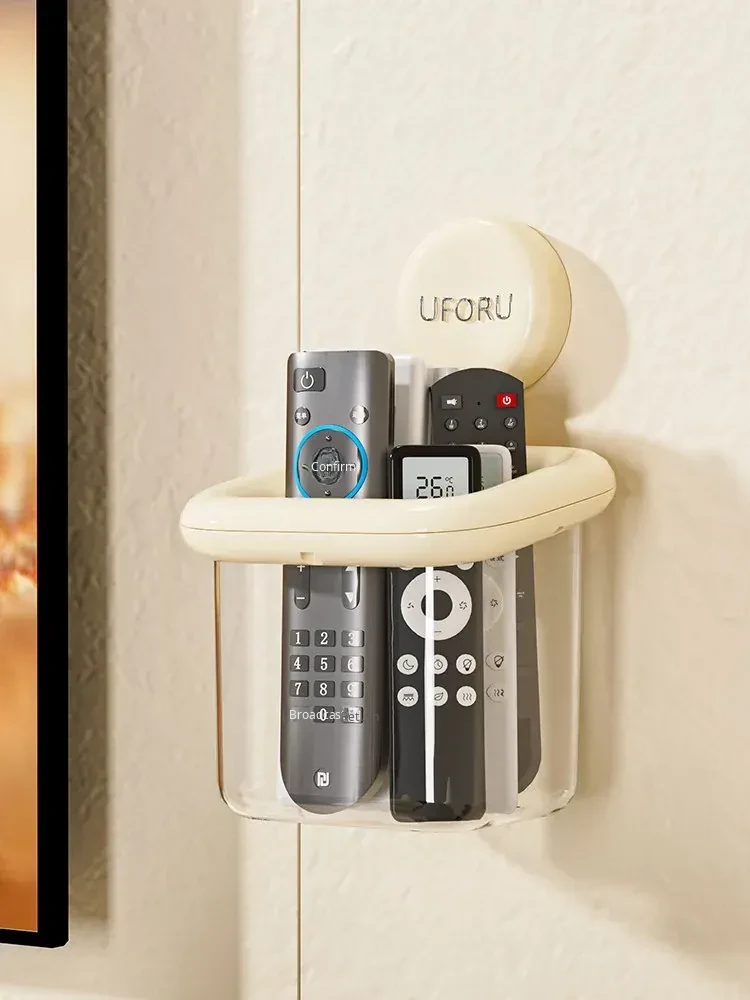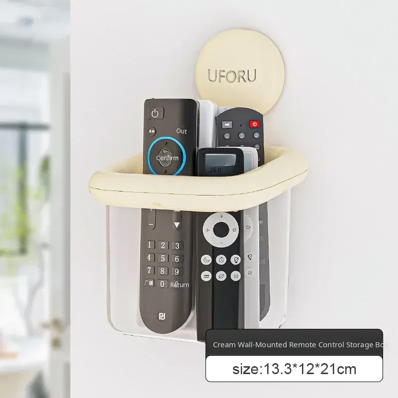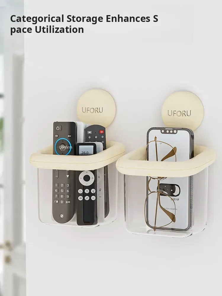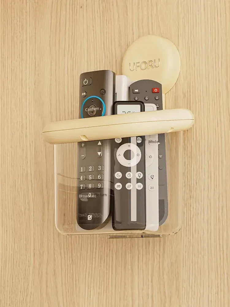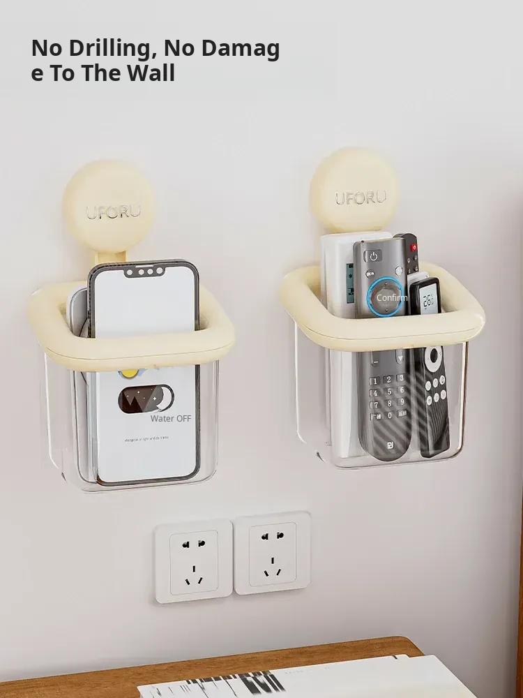 Wall-Mounted No-Drill Remote Control Storage Box for Air Conditioner, TV, and Fan - Convenient Charging Holder for Phones - Perfect Organizer for Living Room