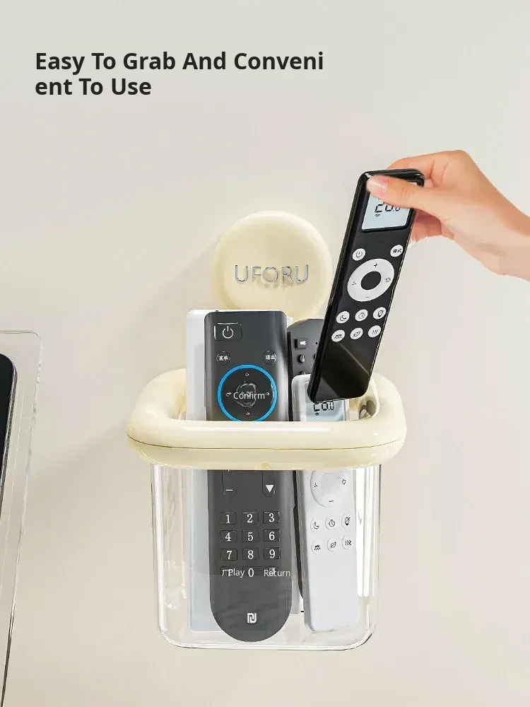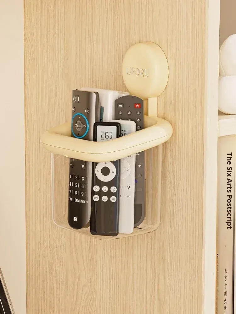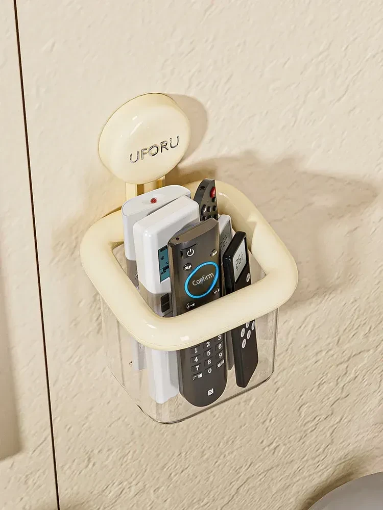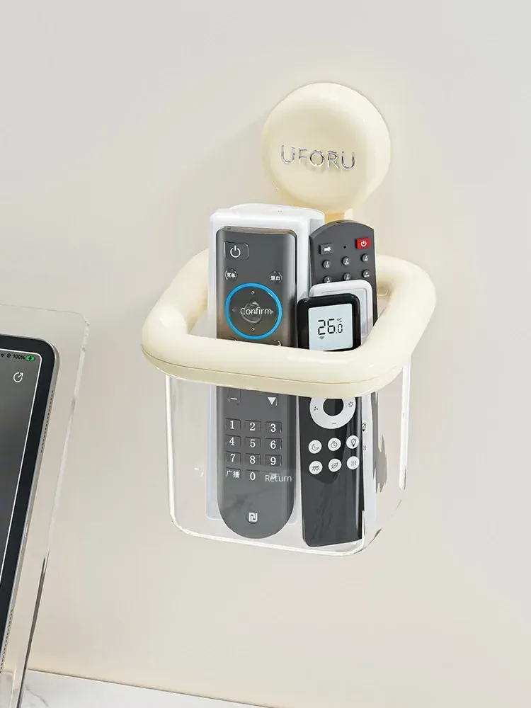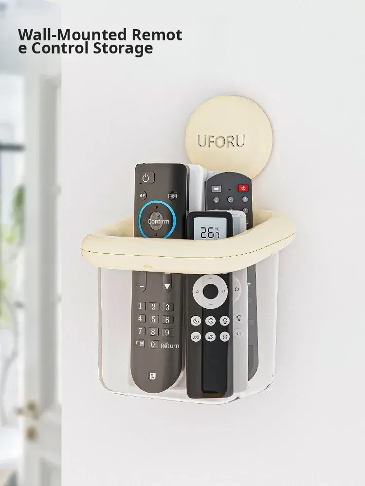 Wall-Mounted No-Drill Remote Control Storage Box for Air Conditioner, TV, and Fan - Convenient Charging Holder for Phones - Perfect Organizer for Living Room