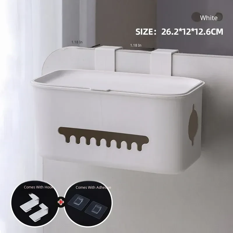 [Hook/Adhesive Dual-Purpose] White Wall-Mounted Storage Box-Sf-2037