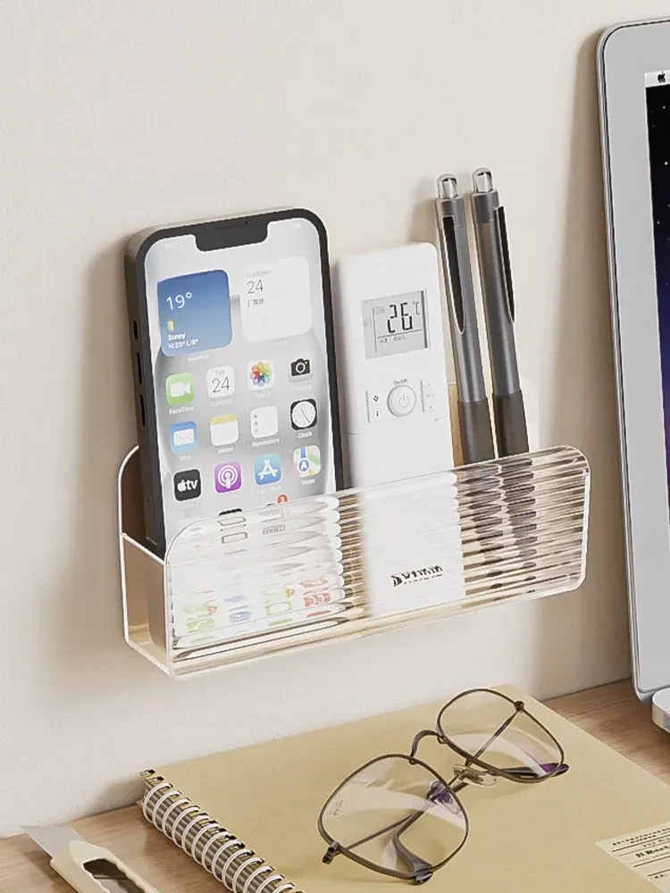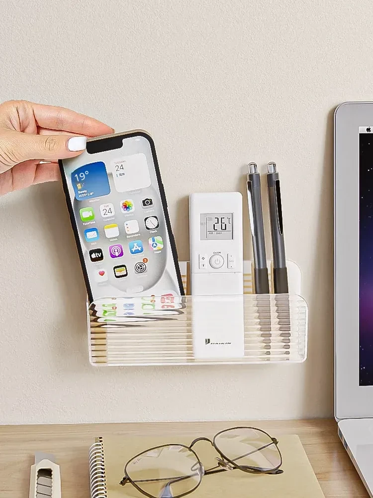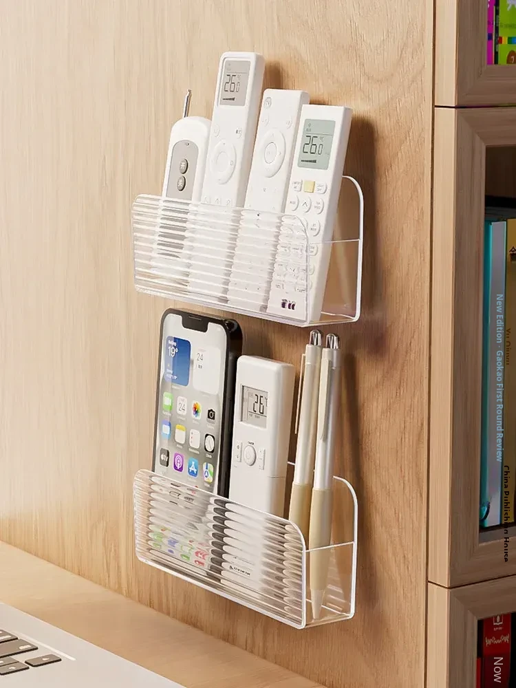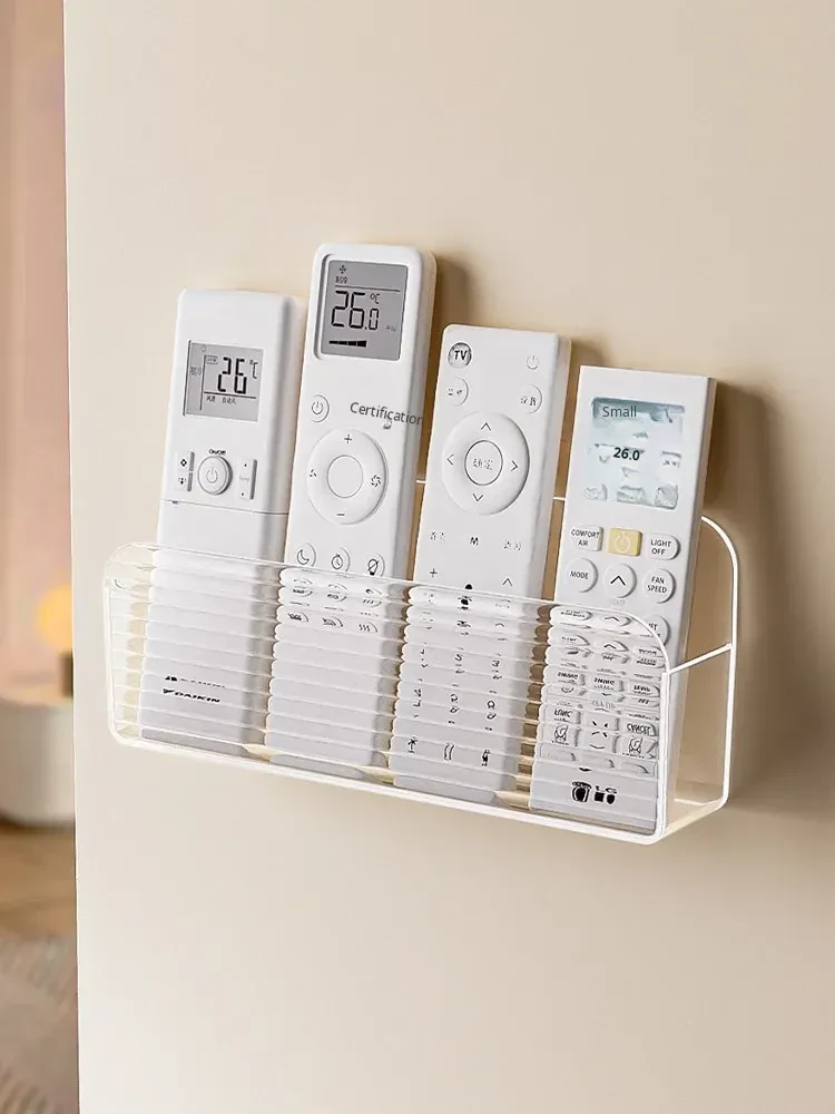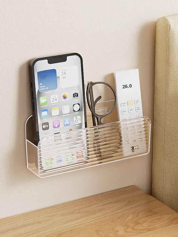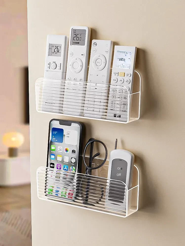 Wall-Mounted Remote Control Storage Box for Air Conditioner and TV - No Drilling Required, Perfect for Organizing Phones and Essentials by Your Bedside