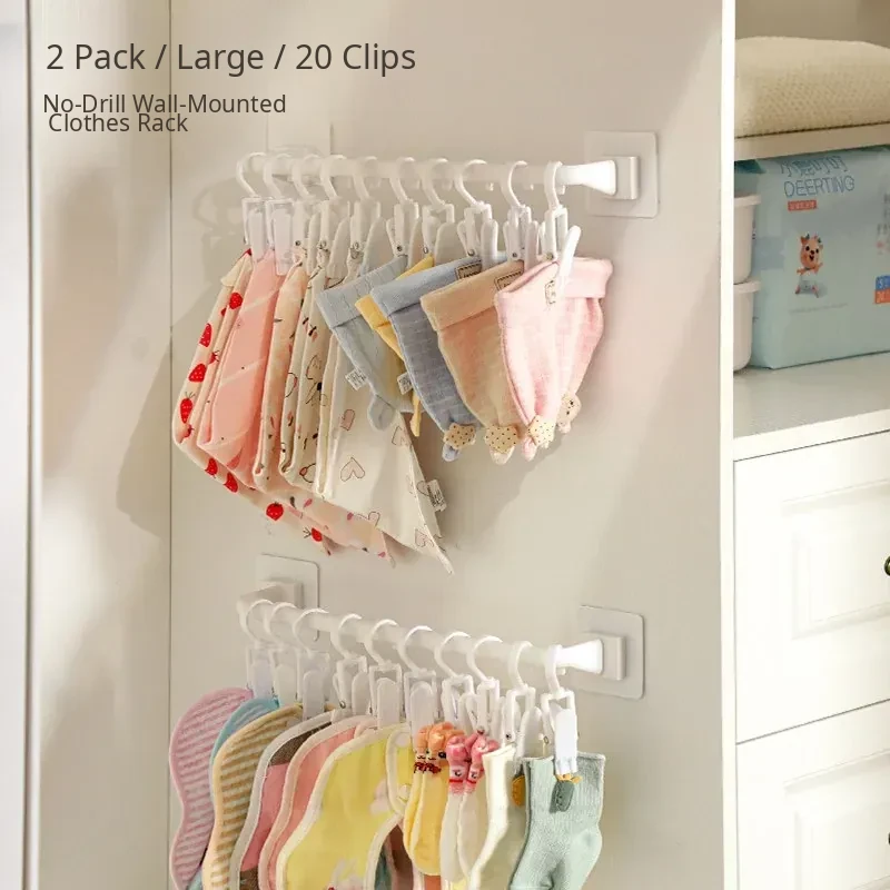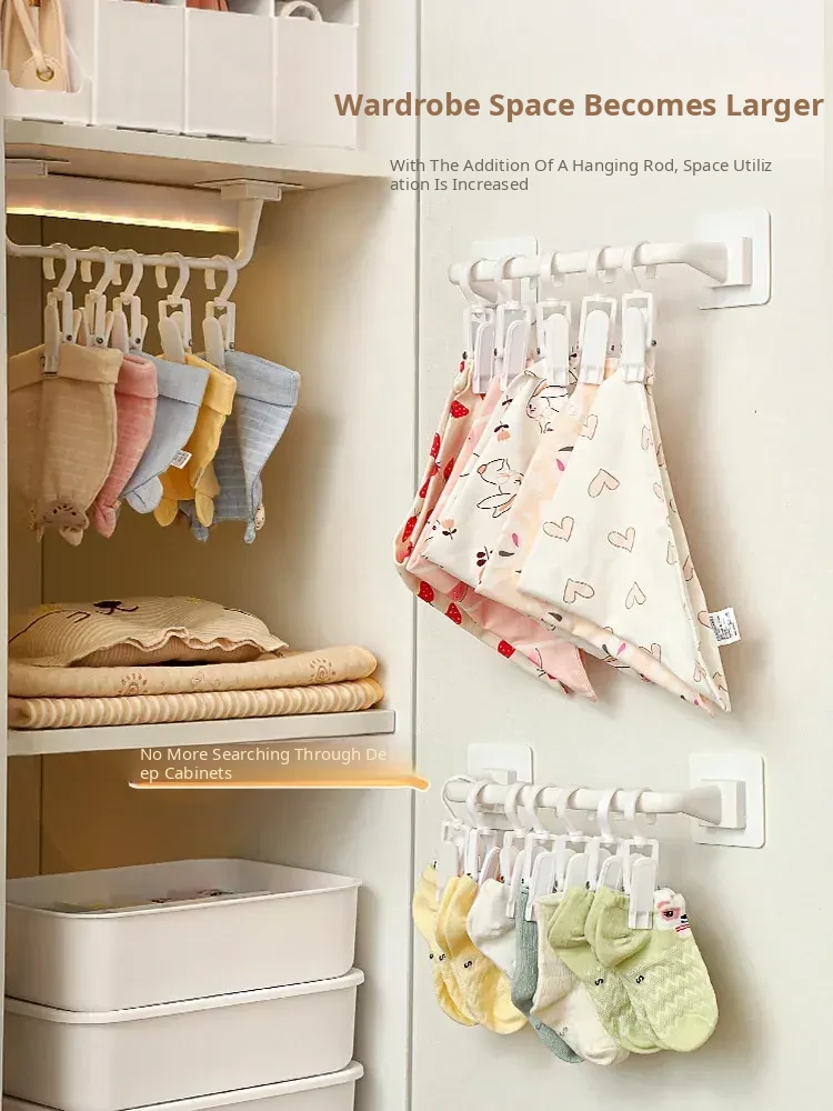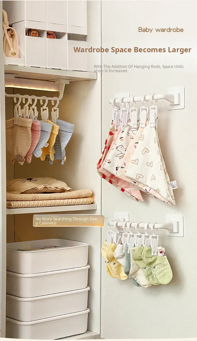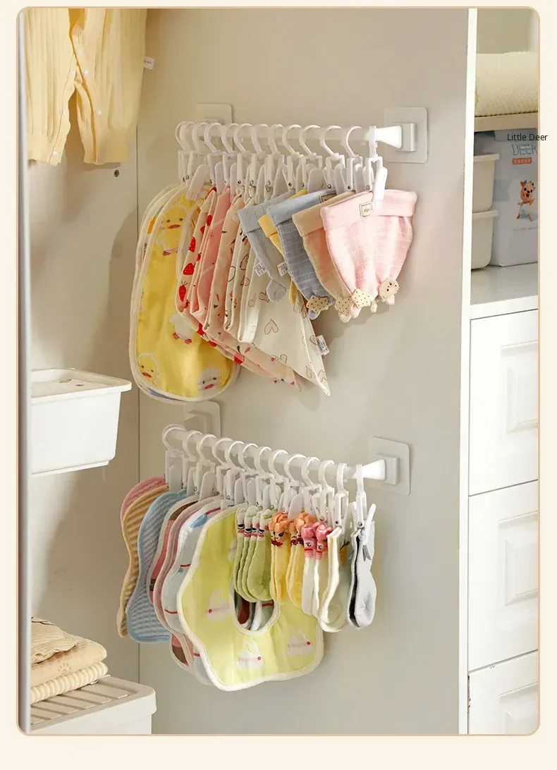 Wall-Mounted Storage Hooks for Kids: Hat and Towel Organizers, Baby Bib Holders, and Sock Clips - No Drilling Required, Easy Adhesive Installation! Perfect for Clutter-Free Spaces!