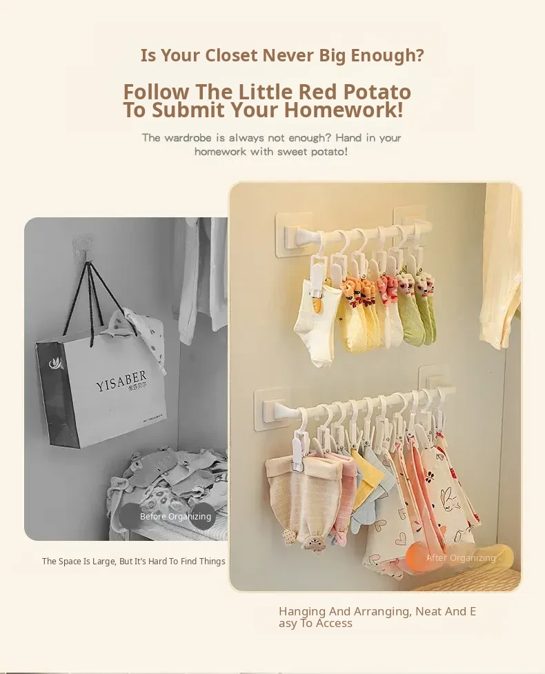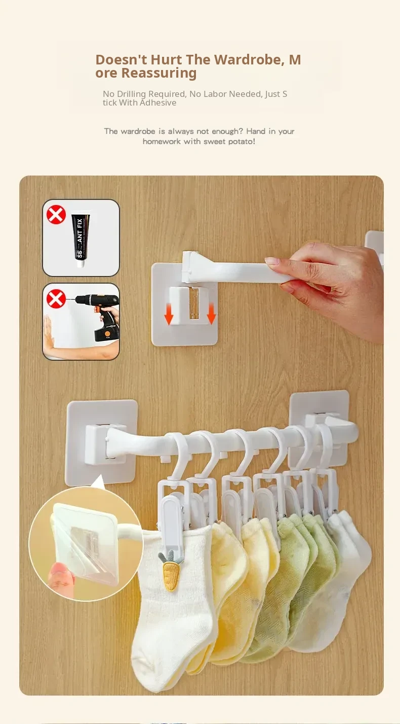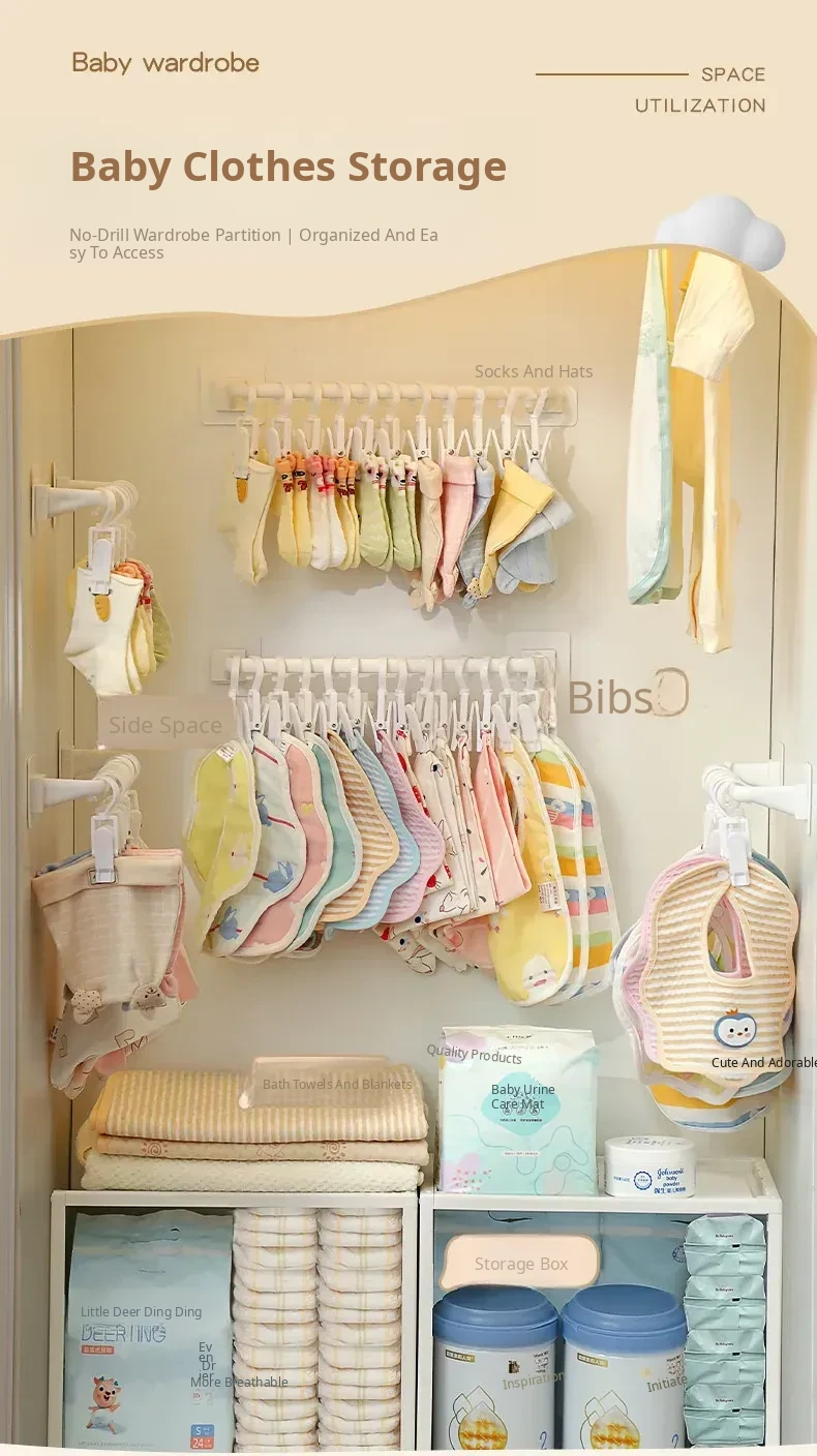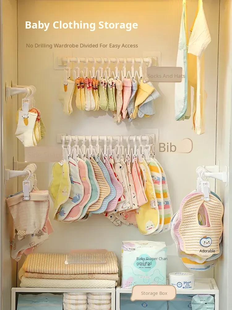Wall-Mounted Storage Hooks for Kids: Hat and Towel Organizers, Baby Bib Holders, and Sock Clips - No Drilling Required, Easy Adhesive Installation! Perfect for Clutter-Free Spaces!