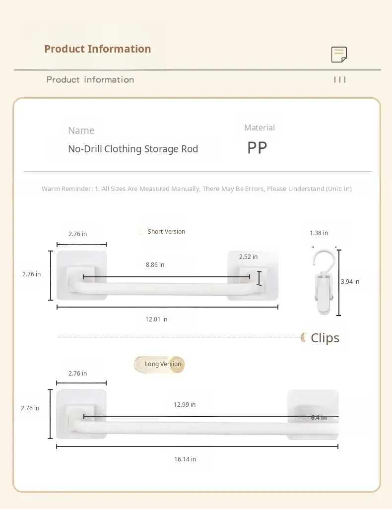 Short Punch-Free Storage Rod + 10 Clips