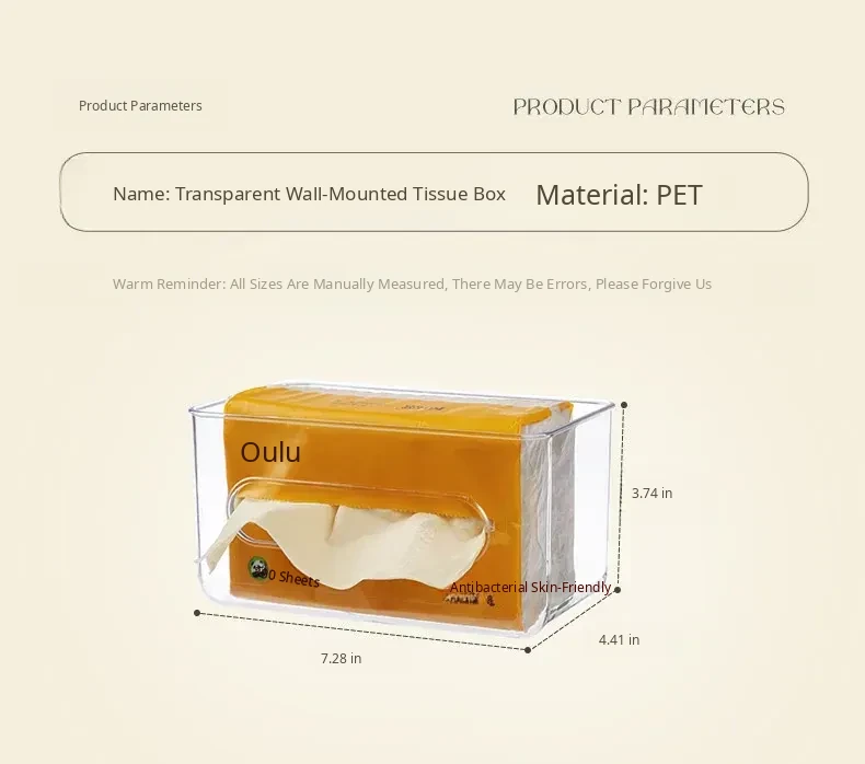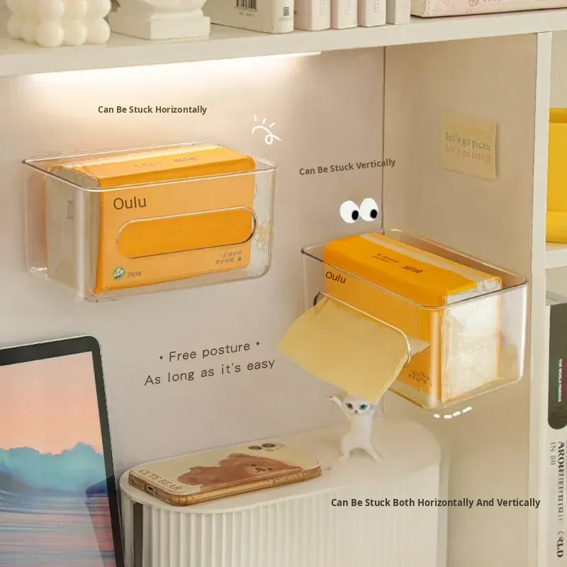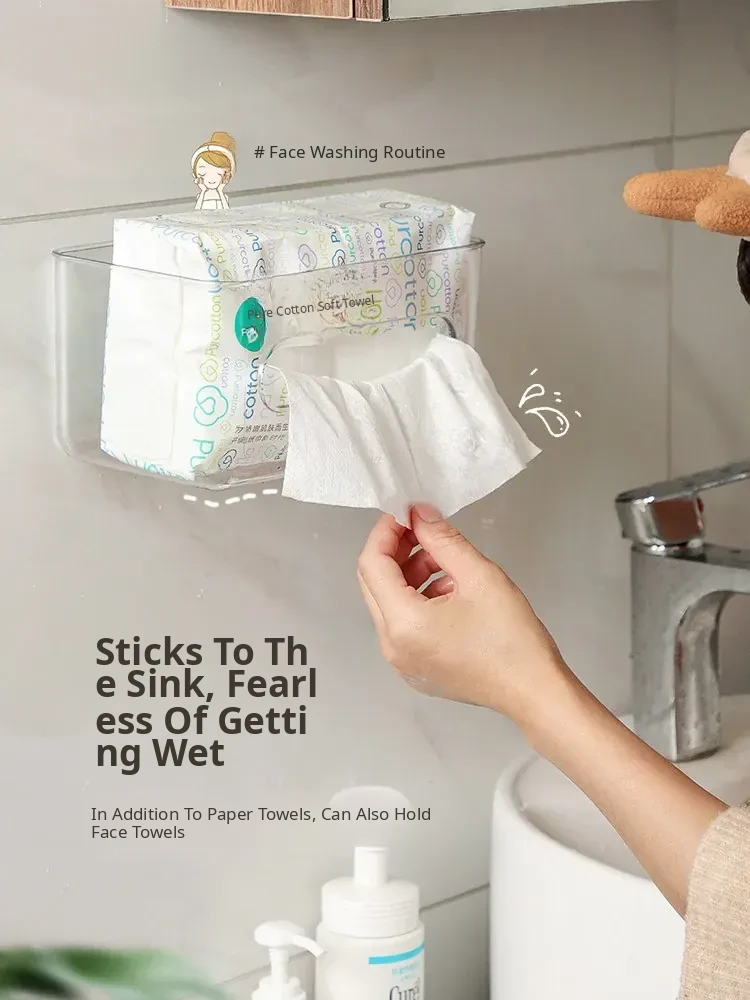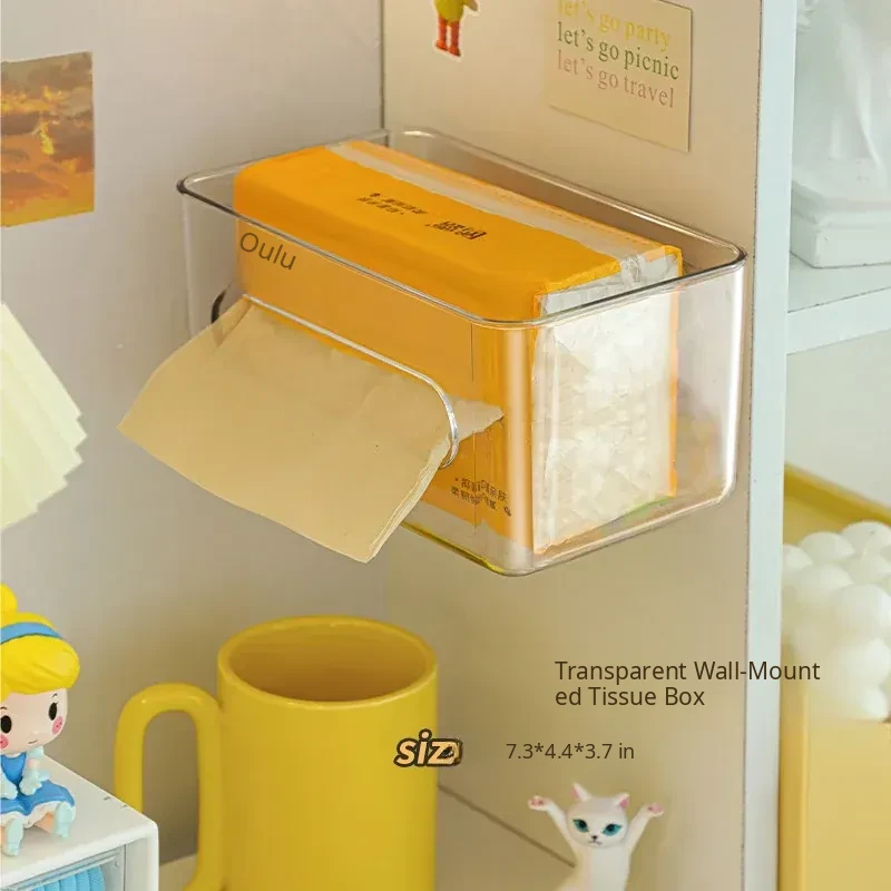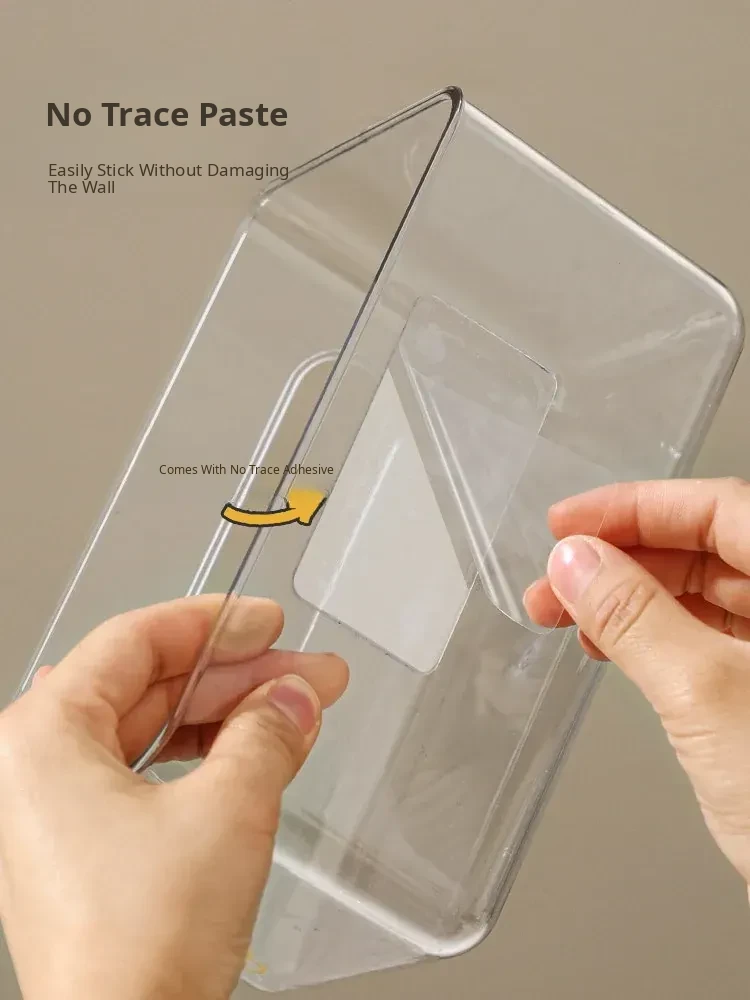 [Single Pack - Free One Adhesive Pad] Wall-Mounted Transparent Tissue Box - Sf1398