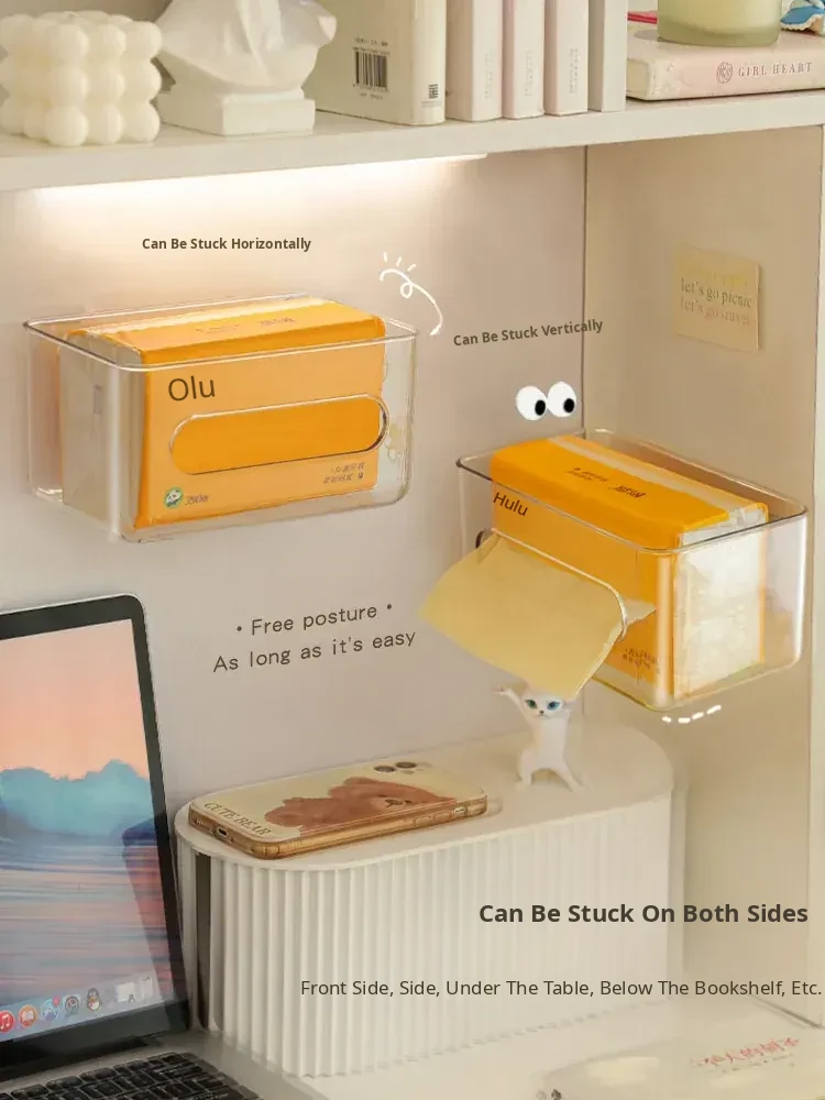 [Pack of Two - Two Pieces of Glue Included] Wall-Mounted Transparent Tissue Box