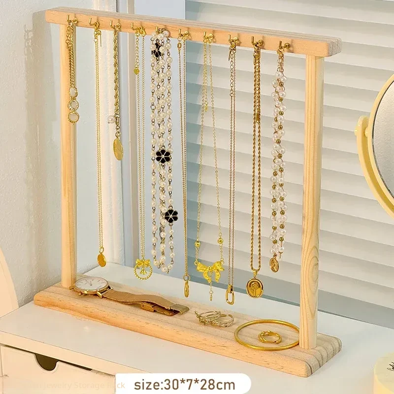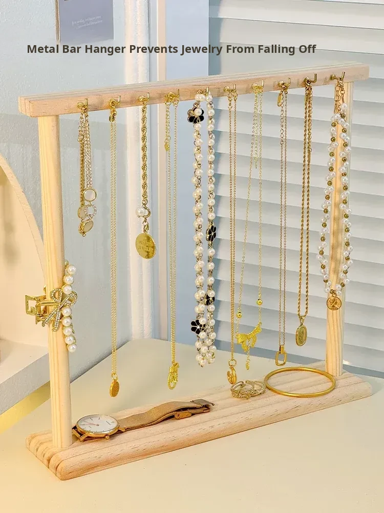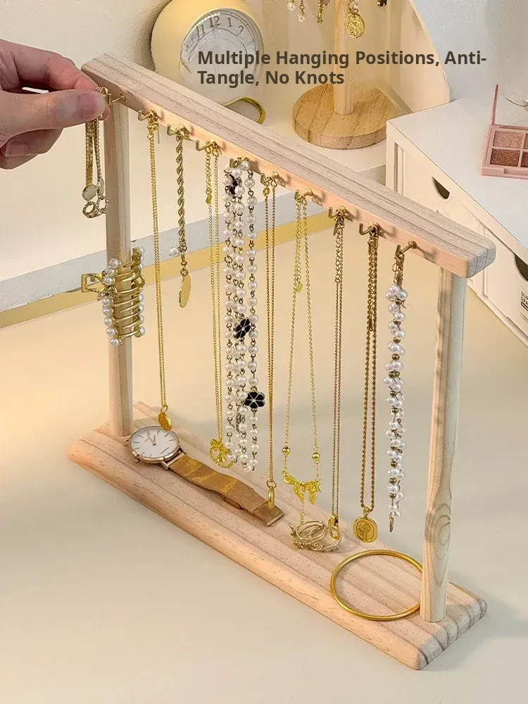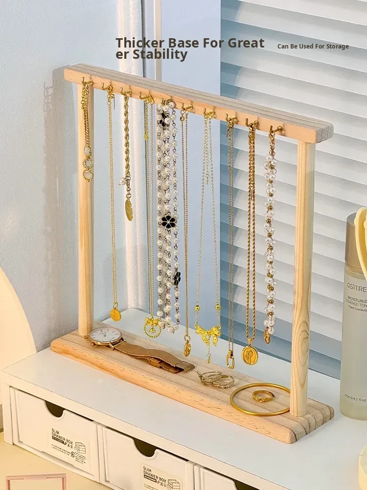 Wooden Jewelry Display Stand for Necklaces, Bracelets, and Earrings - Elegant Tabletop Organizer with Hooks for Stylish Accessories Storage