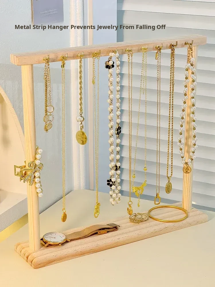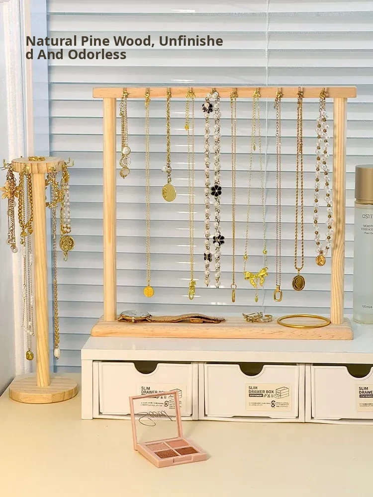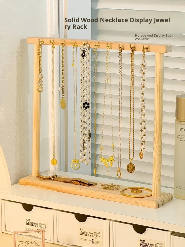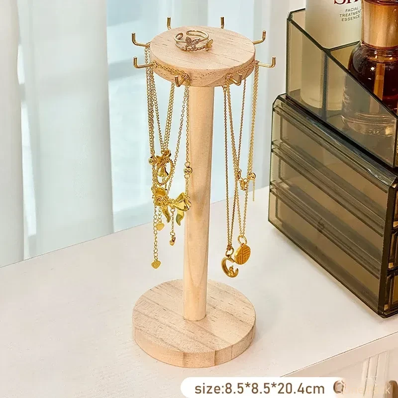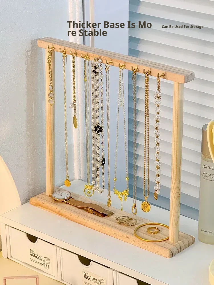 Wooden Jewelry Display Stand for Necklaces, Bracelets, and Earrings - Elegant Tabletop Organizer with Hooks for Stylish Accessories Storage