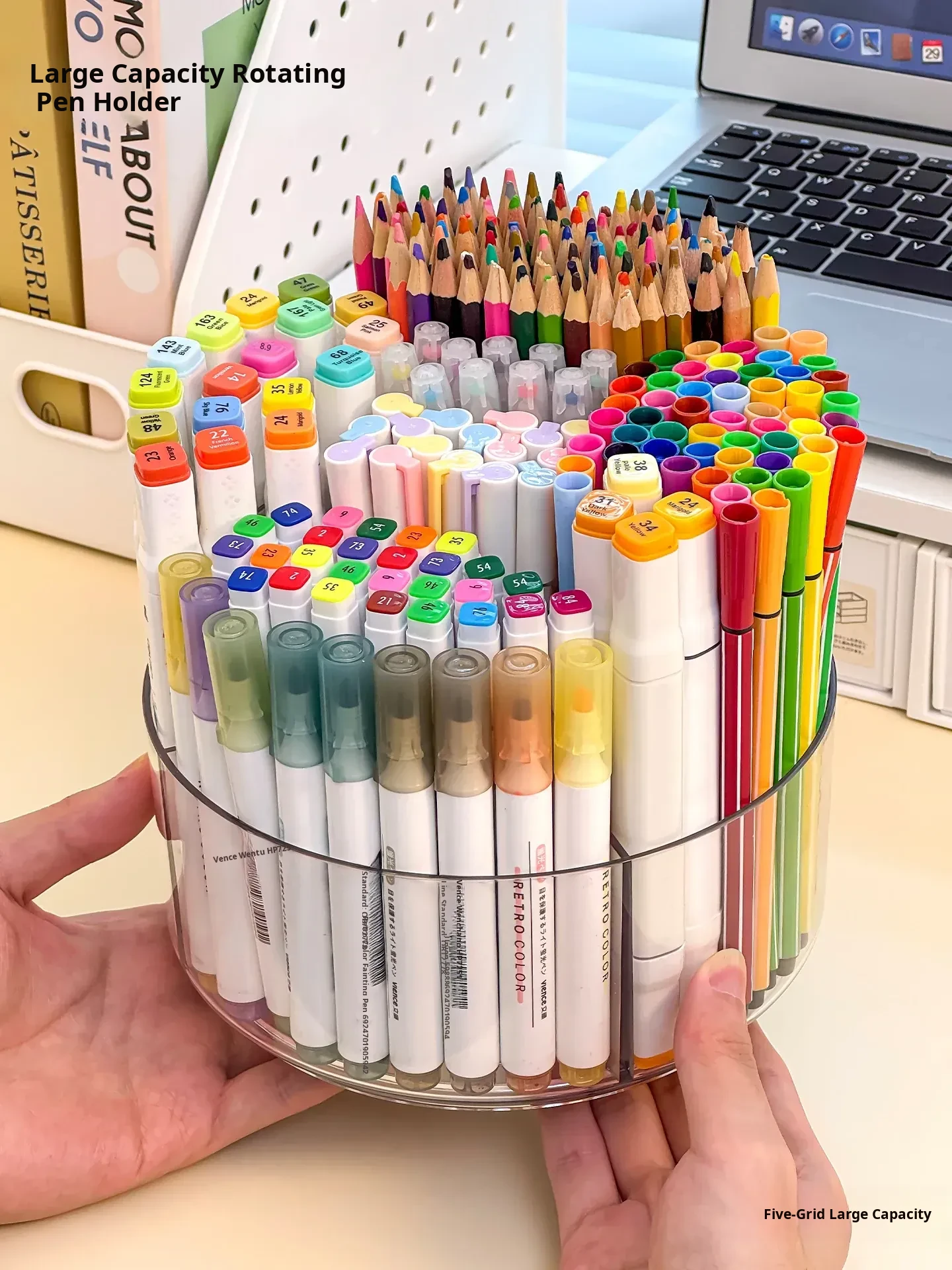 Rotating Desktop Pen Holder for Kids - Large Capacity Art Supplies Organizer for Markers, Watercolors, and Drawing Tools - The Ultimate Solution for Creative Students!