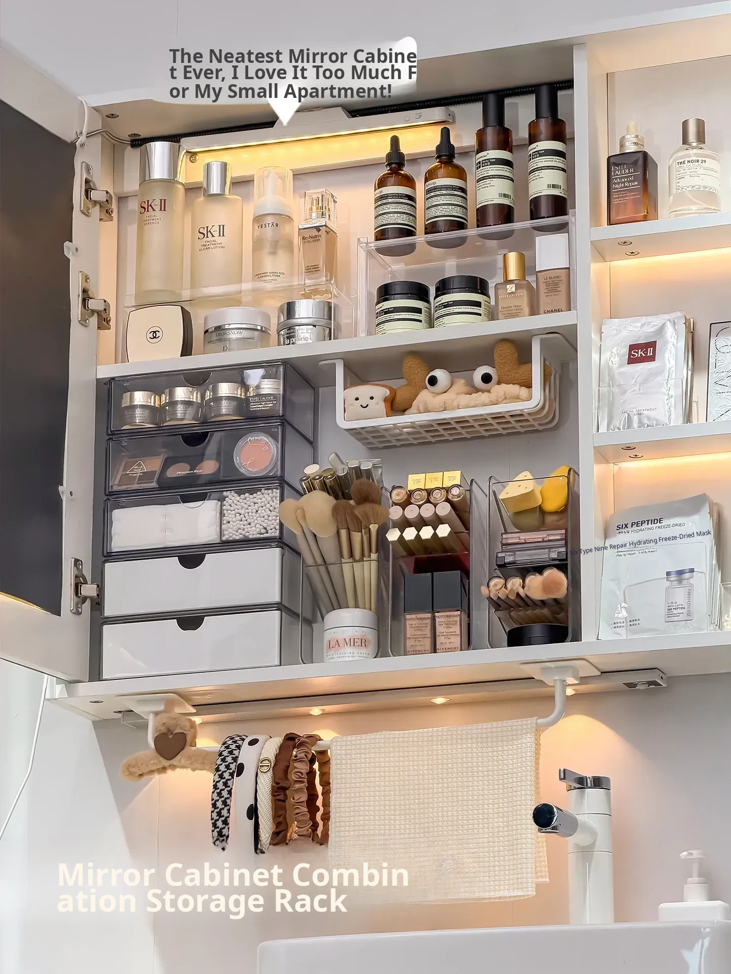 Bathroom Makeup Organizer - Tiered Drawer Storage Box for Cosmetics and Lipsticks, Versatile Mirror Cabinet Organizer with Dividers, Perfect for Neat and Stylish Bathroom Decor.