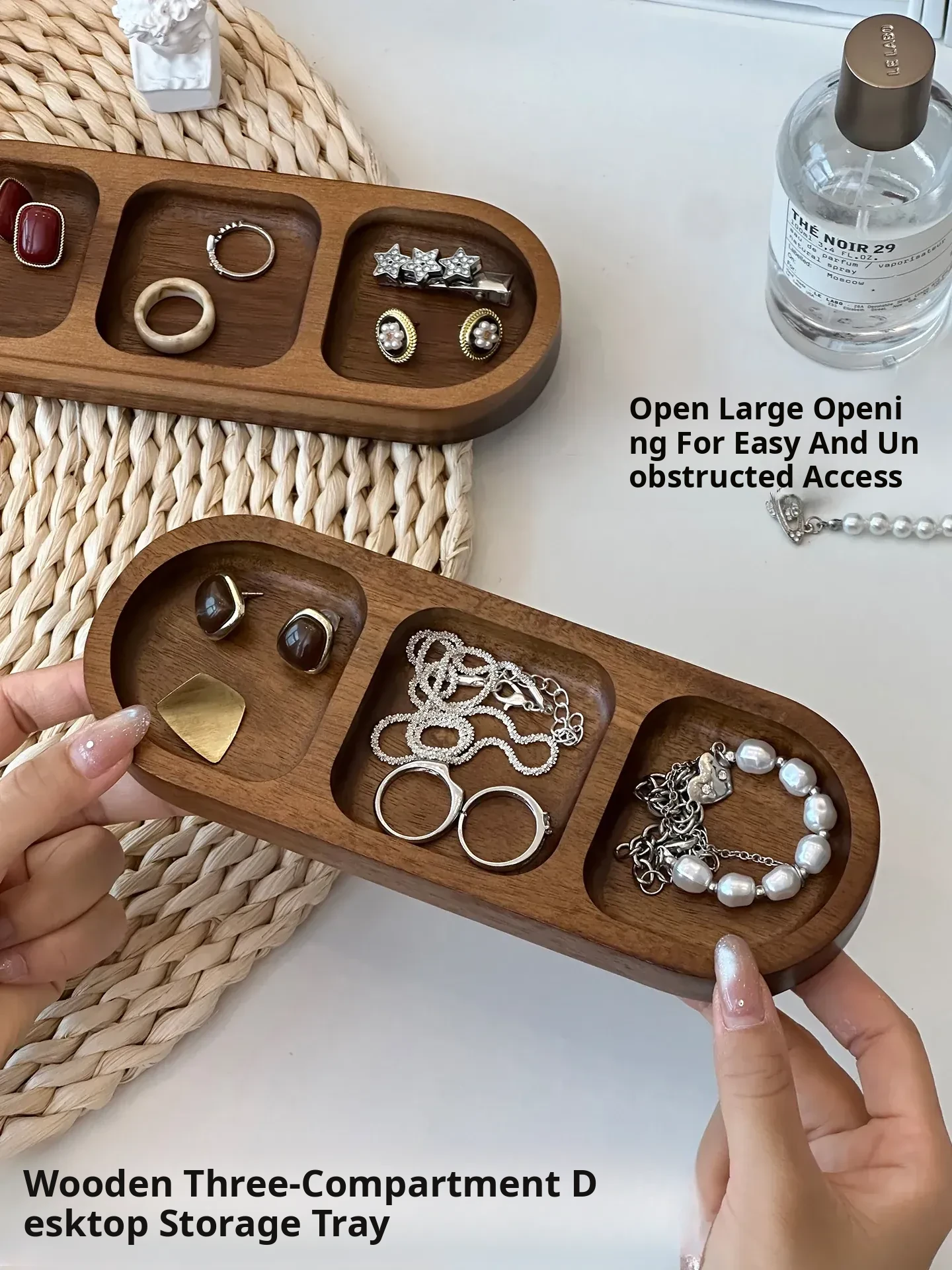 Wooden Jewelry Organizer Tray - Stylish Desktop Ring and Accessory Divided Holder for Entryway, Key Storage, and Perfume Display - Perfect for Home Décor and Gift Giving