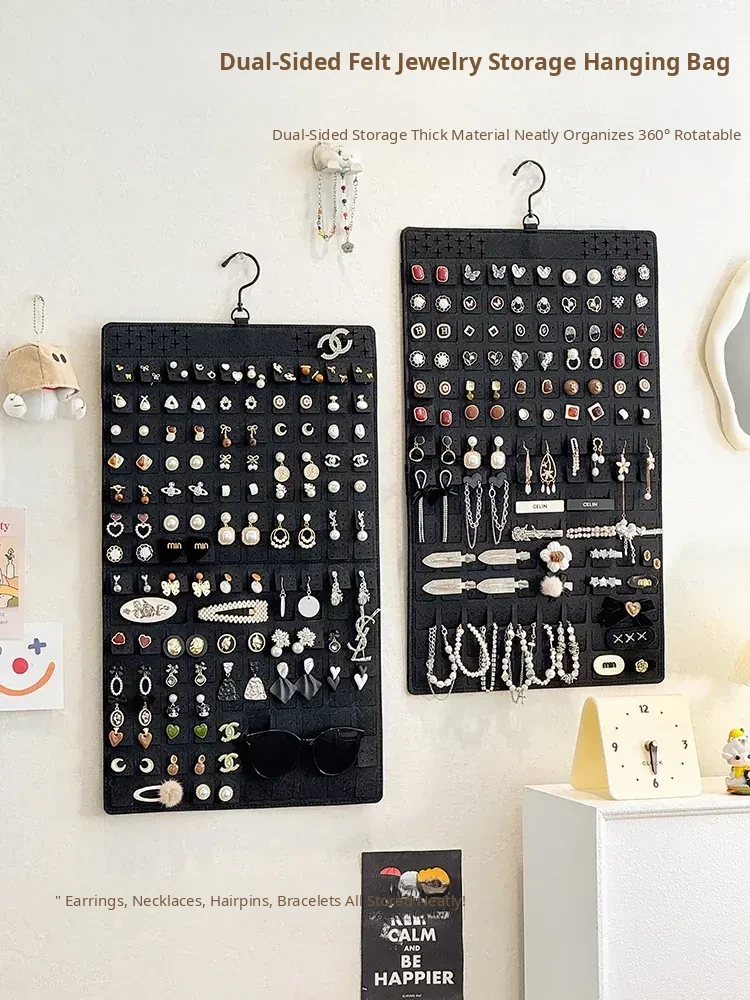 Wall-Mounted Jewelry Organizer: Removable Felt Display Bag for Earrings, Necklaces, and Kids' Hair Accessories - Perfect for Showcasing Your Collection!