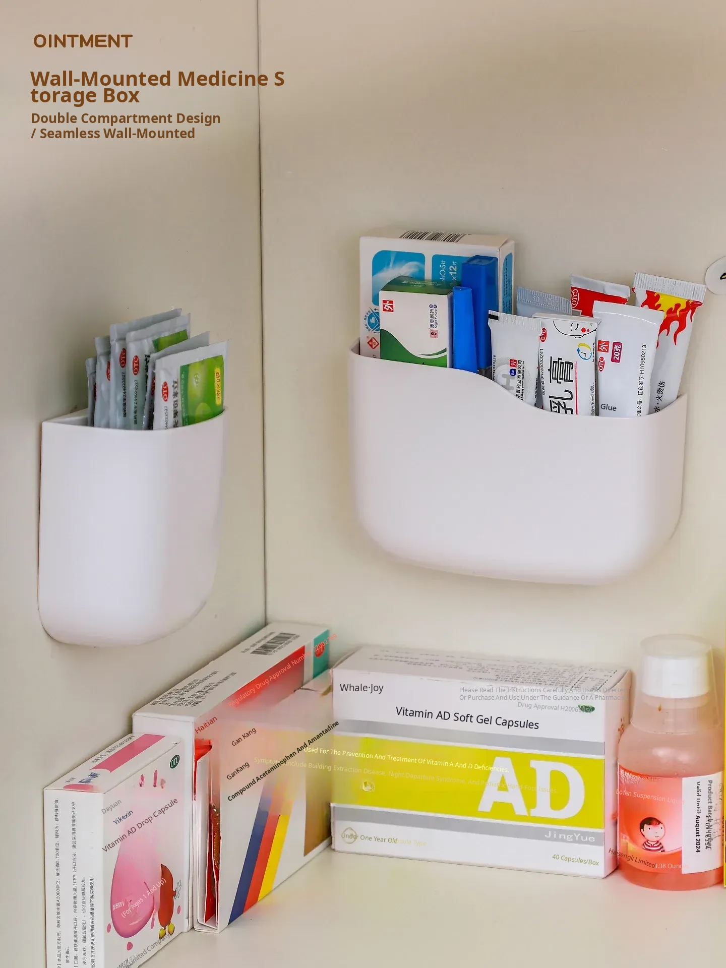 Wall-Mounted Medicine Storage Box - Segmented Organizer for Common First Aid Supplies, No Drilling Required, Perfect Home Solution for Neat and Easy Access