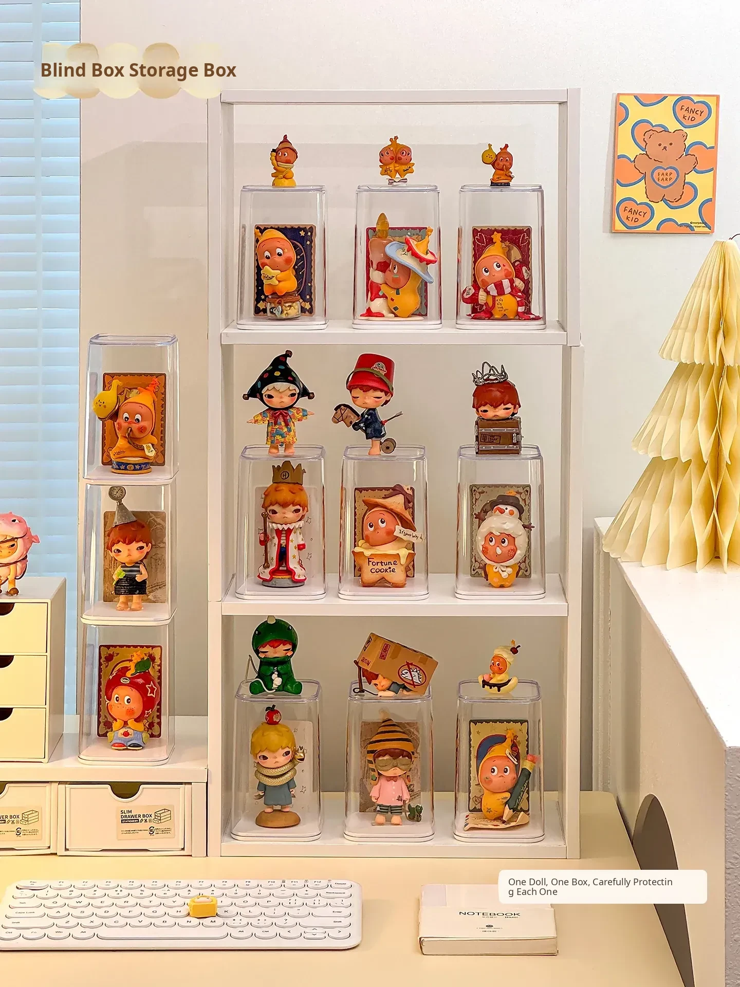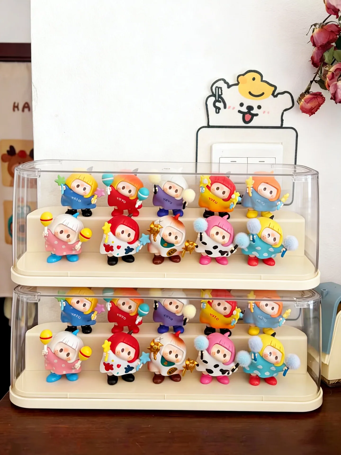 Yoyo Sauce Blind Box Display Rack - Dust-Proof Storage Stand for Collectible Figures & Cute Toys - Transparent Tiered Showcase Cabinet for Organizing Your Collection