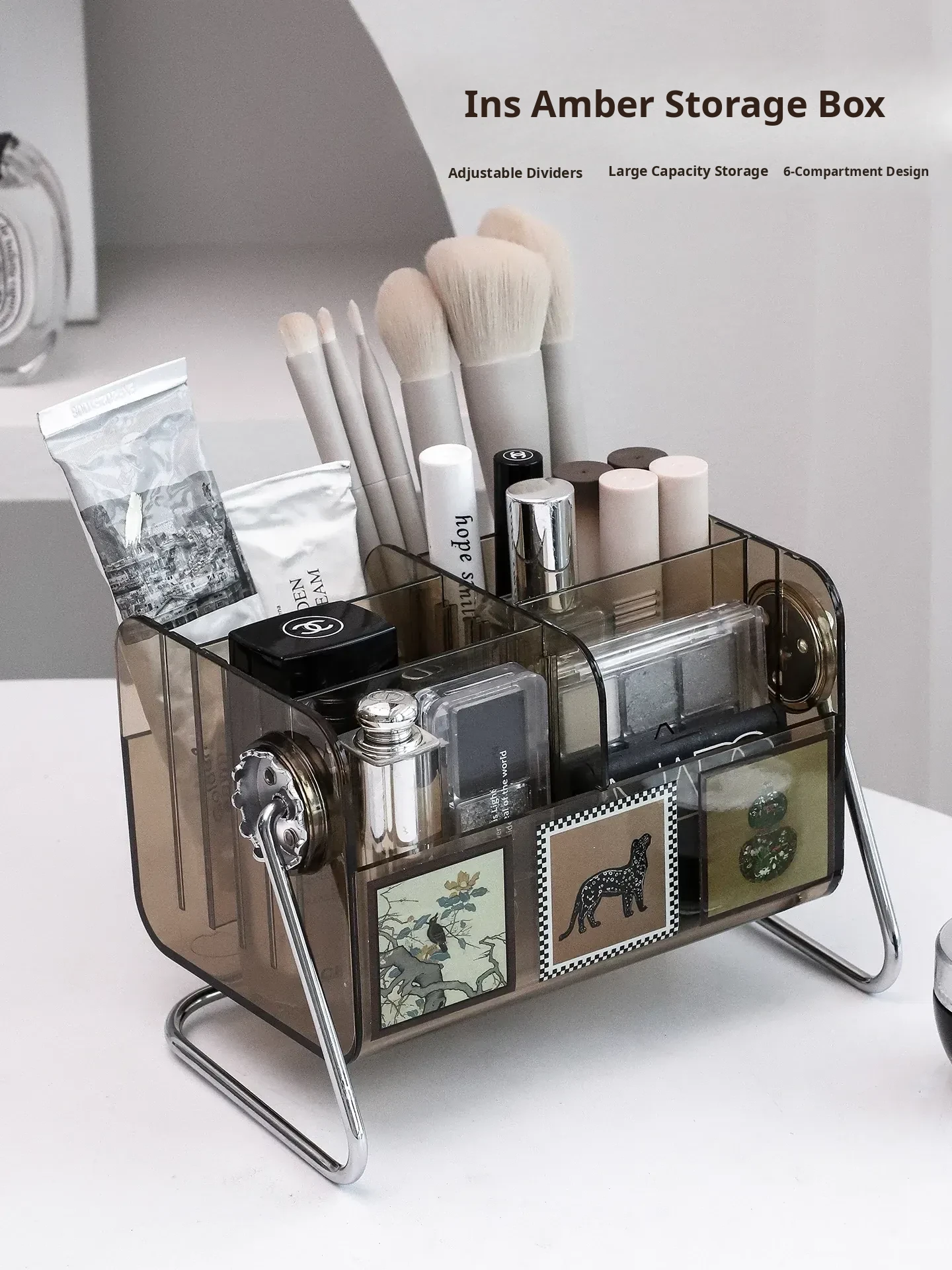 Elegant Makeup Organizer Box - Multi-functional Vanity Storage for Skincare and Cosmetics, Stylish Brush Holder and Lipstick Storage Solution for Your Desktop.