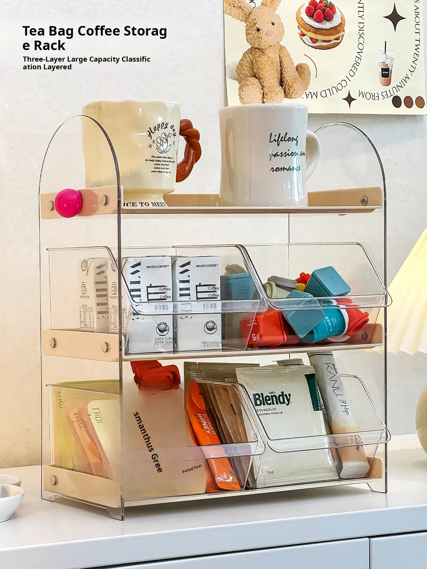 Acrylic Coffee and Tea Bag Organizer Box - Stylish Desktop Storage for Cups and Accessories, Transparent Tabletop Organizer for Tidy Living Spaces and Offices