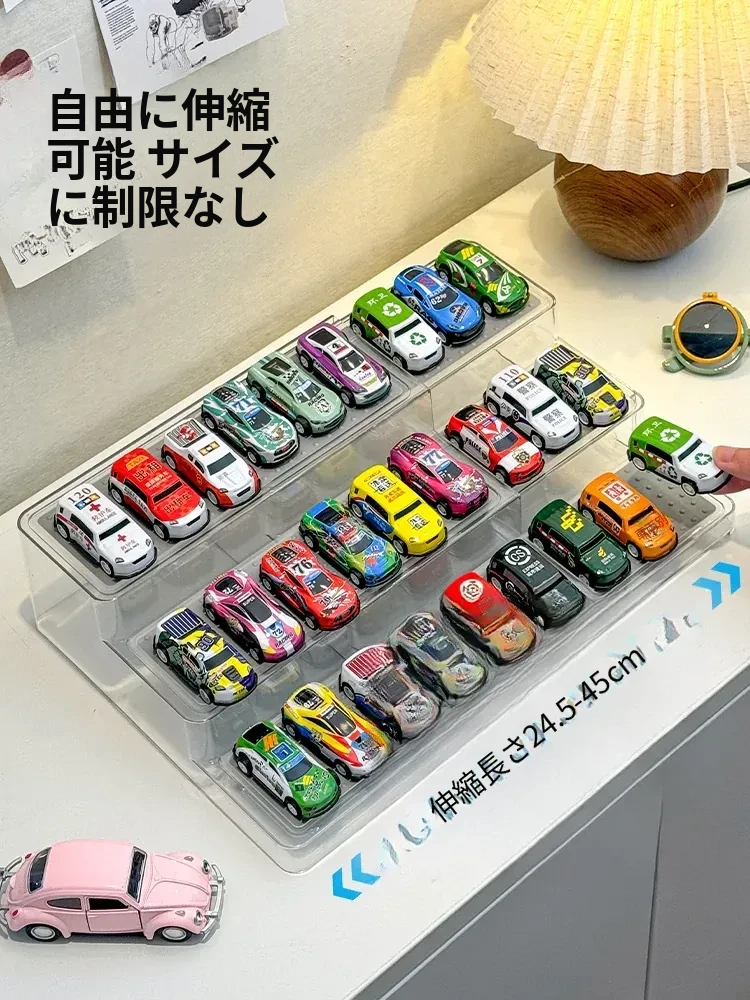 伸縮式ミニカーディスプレイスタンド1:64サイズ、ホットウィール合金モデルカー収納ボックス!子供向けのおもちゃ車整理に最適!お部屋をスッキリさせるおしゃれな収納アイテム!