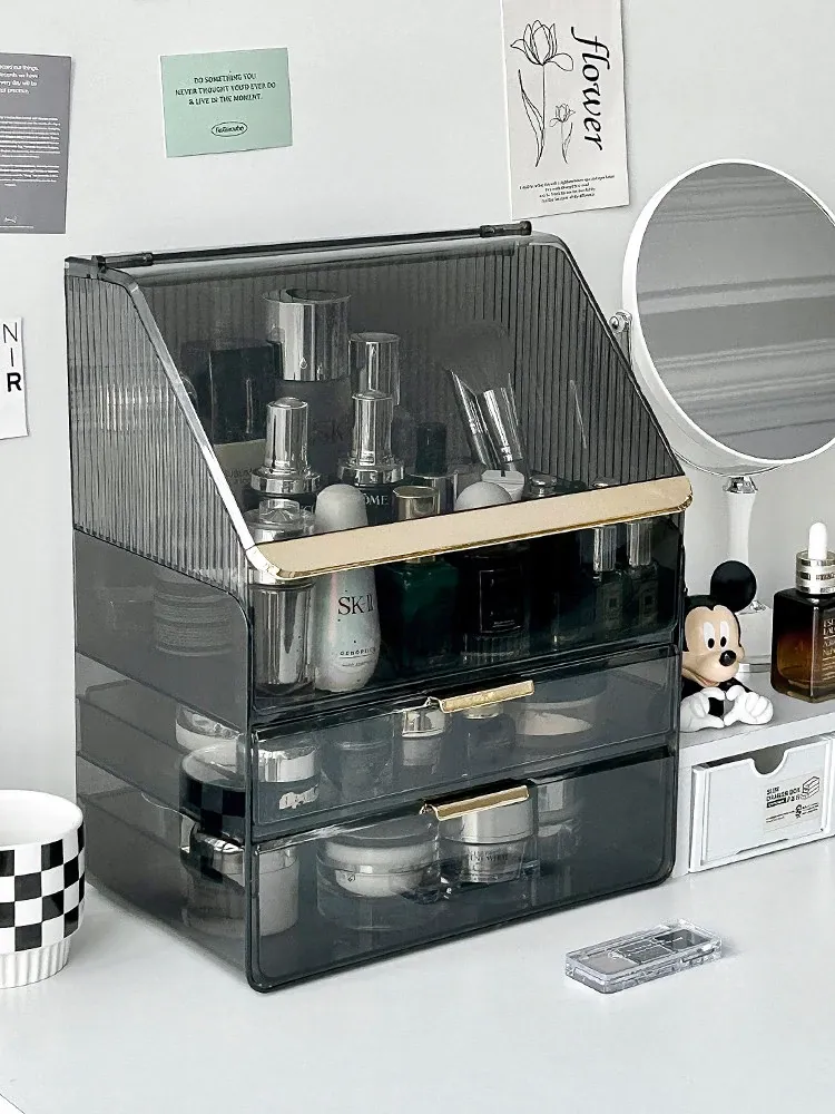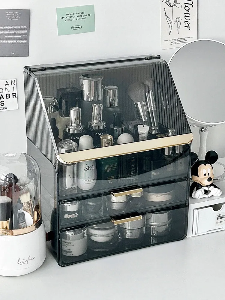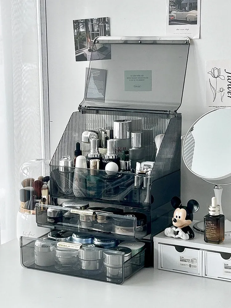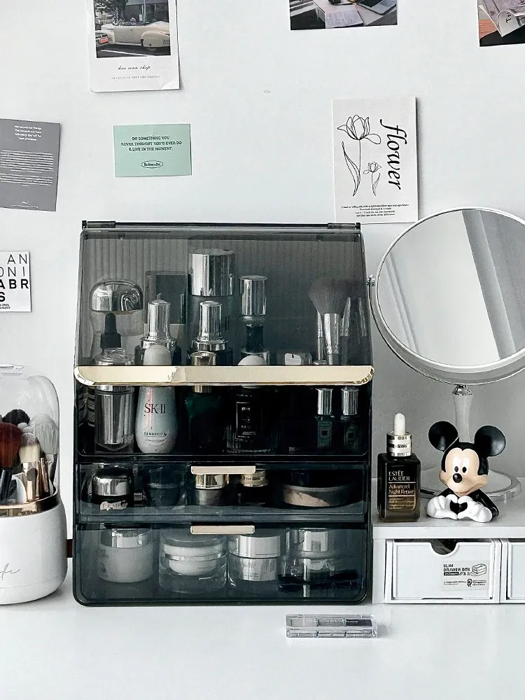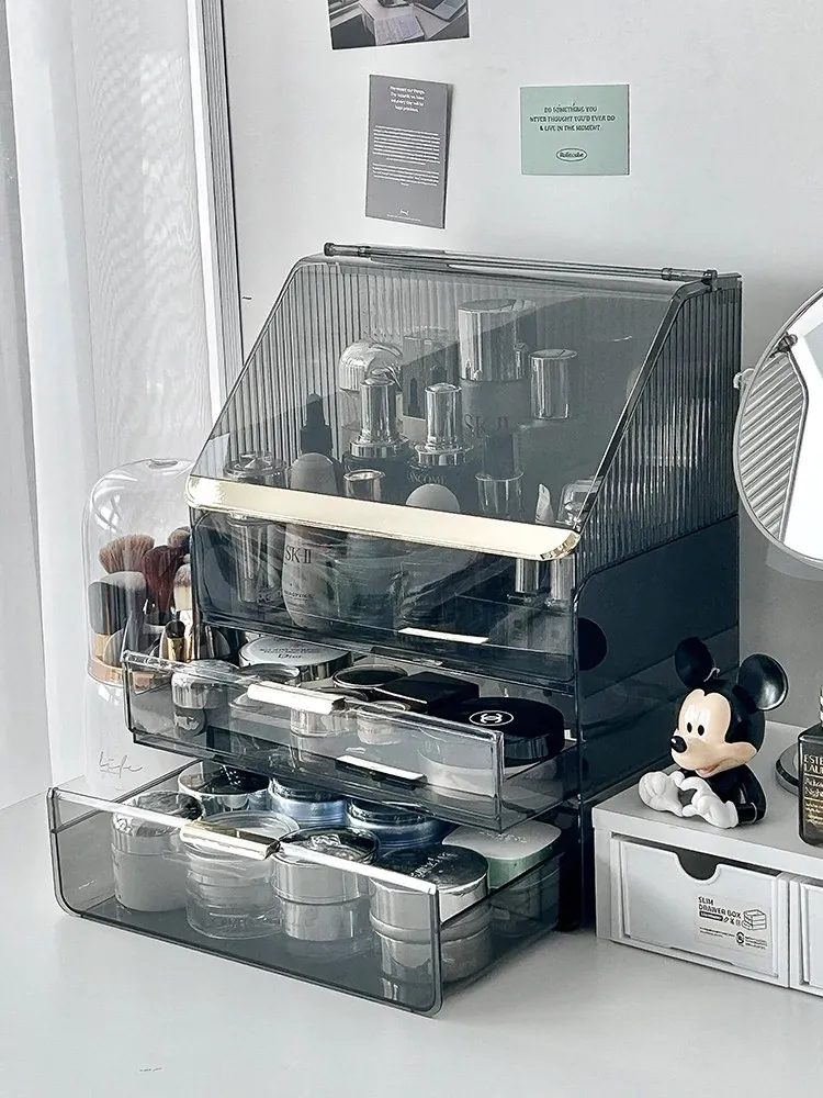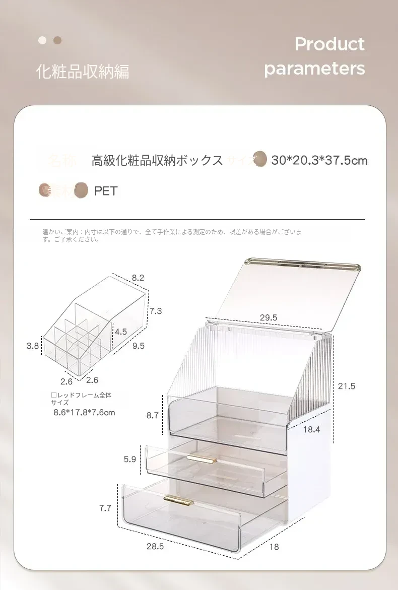2025年新作!高級感溢れる化粧ボックス - 大容量で防塵設計のメイク収納ケース!口紅やフェイスマスクもすっきり整理できる、あなたのビューティーアイテムを美しく守る必需品!