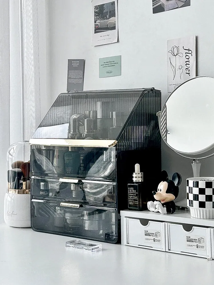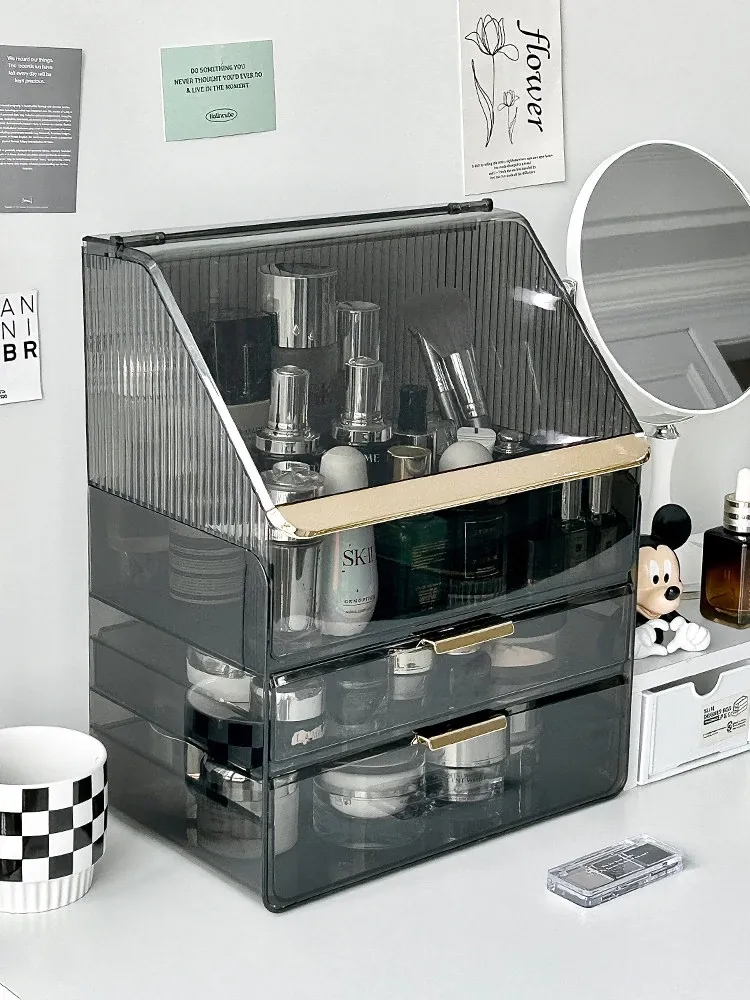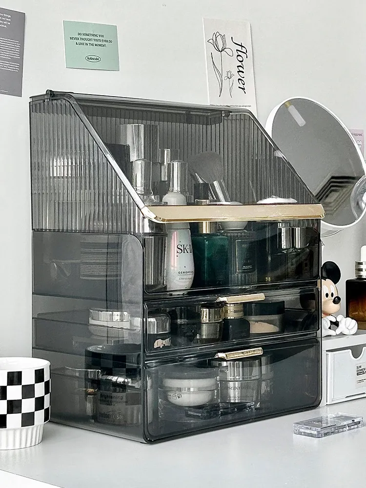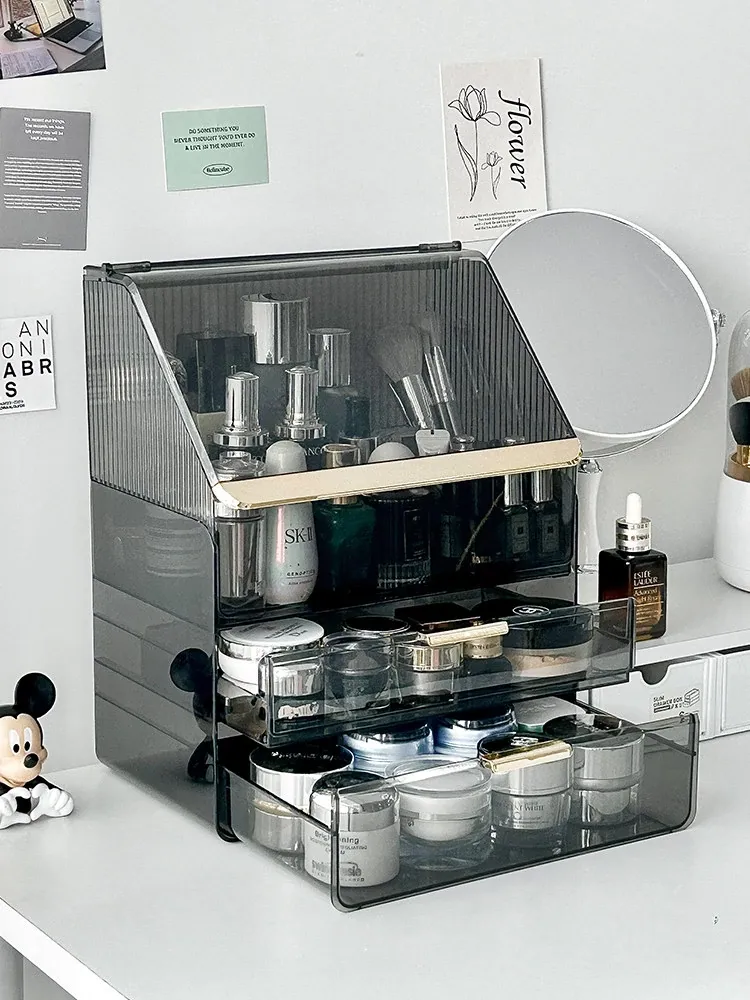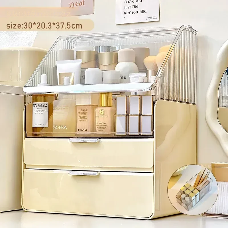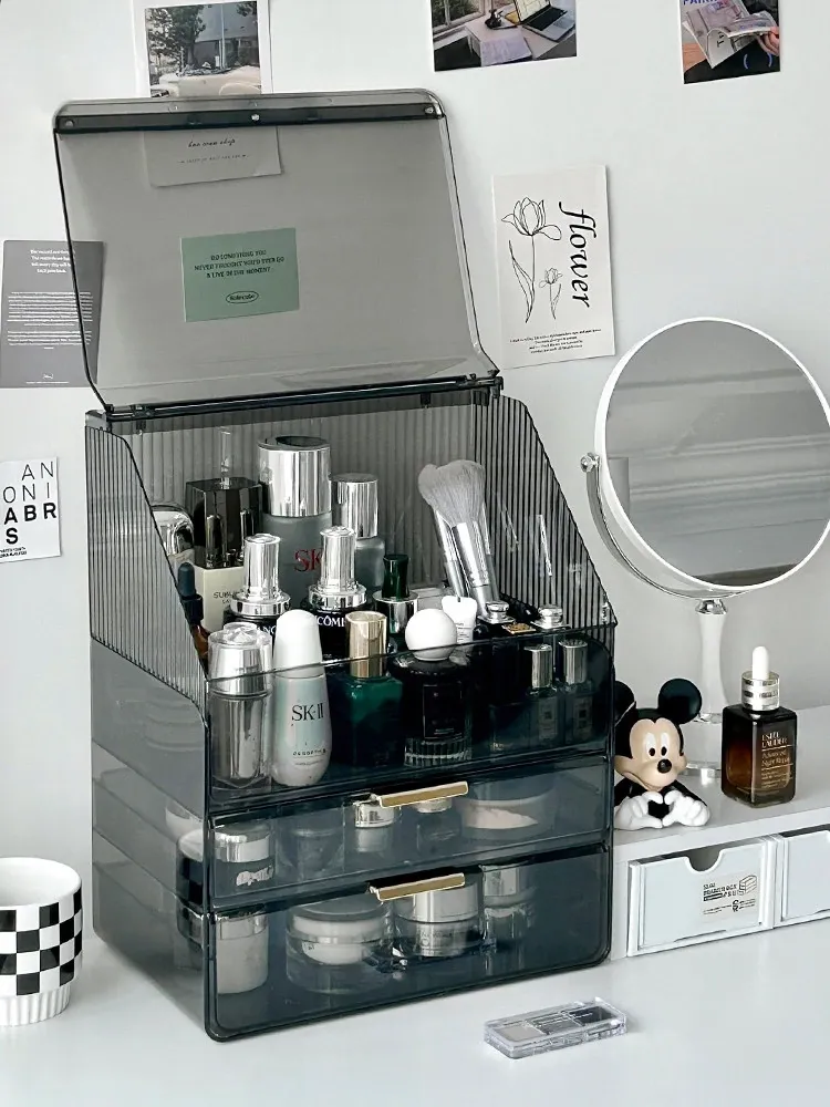 2025年新作!高級感溢れる化粧ボックス - 大容量で防塵設計のメイク収納ケース!口紅やフェイスマスクもすっきり整理できる、あなたのビューティーアイテムを美しく守る必需品!