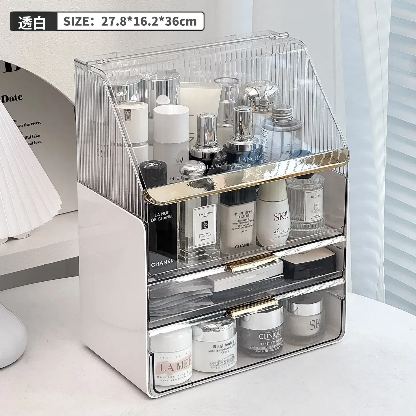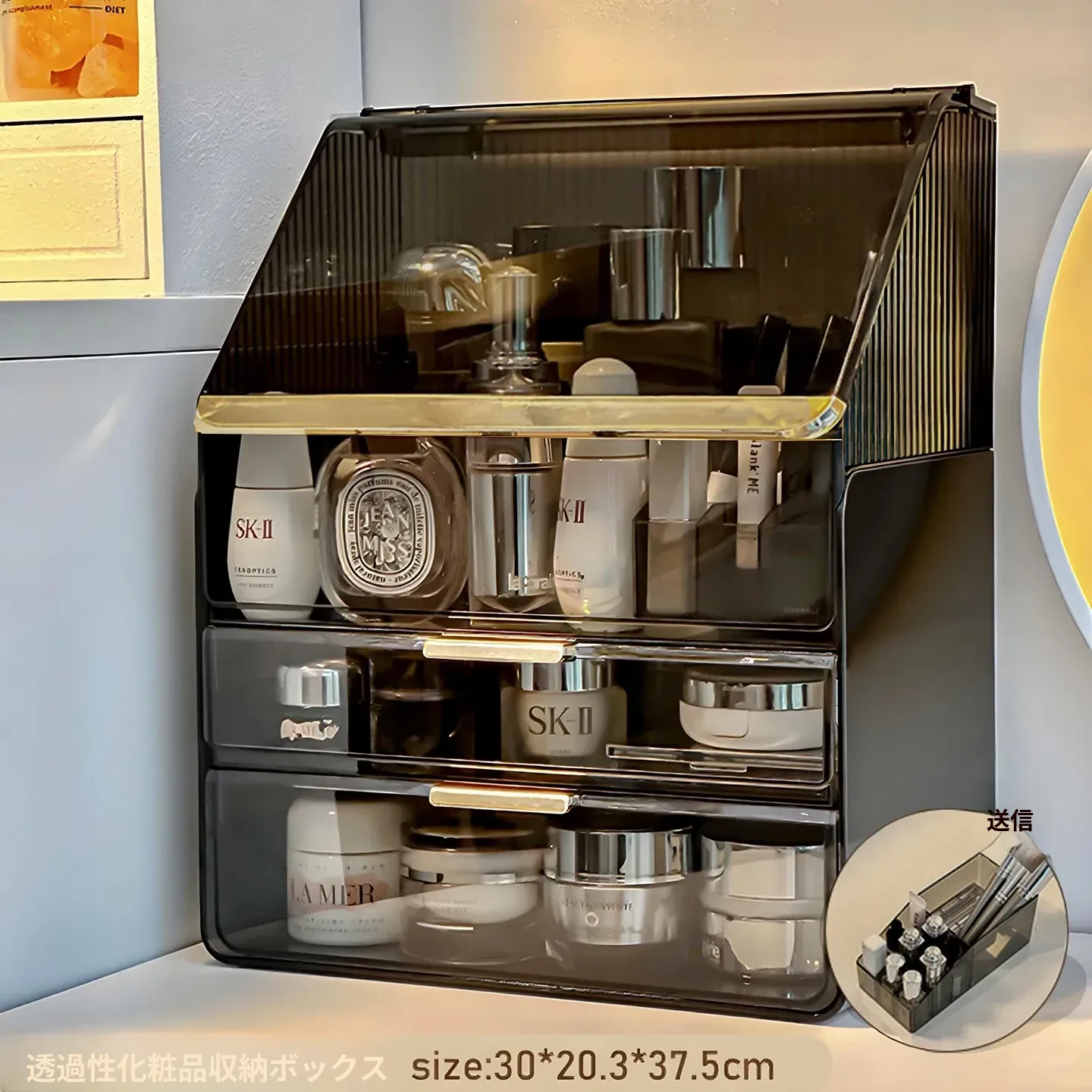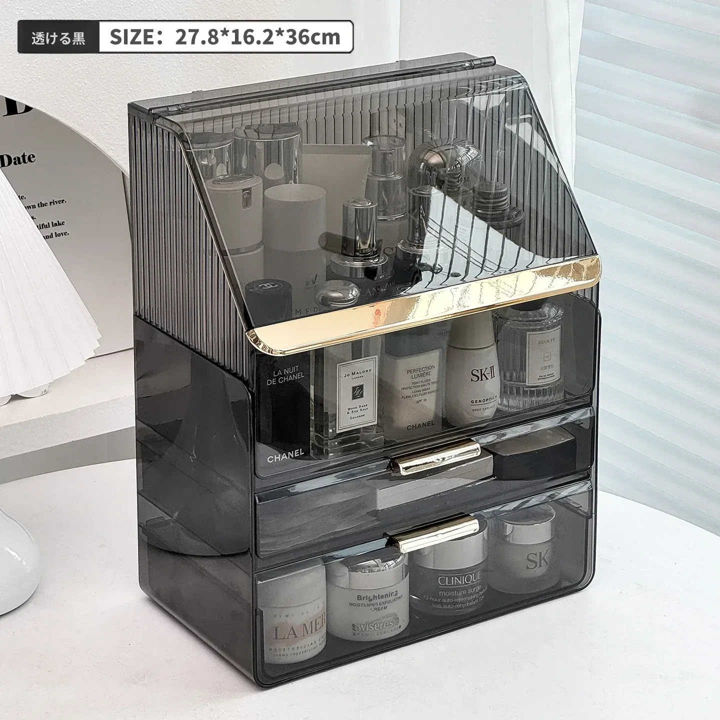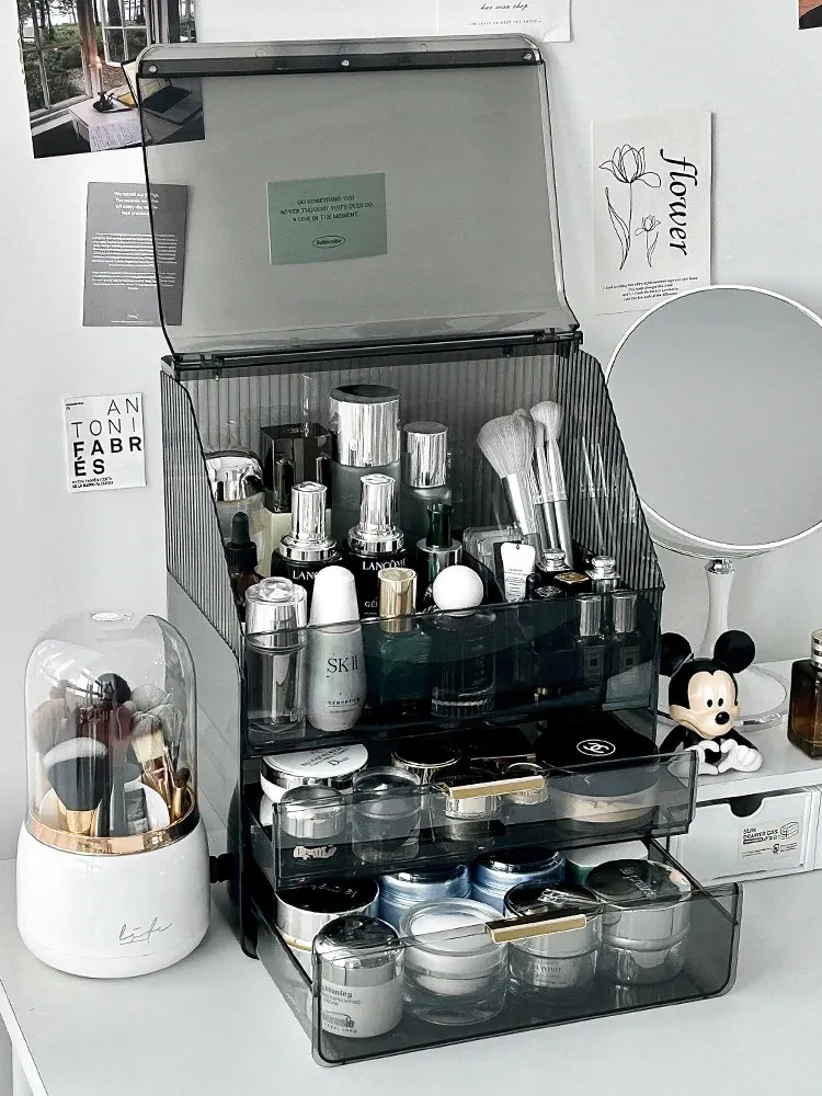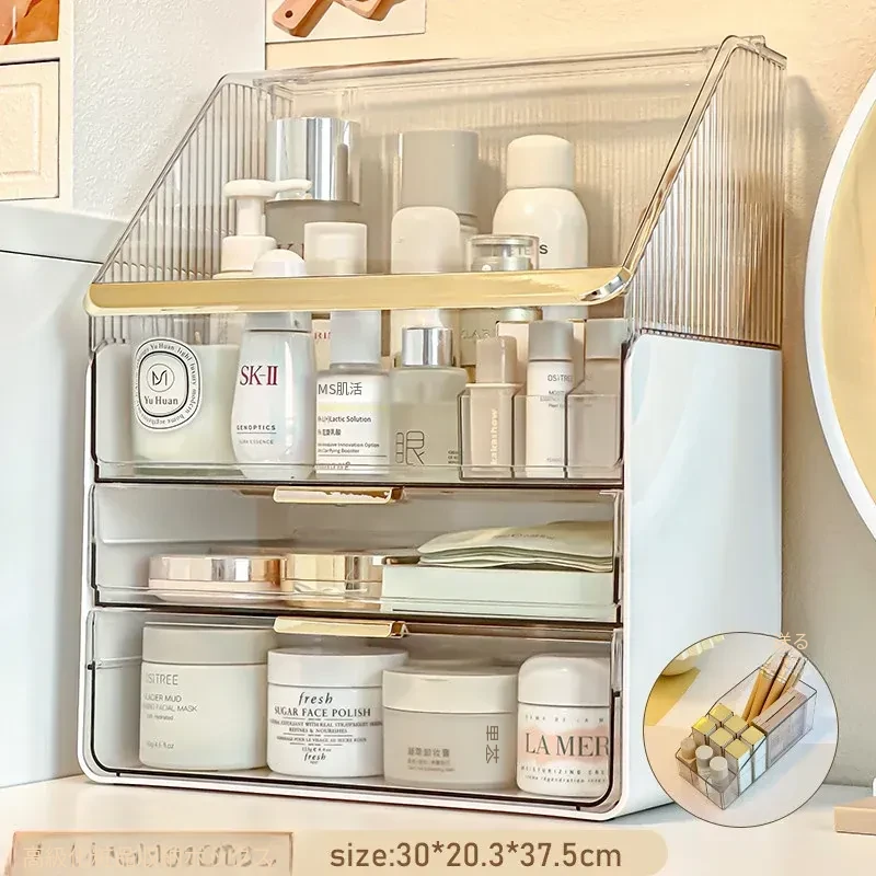 2025年新作!高級感溢れる化粧ボックス - 大容量で防塵設計のメイク収納ケース!口紅やフェイスマスクもすっきり整理できる、あなたのビューティーアイテムを美しく守る必需品!