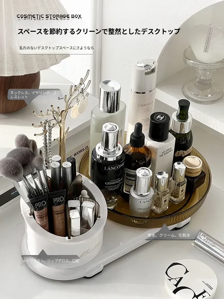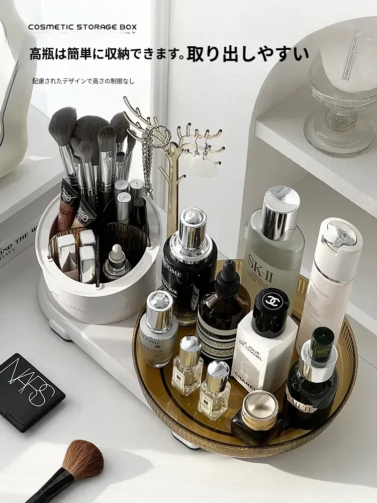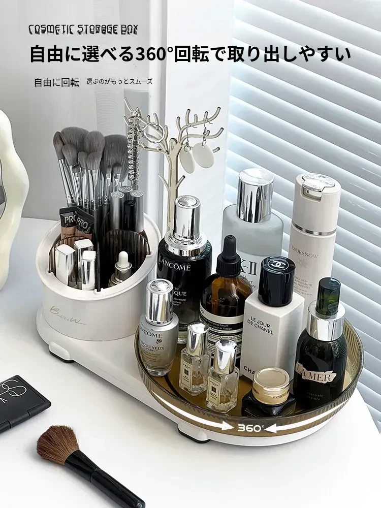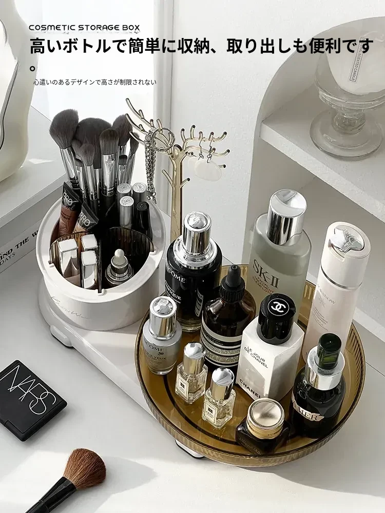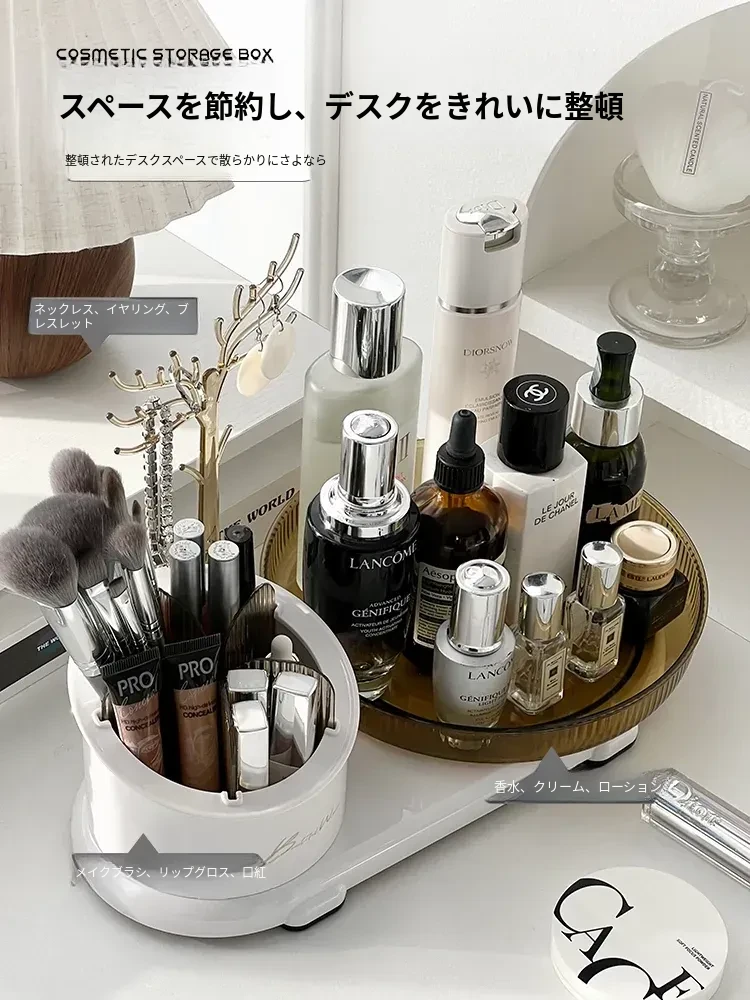 360度回転メイク収納ボックス|デスクトップブラシスタンド|化粧台・スキンケア・香水のトレイ|ジュエリーディスプレイラックでおしゃれに整理整頓!